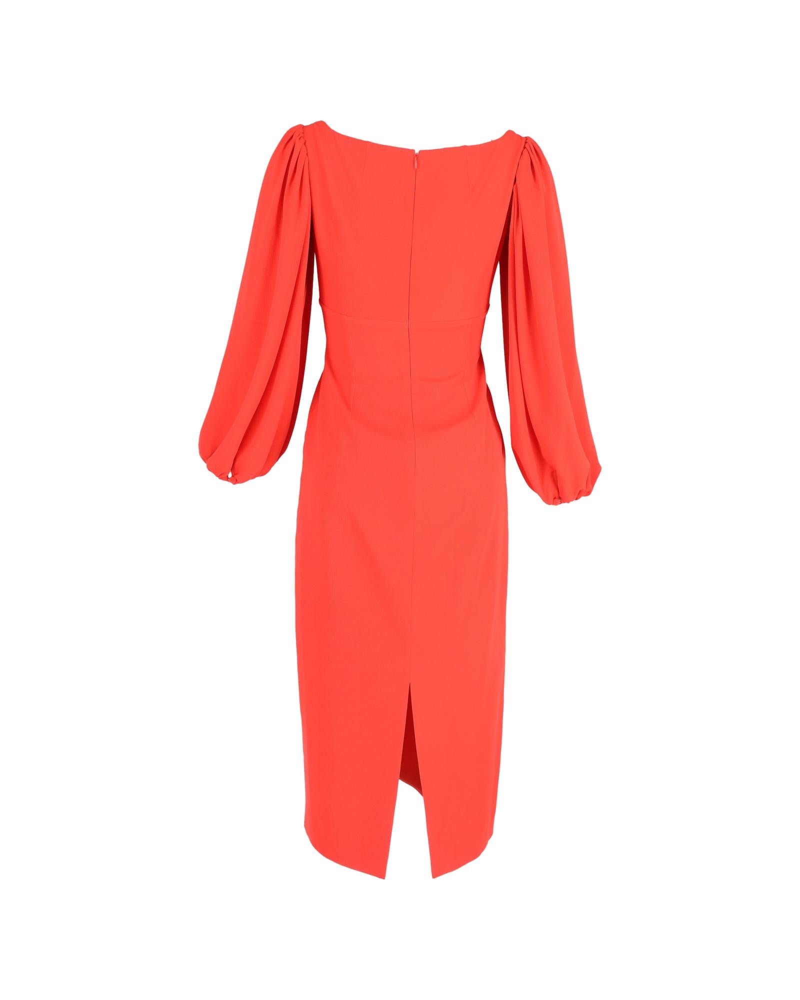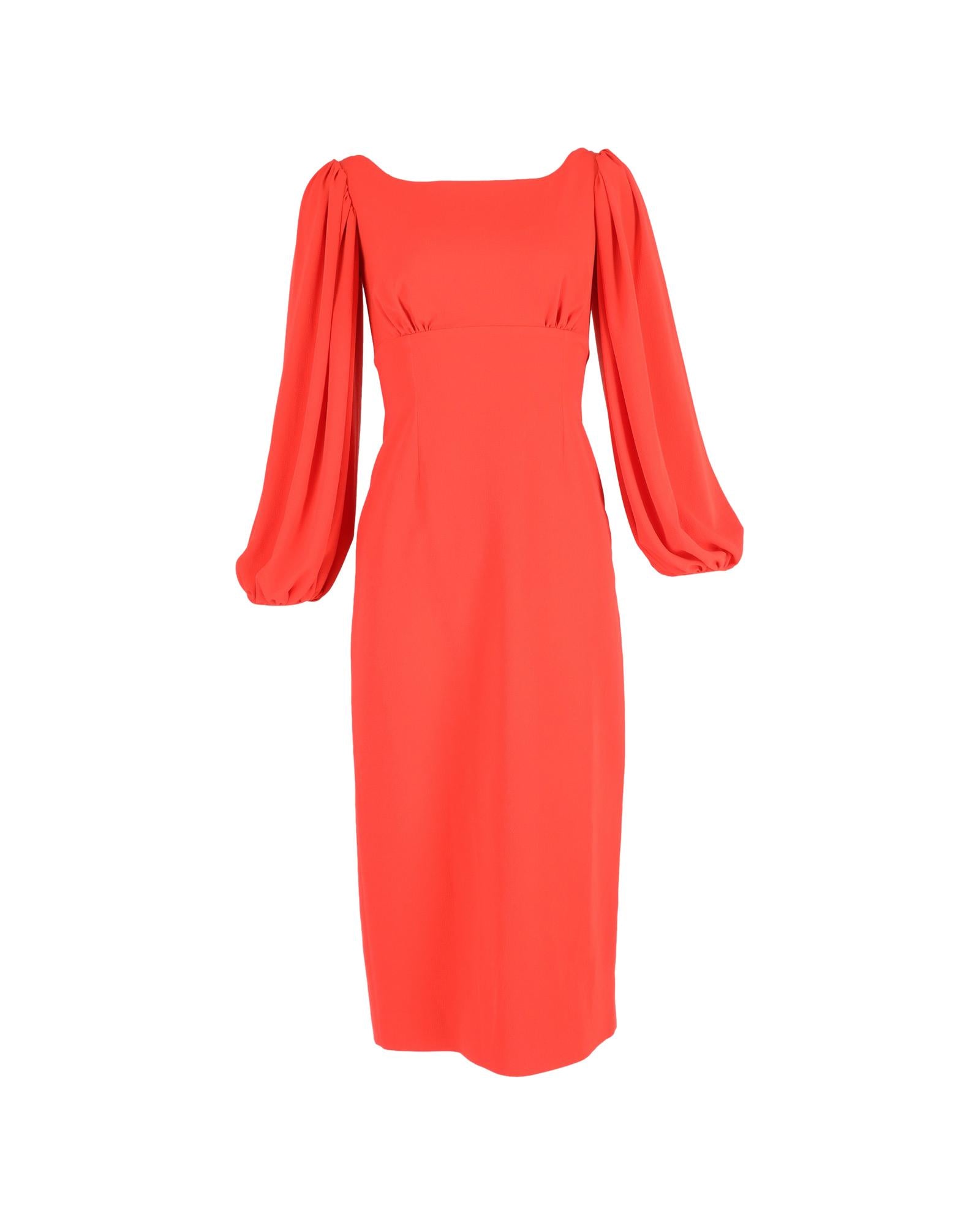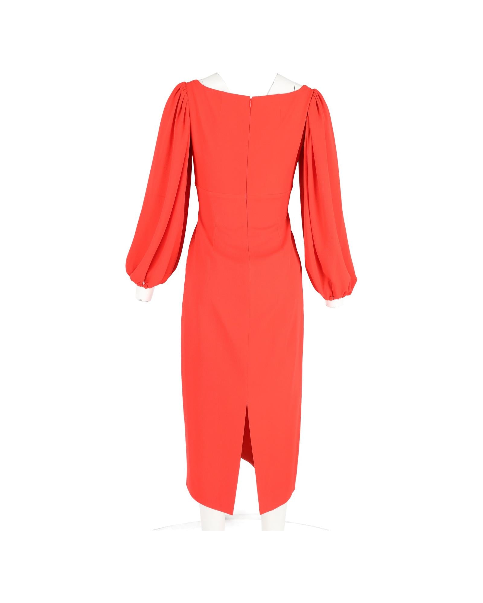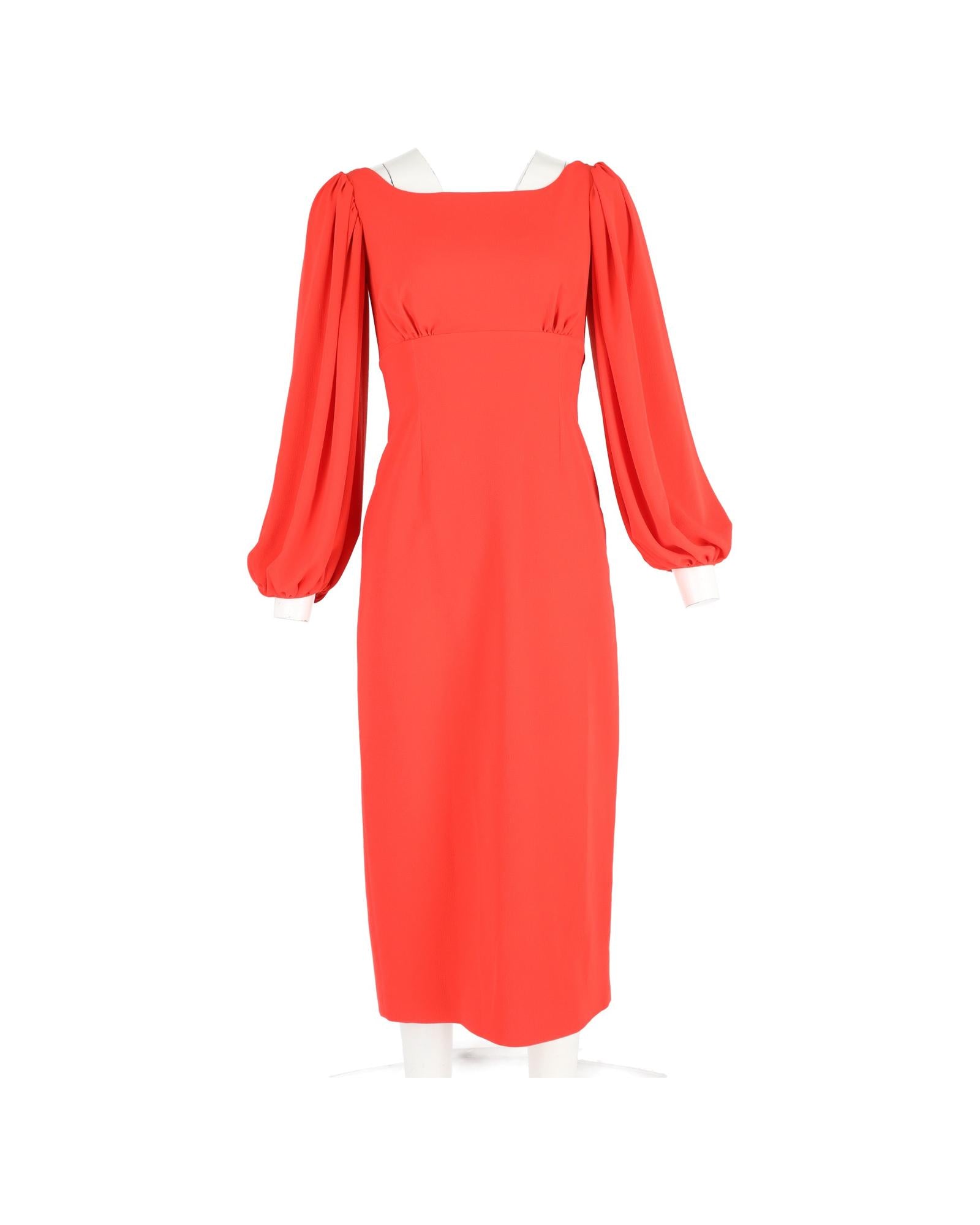 - Emilia Wickstead Midi Bishop Sleeve Dress in Red Polyester