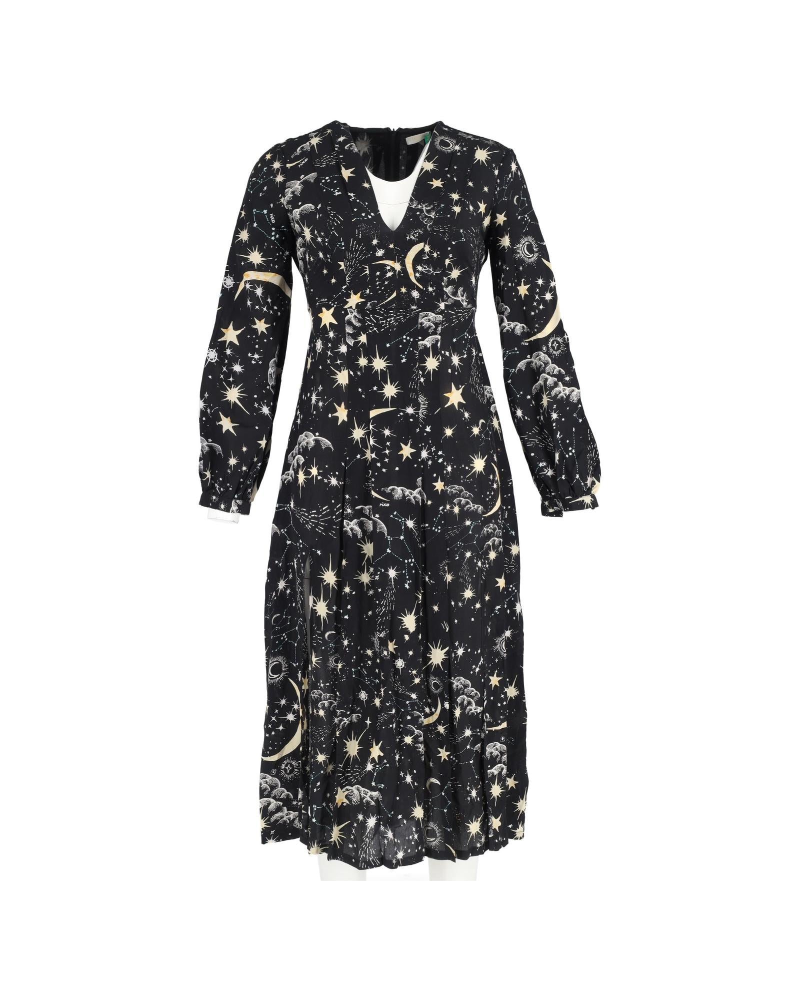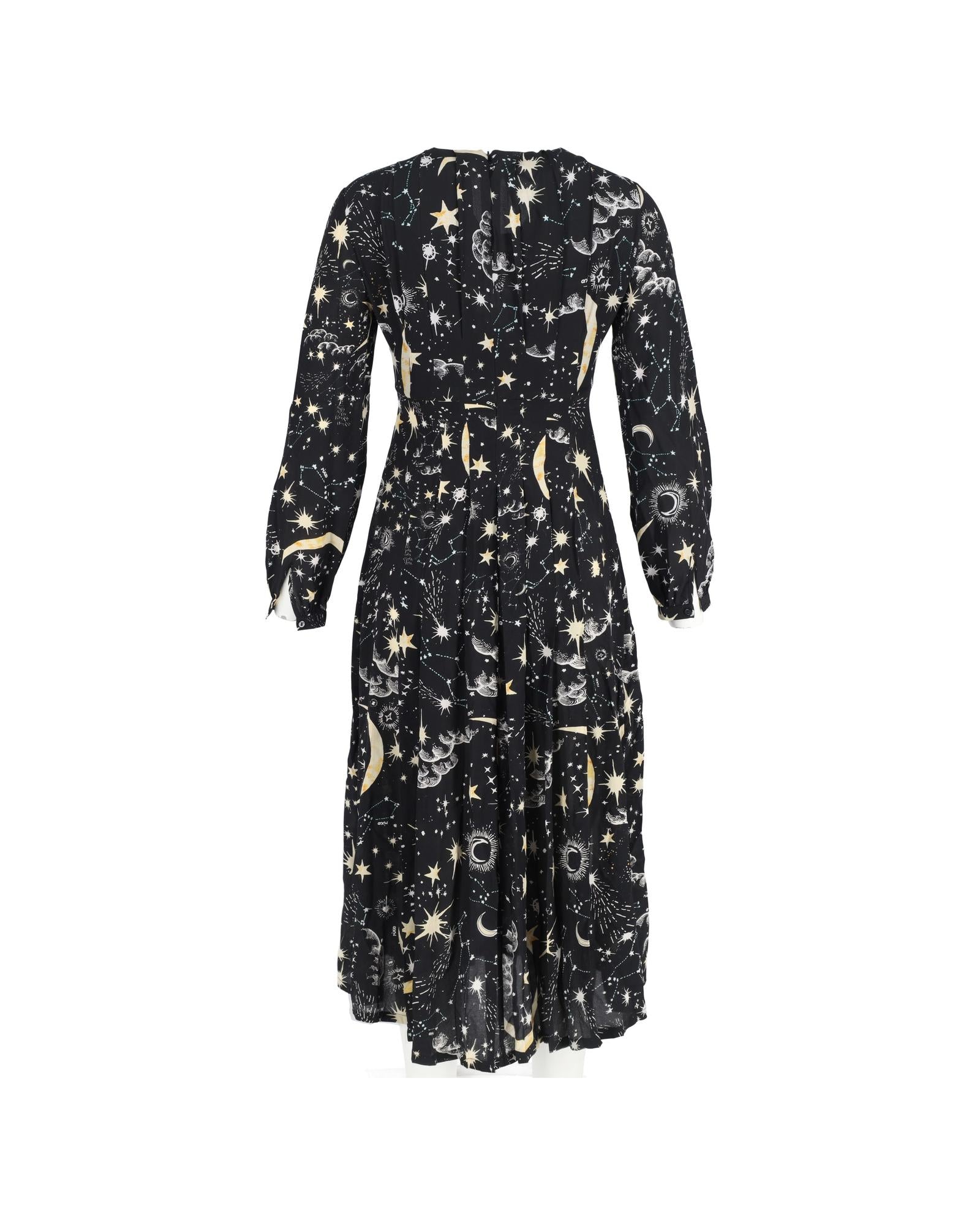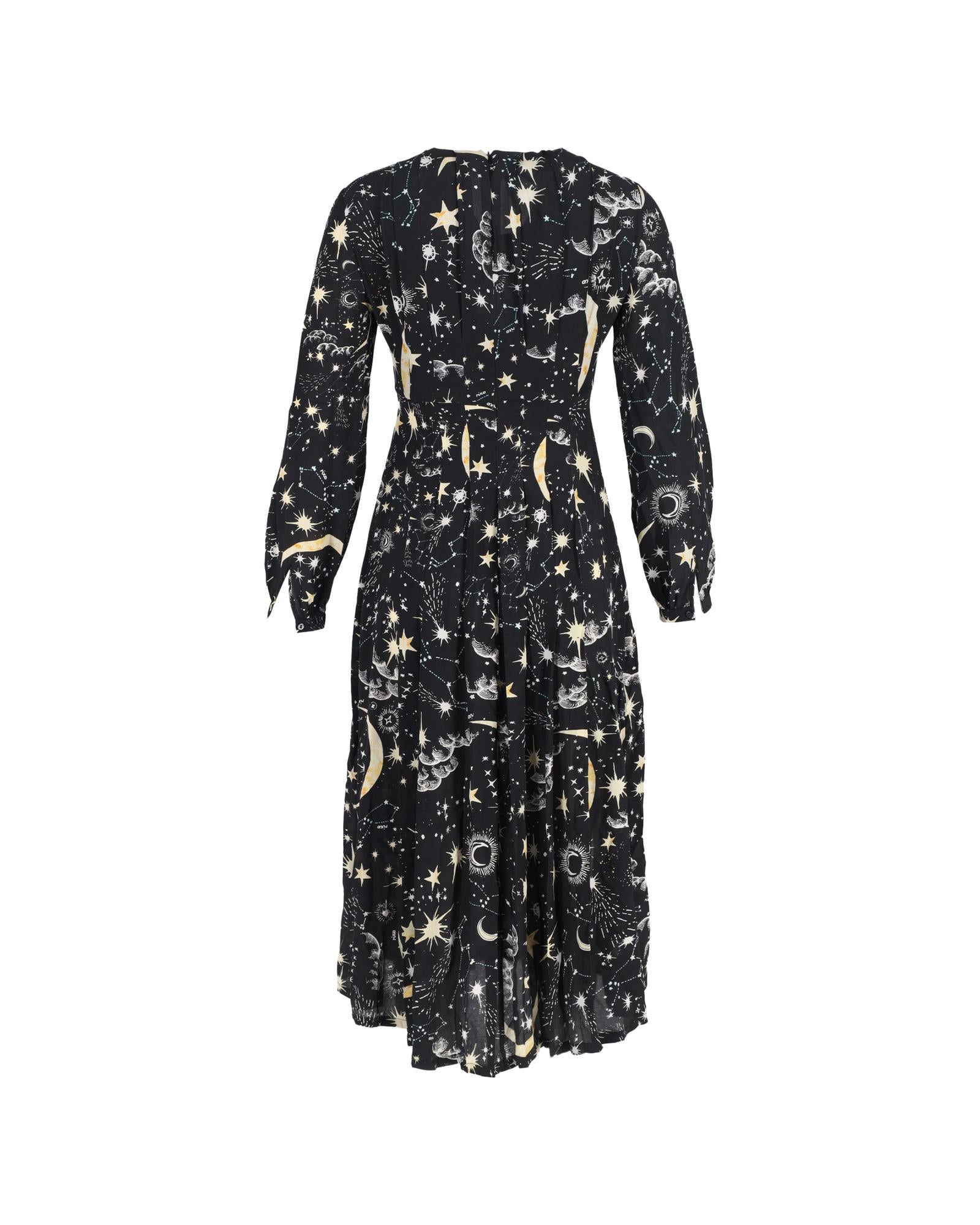 Camellia Constellation Print Midi Long Sleeve Dress