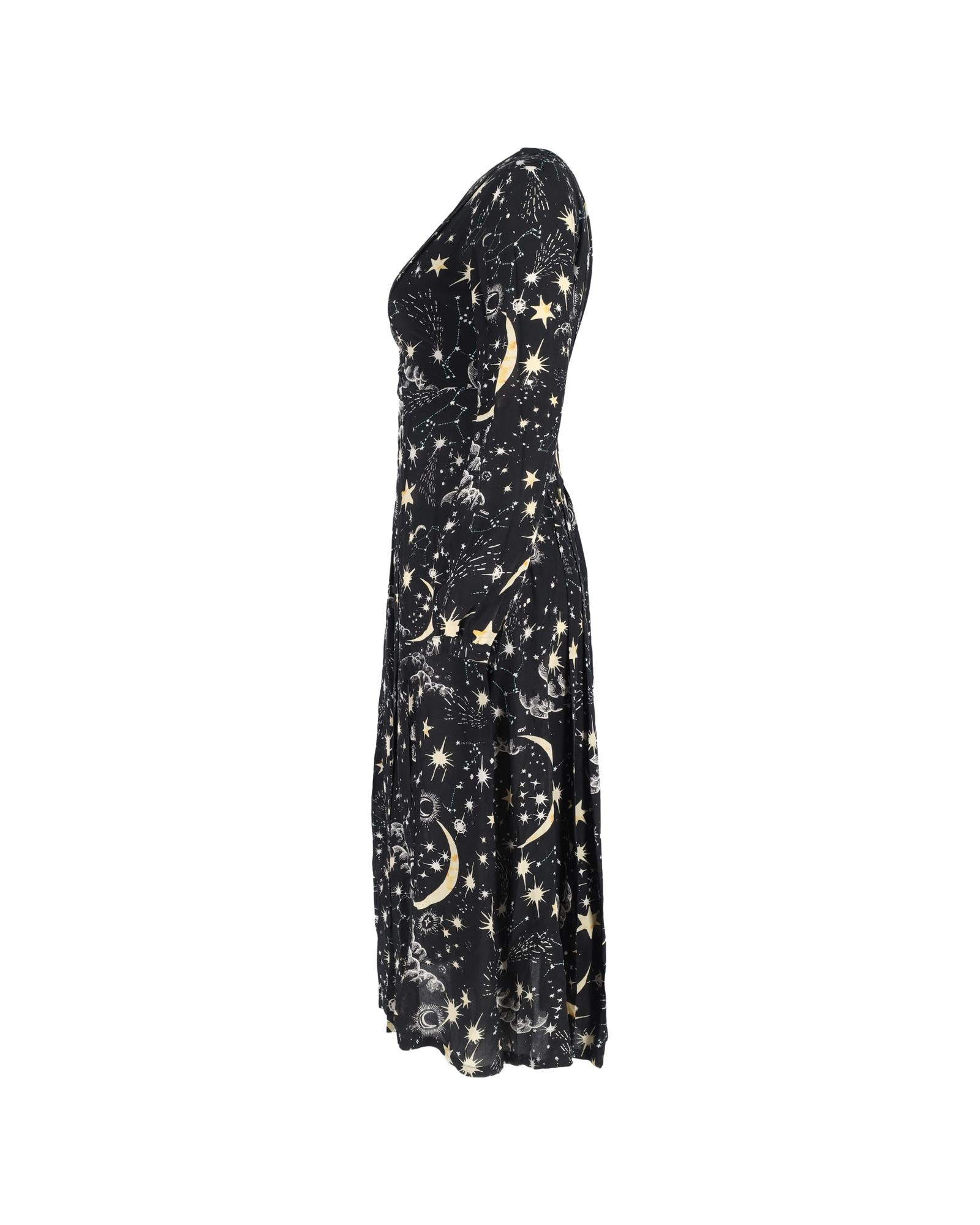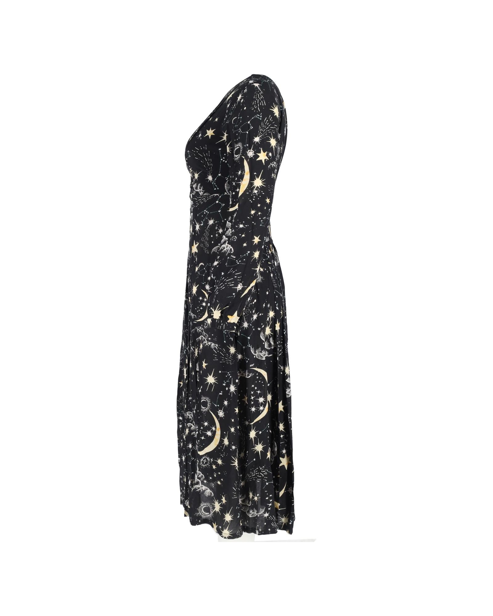 - Rixo Camellia Constellation Midi Long Sleeve Dress in Black Viscose