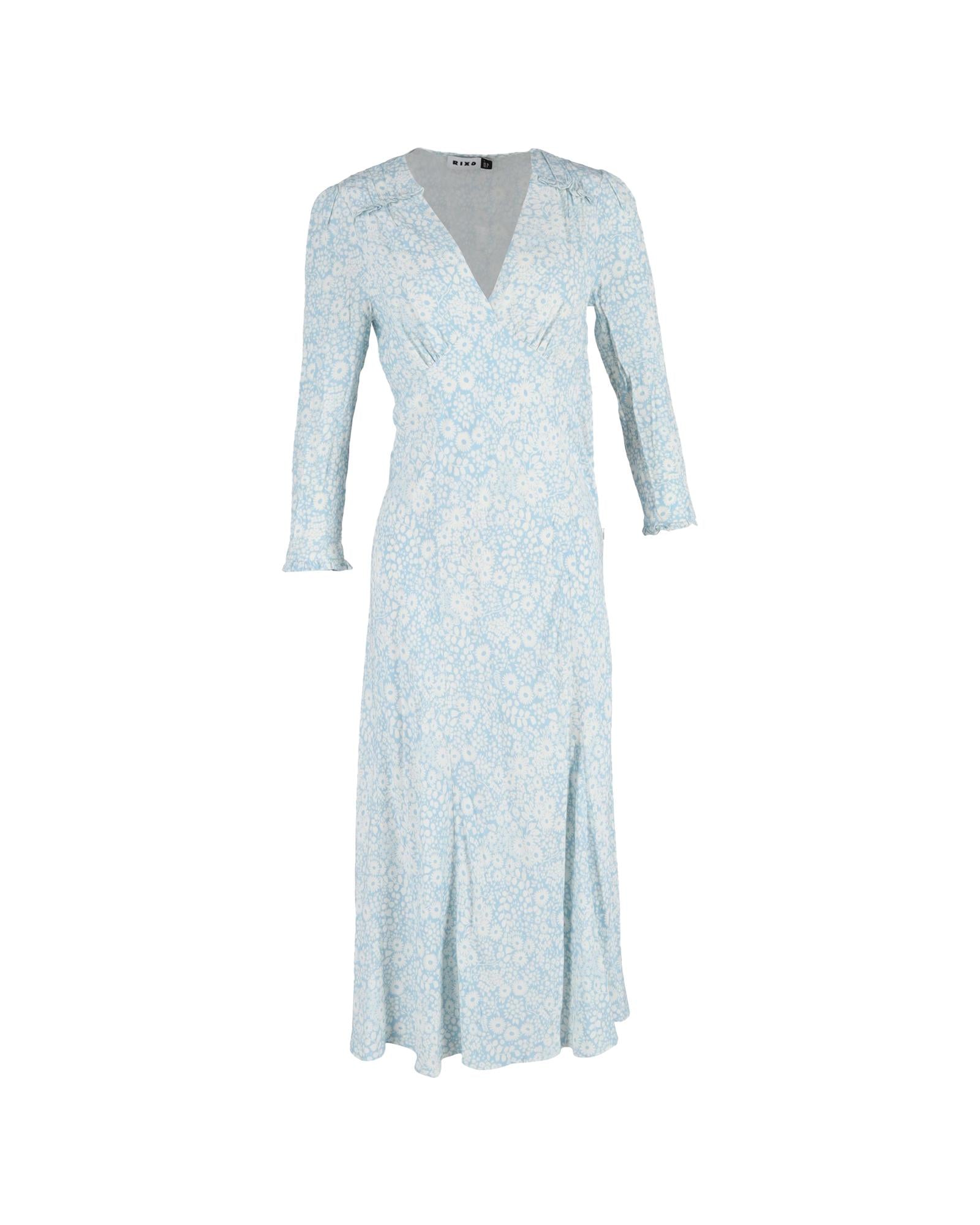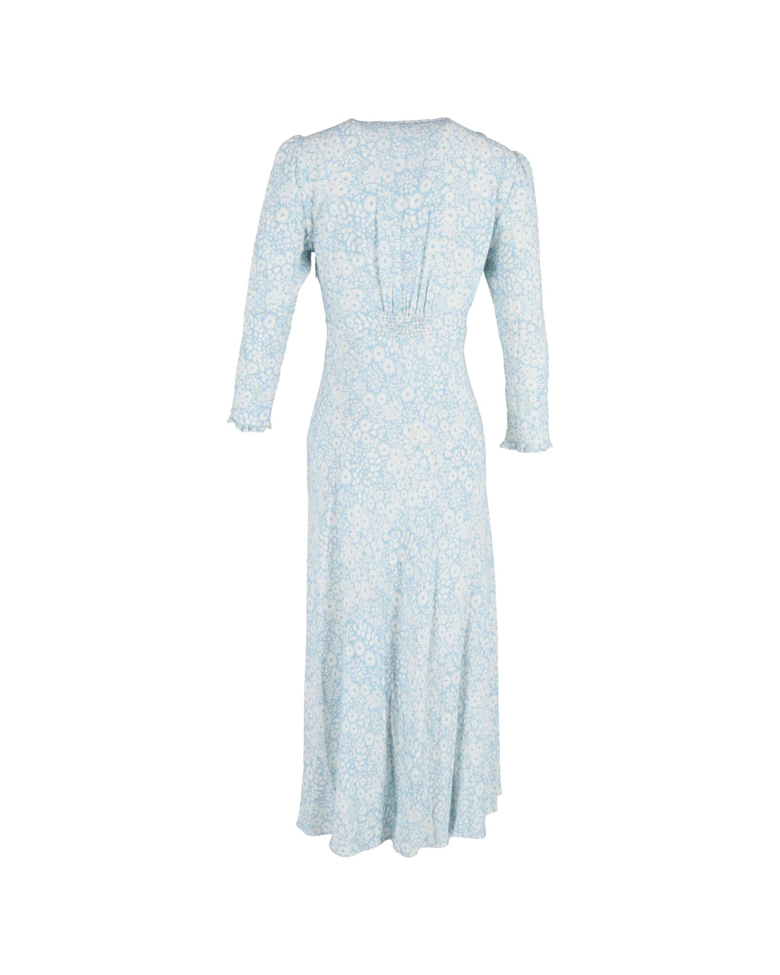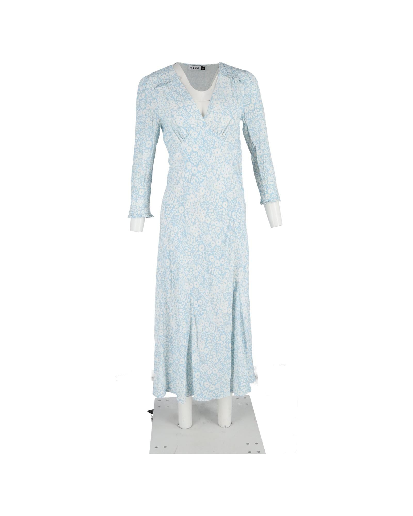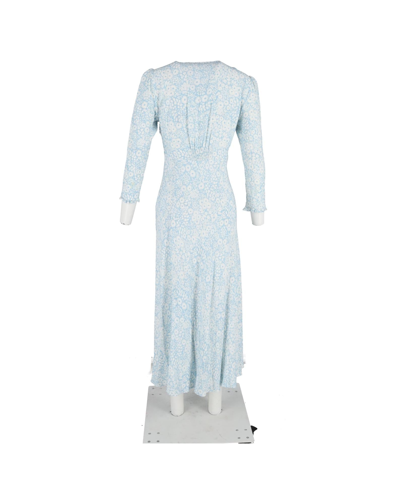 Pre-owned Elegant Floral Print Long Sleeve Midi Dress