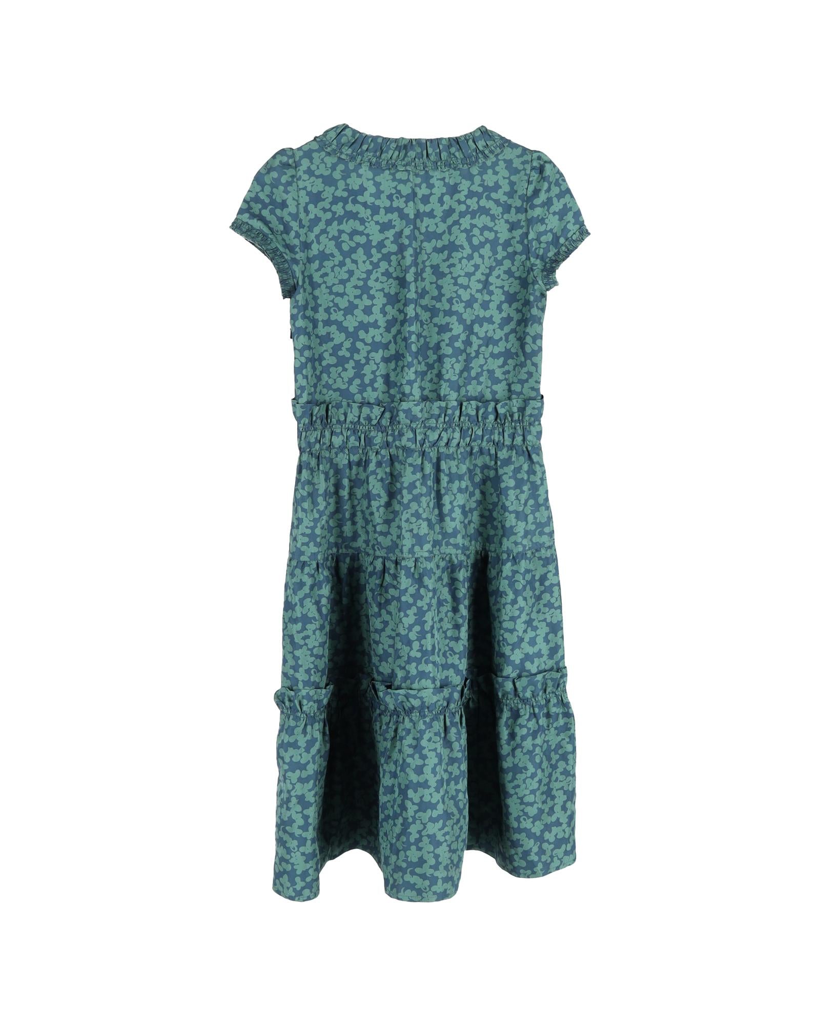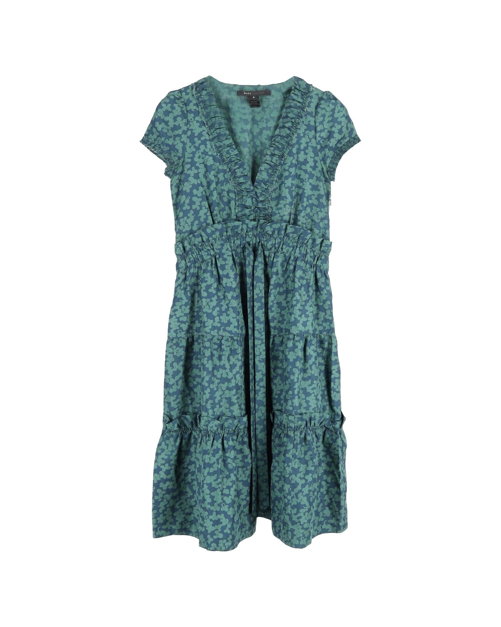 Pre-owned Floral Print Tiered Midi Dress with V-Neck and Short Sleeves