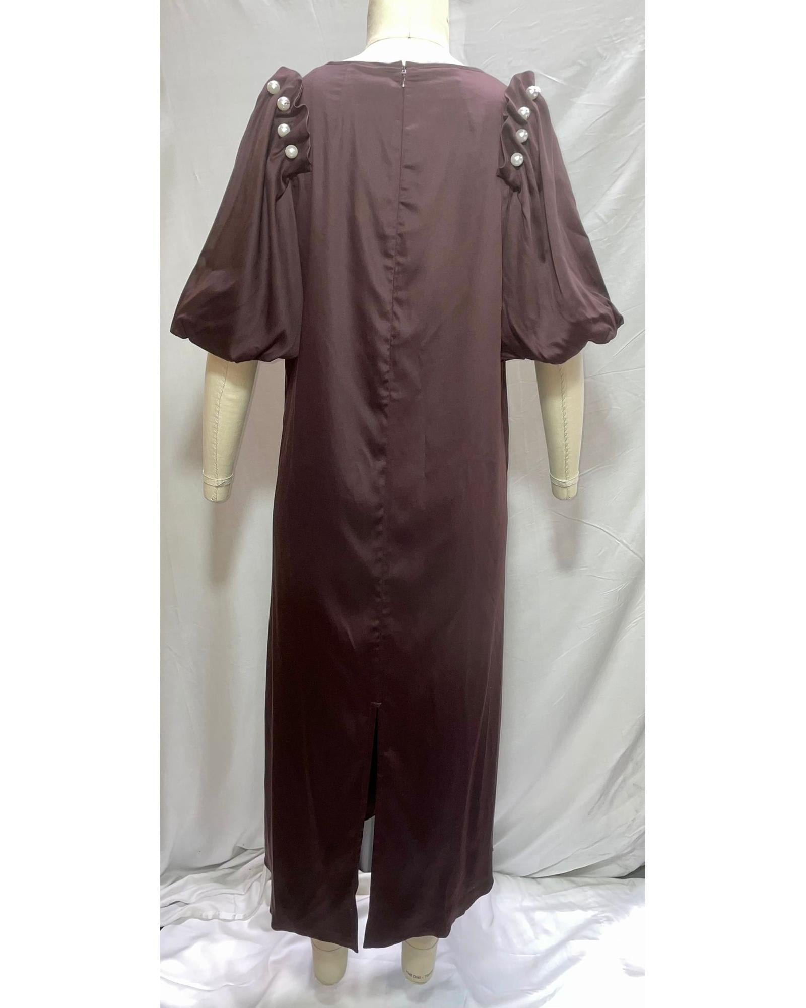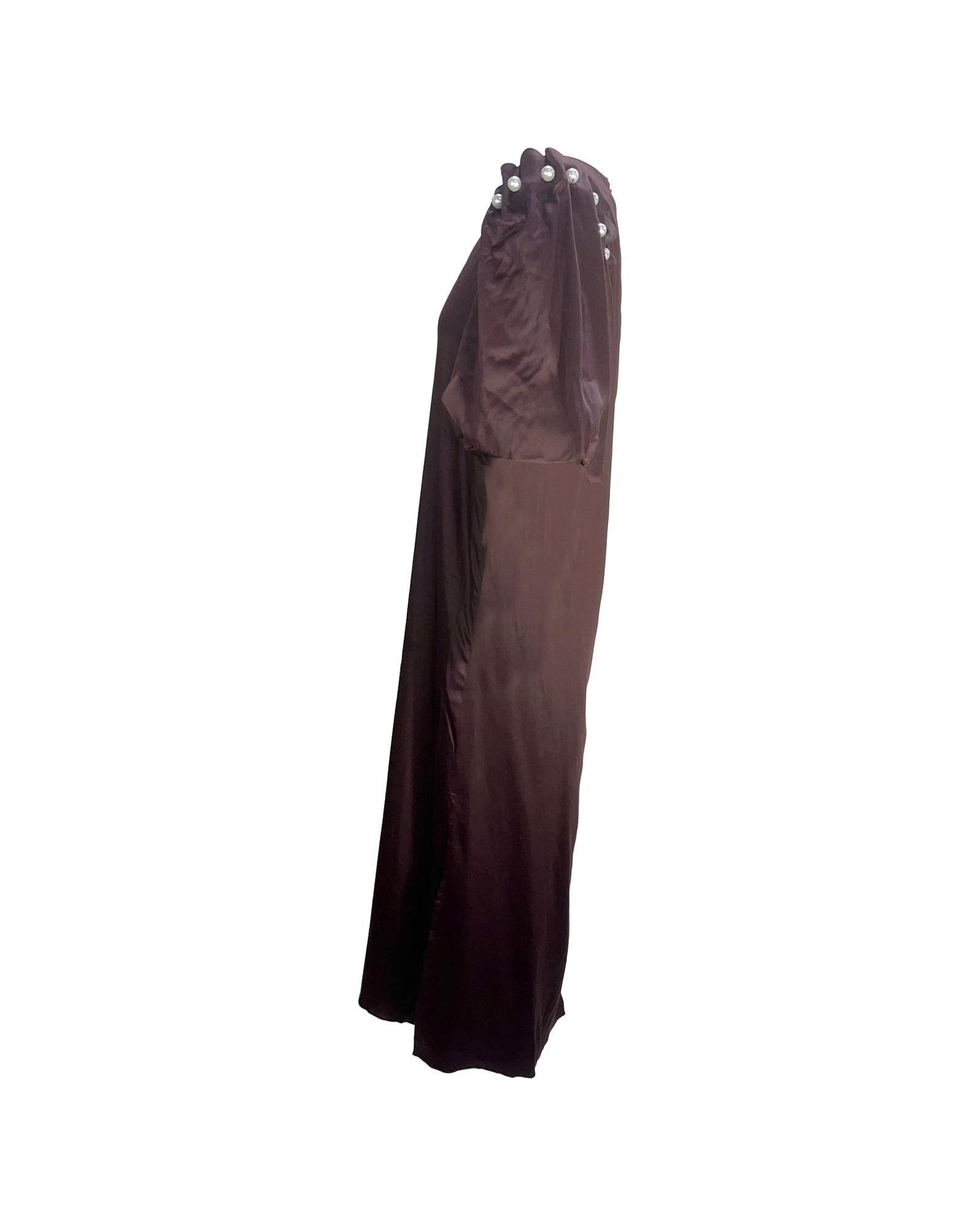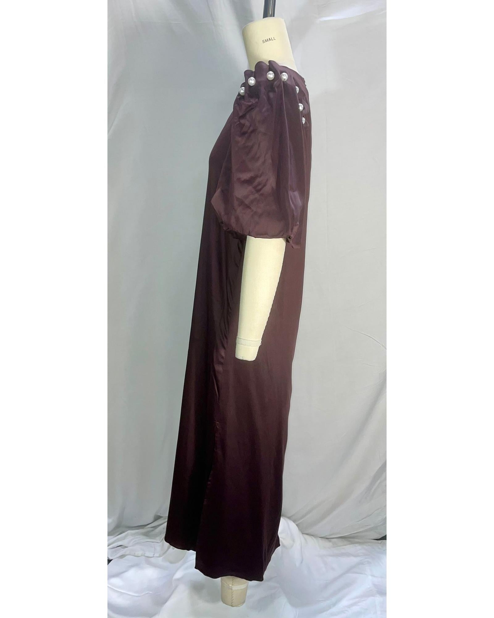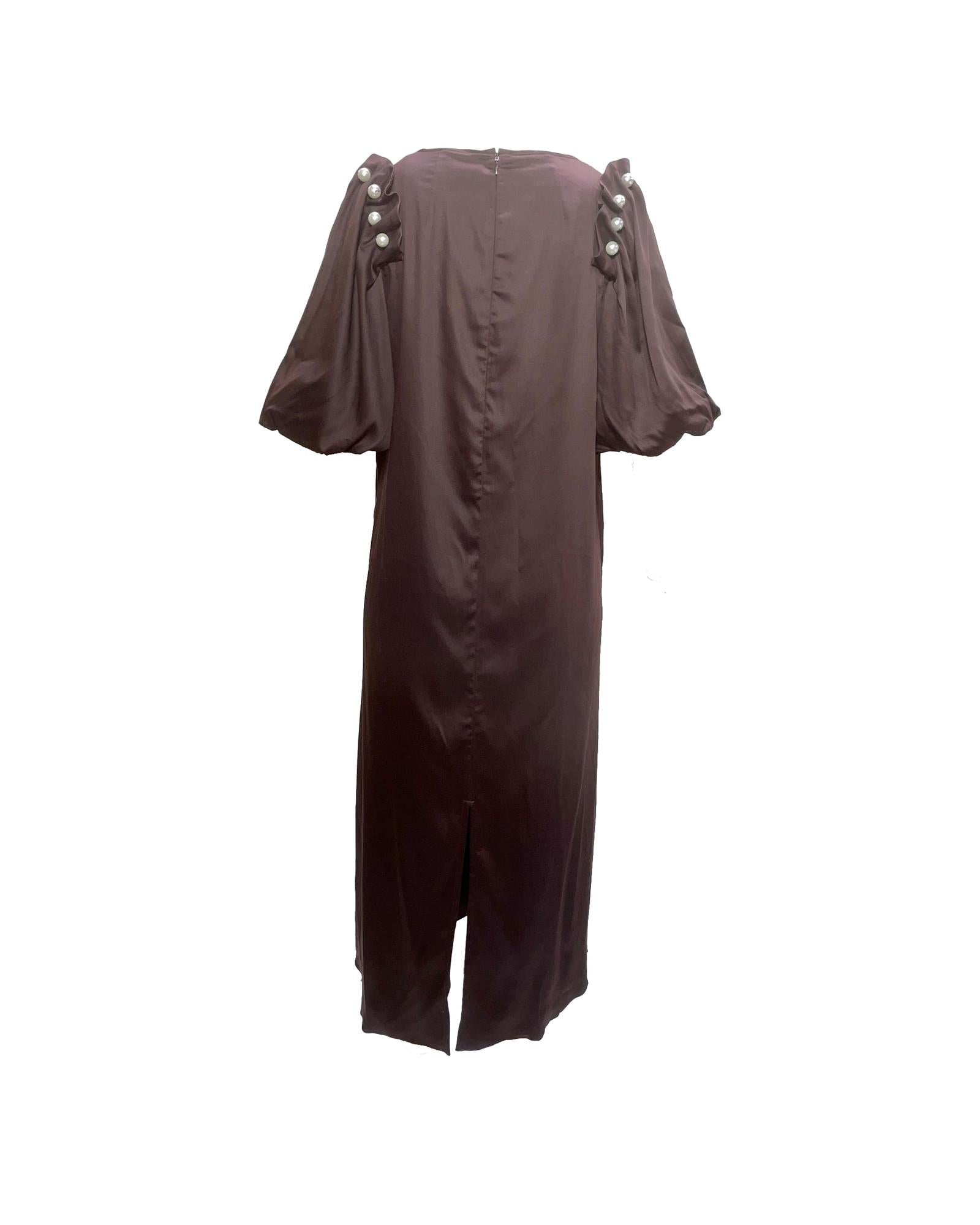 Faux Pearl-Embellished Maxi Dress in Tencel with Puffed Sleeves