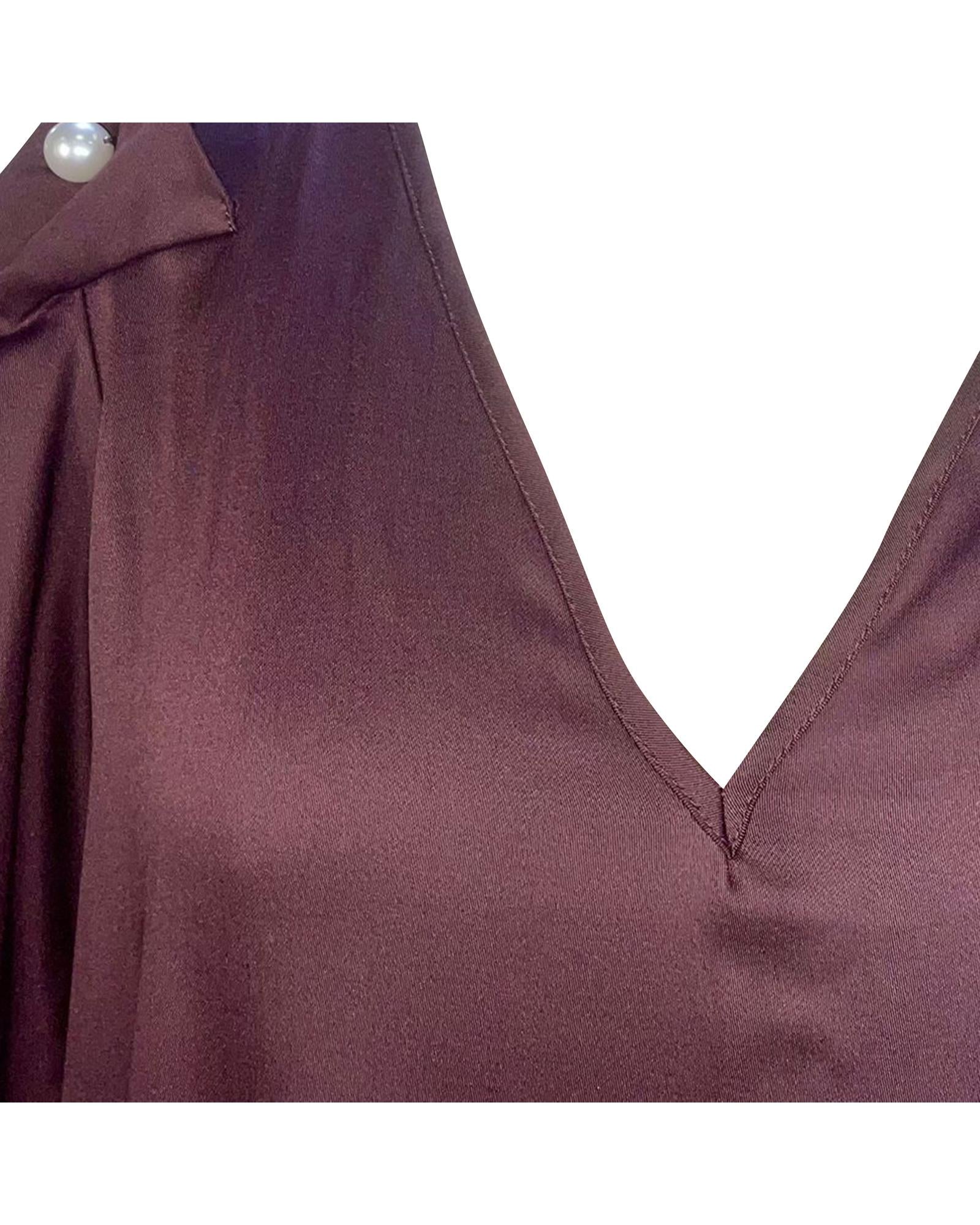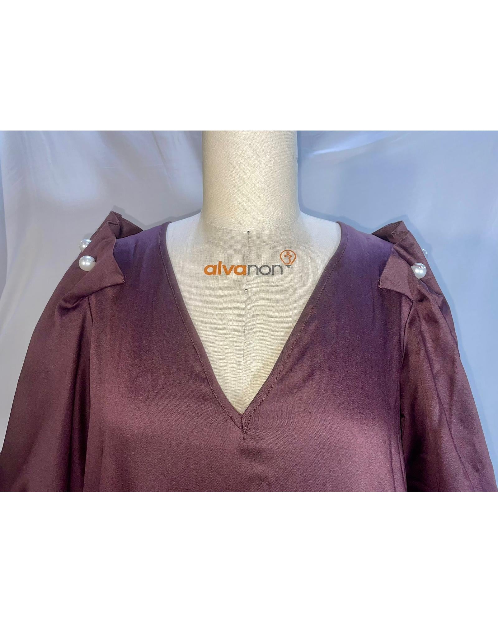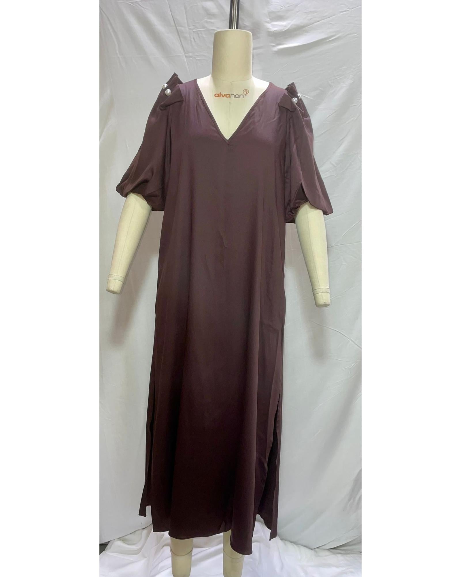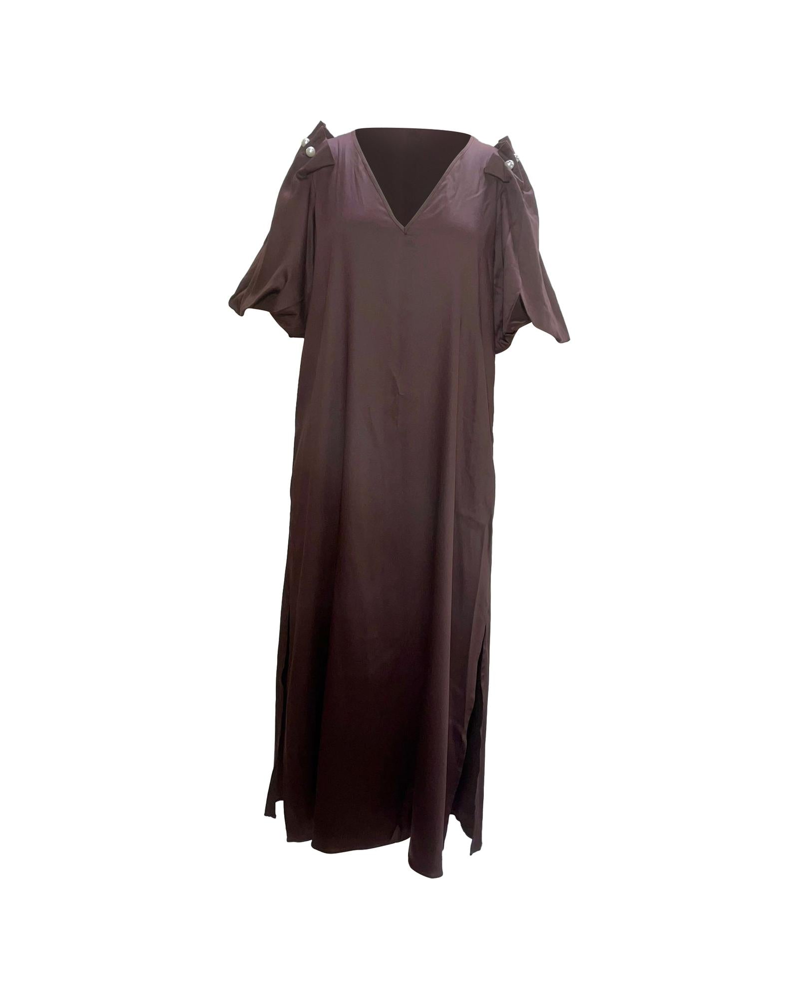 Faux Pearl-Embellished Maxi Dress in Tencel with Puffed Sleeves