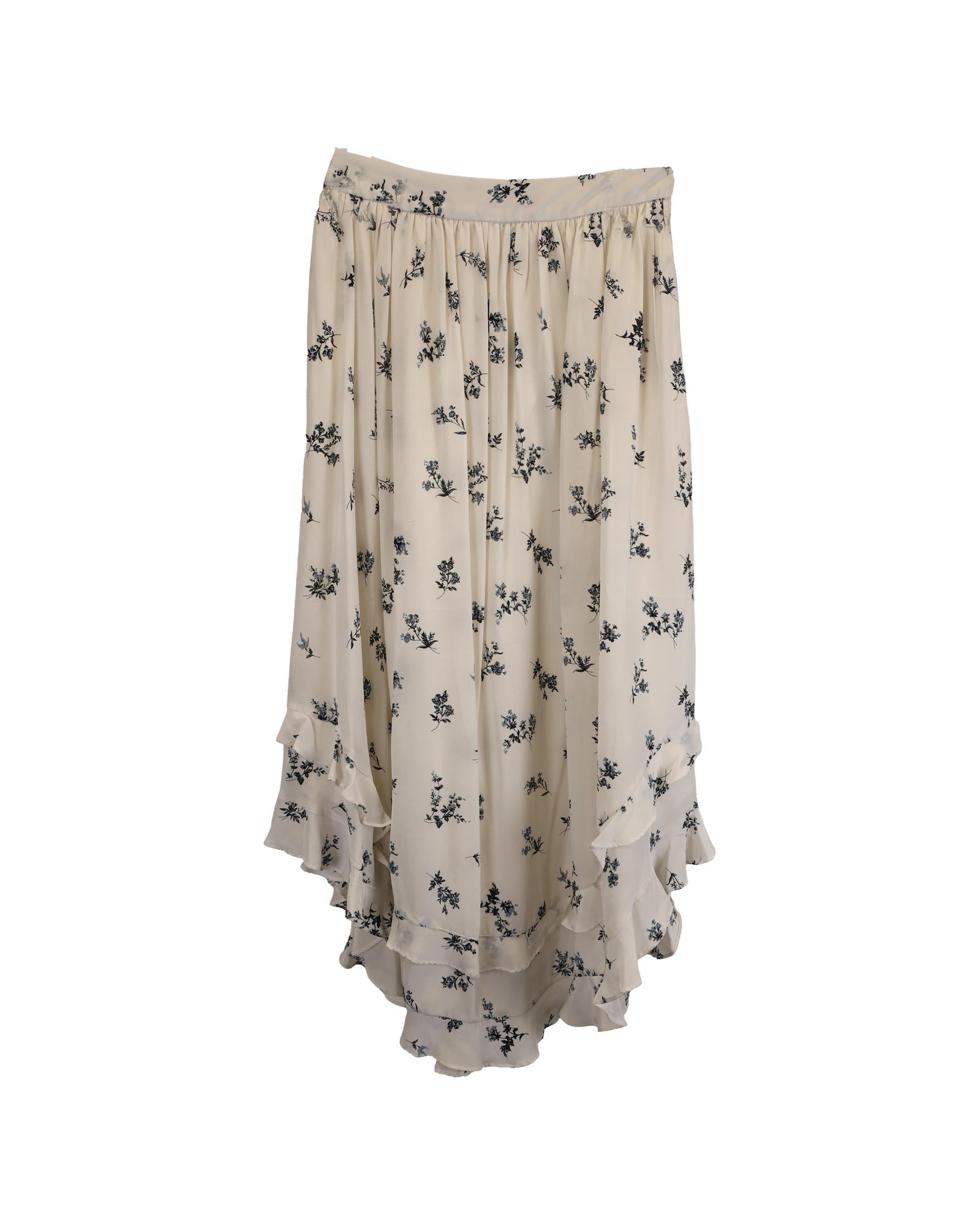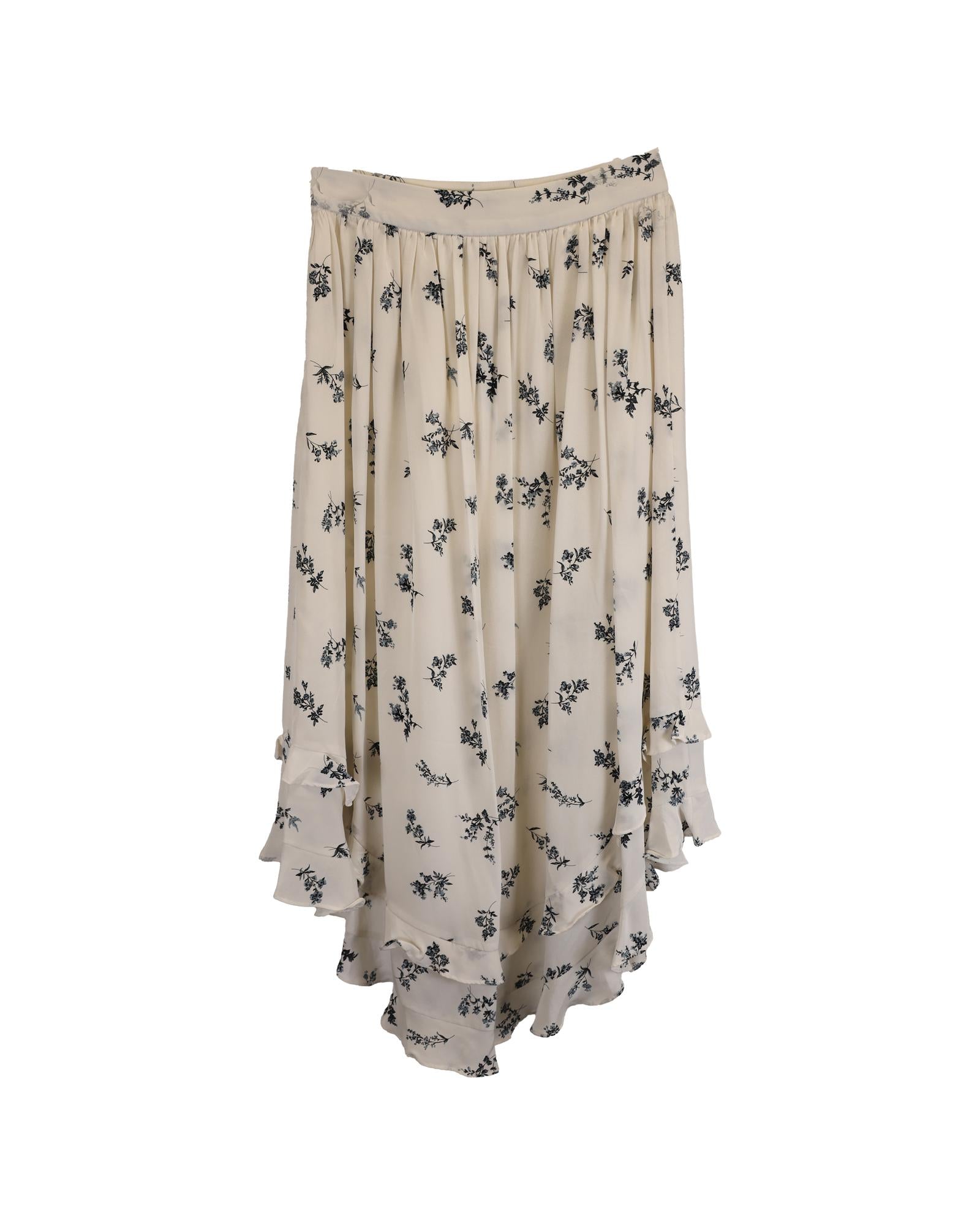 • Zimmermann Ditsy Floral Midi Skirt in Cream Viscose