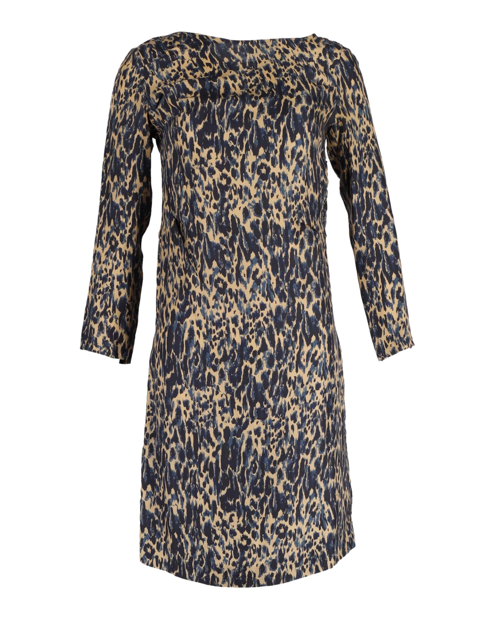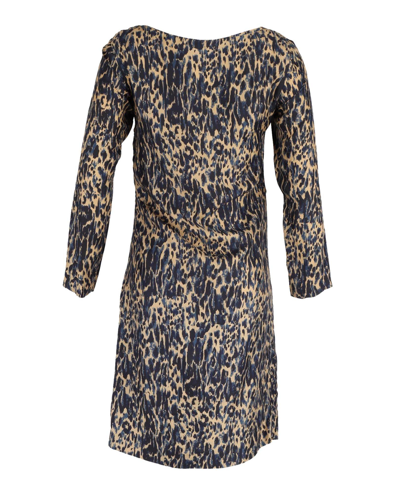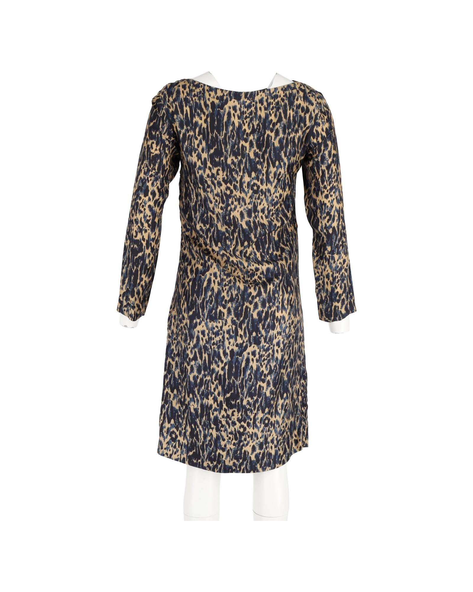 Animal Print Silk Shift Dress in Navy Blue by Dries Van Noten
