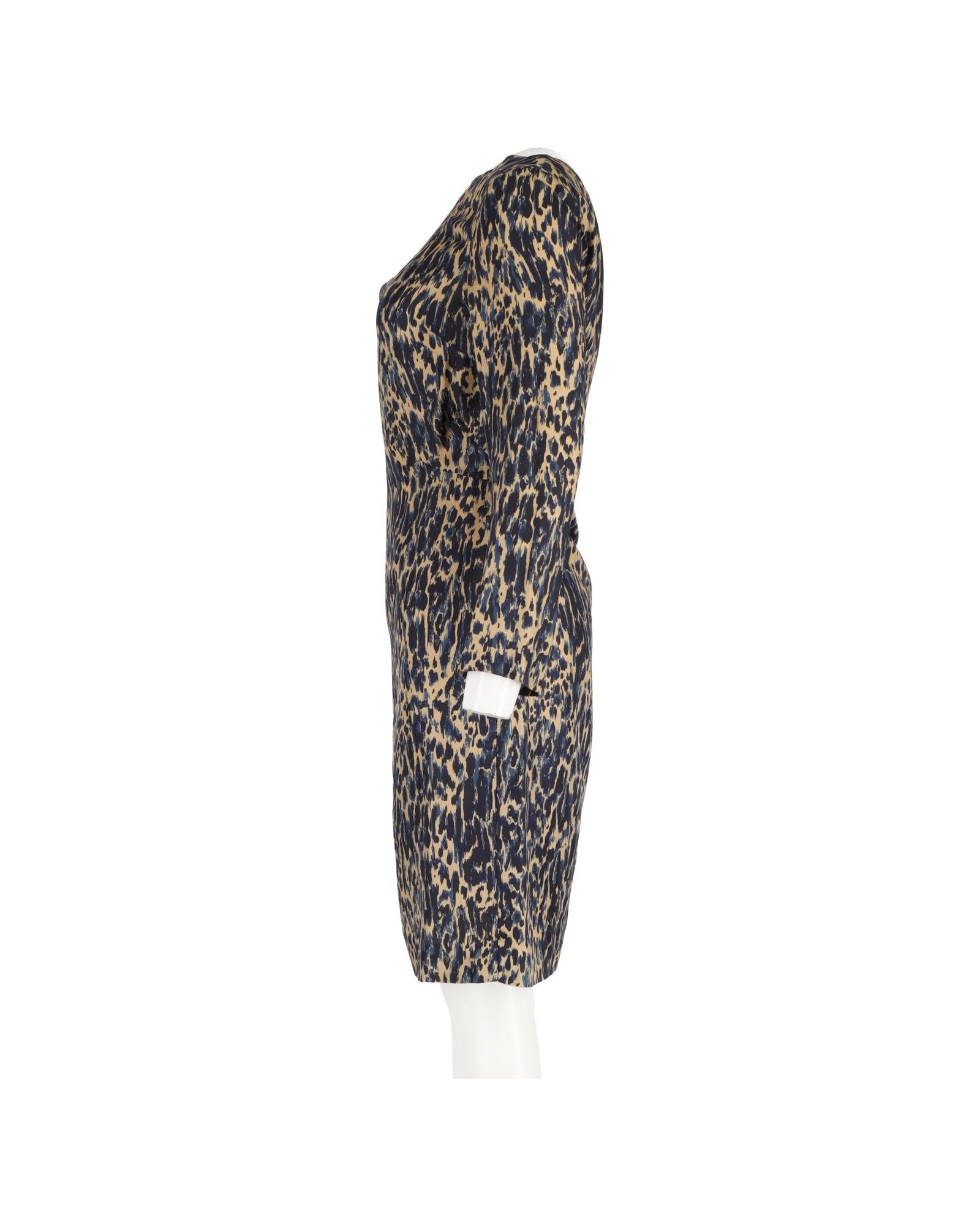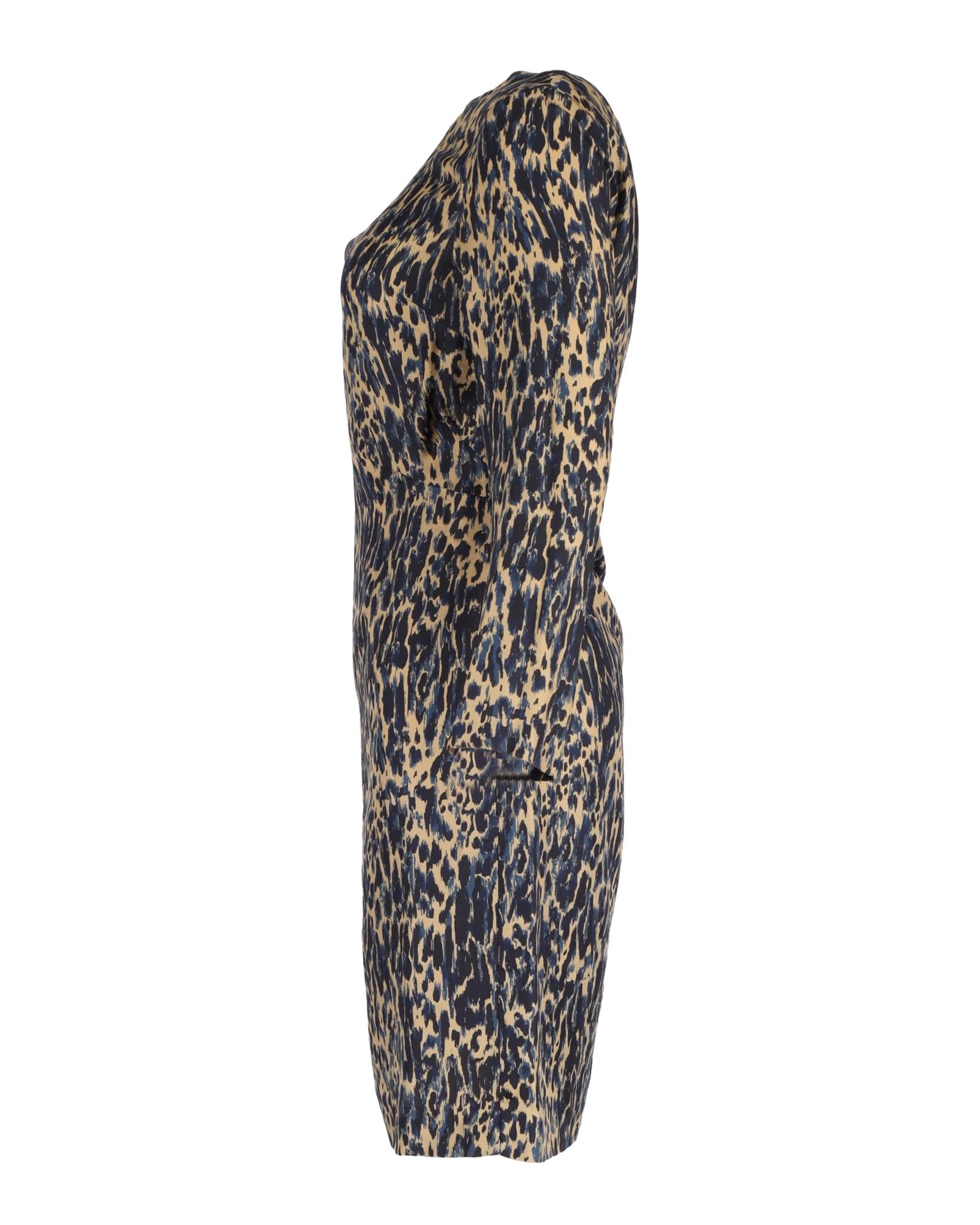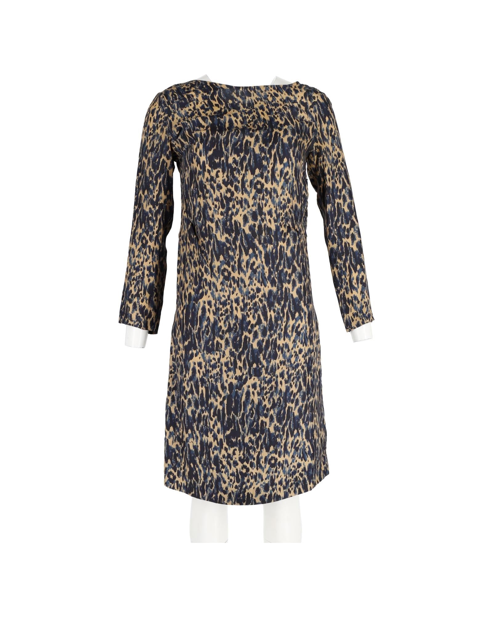 Animal Print Silk Shift Dress in Navy Blue by Dries Van Noten