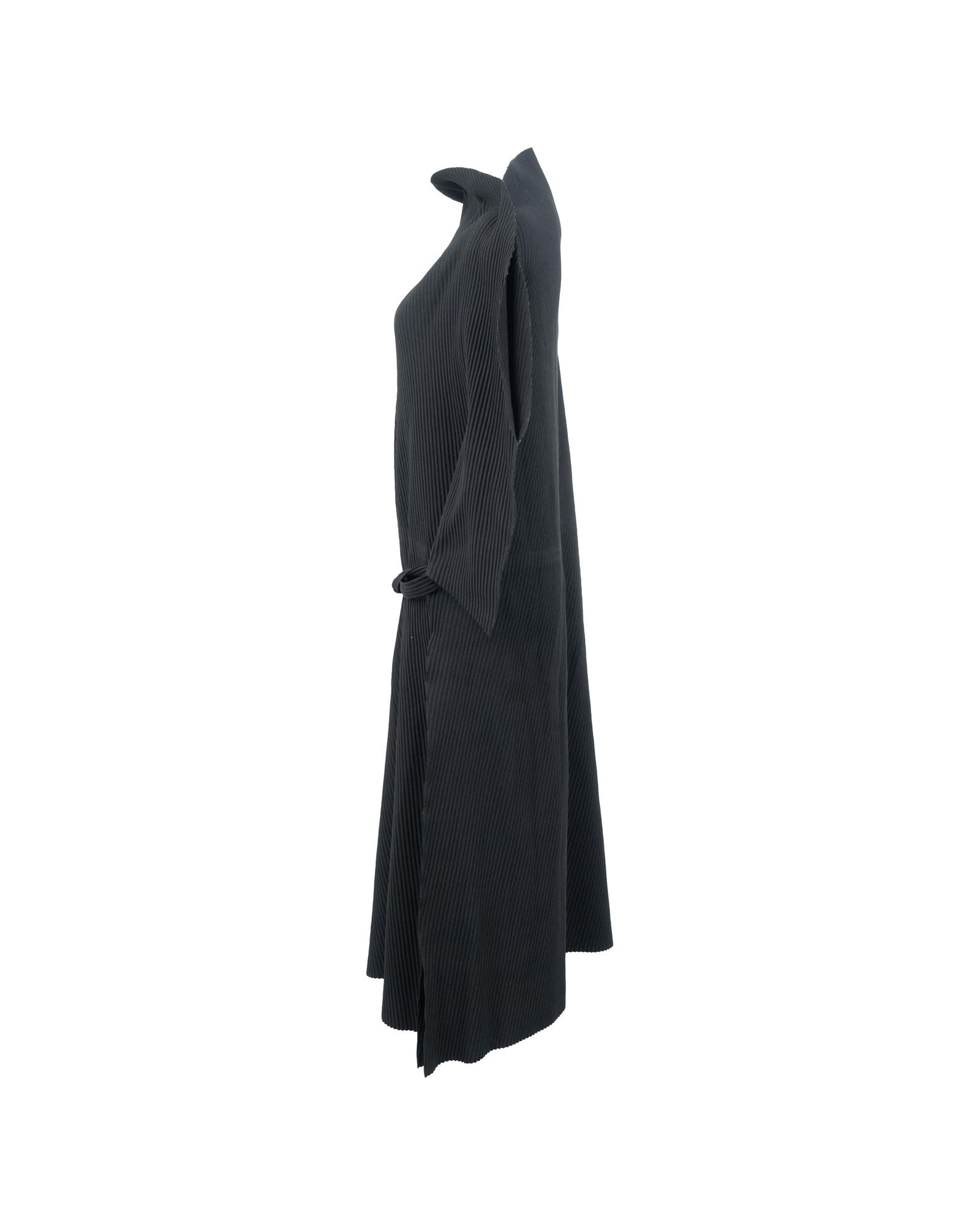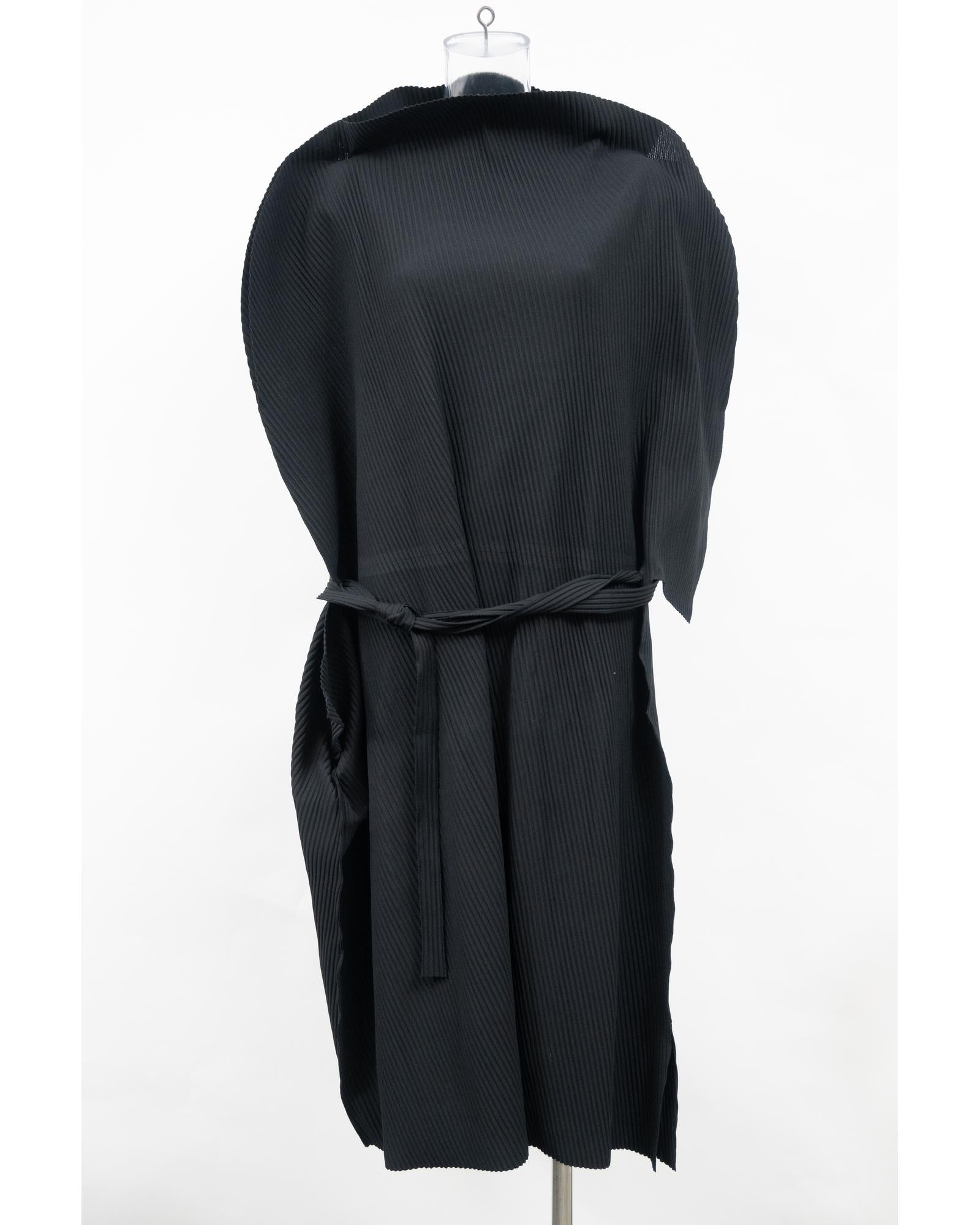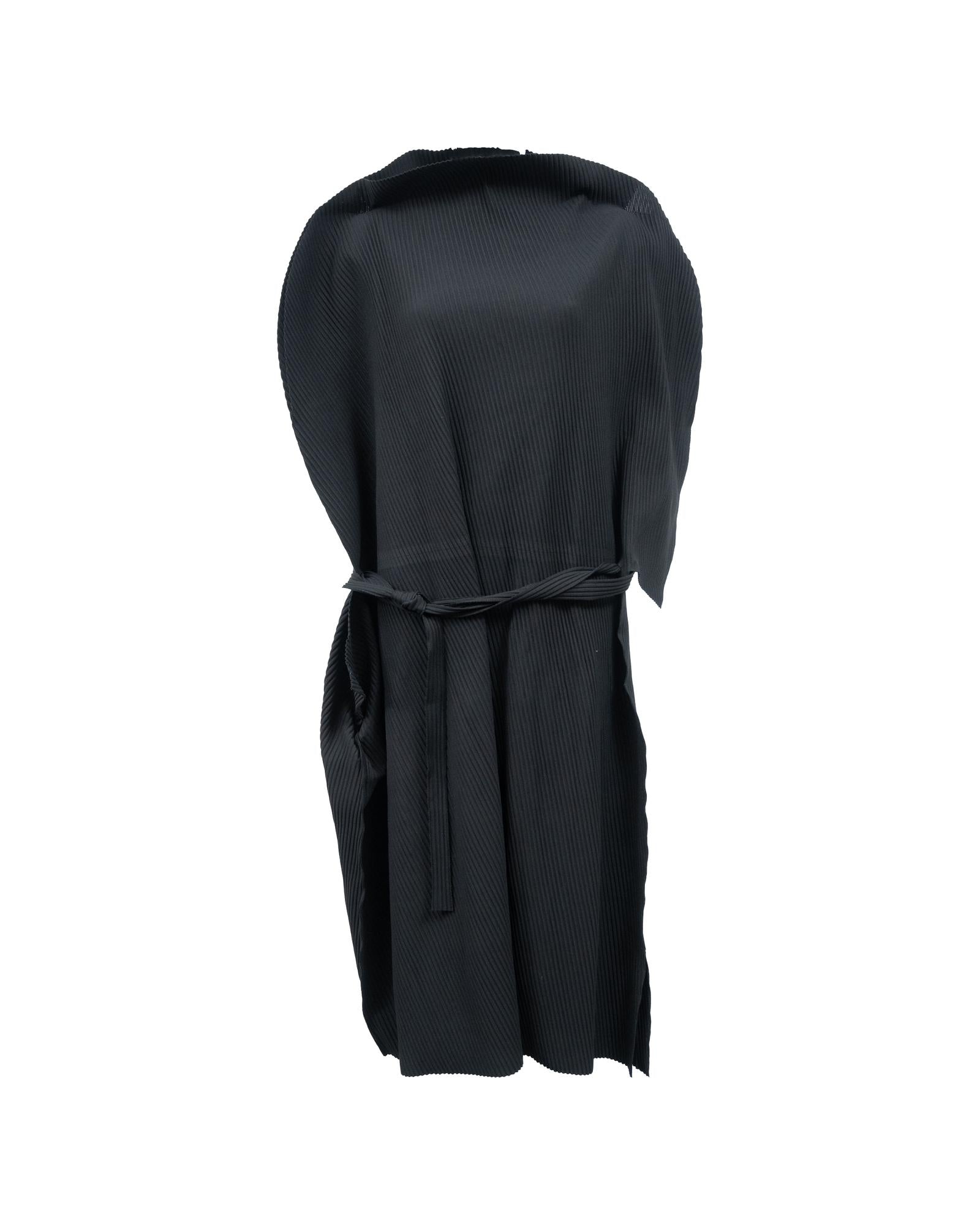 - Issey Miyake Me Pleated Belted Midi Dress in Black Polyester