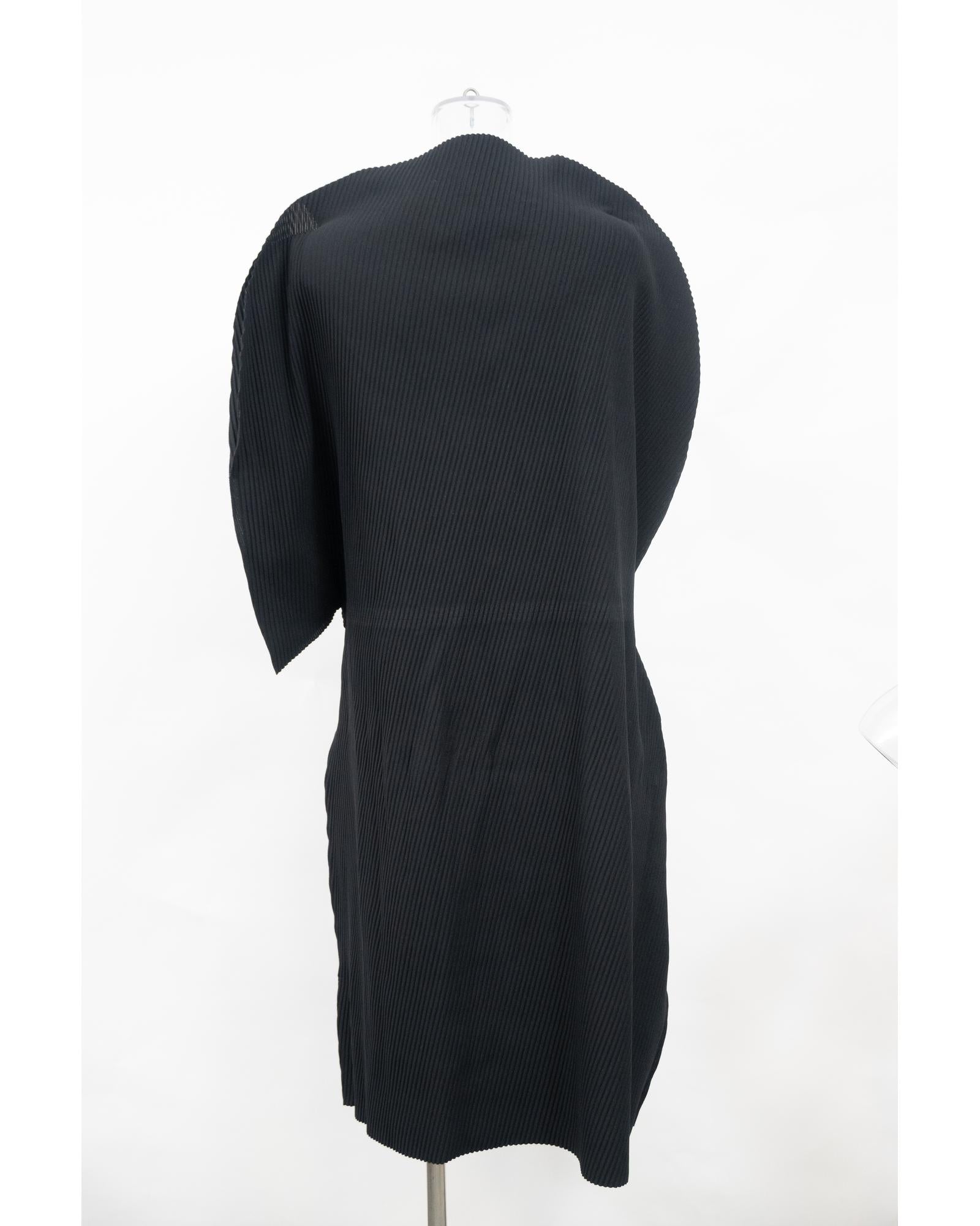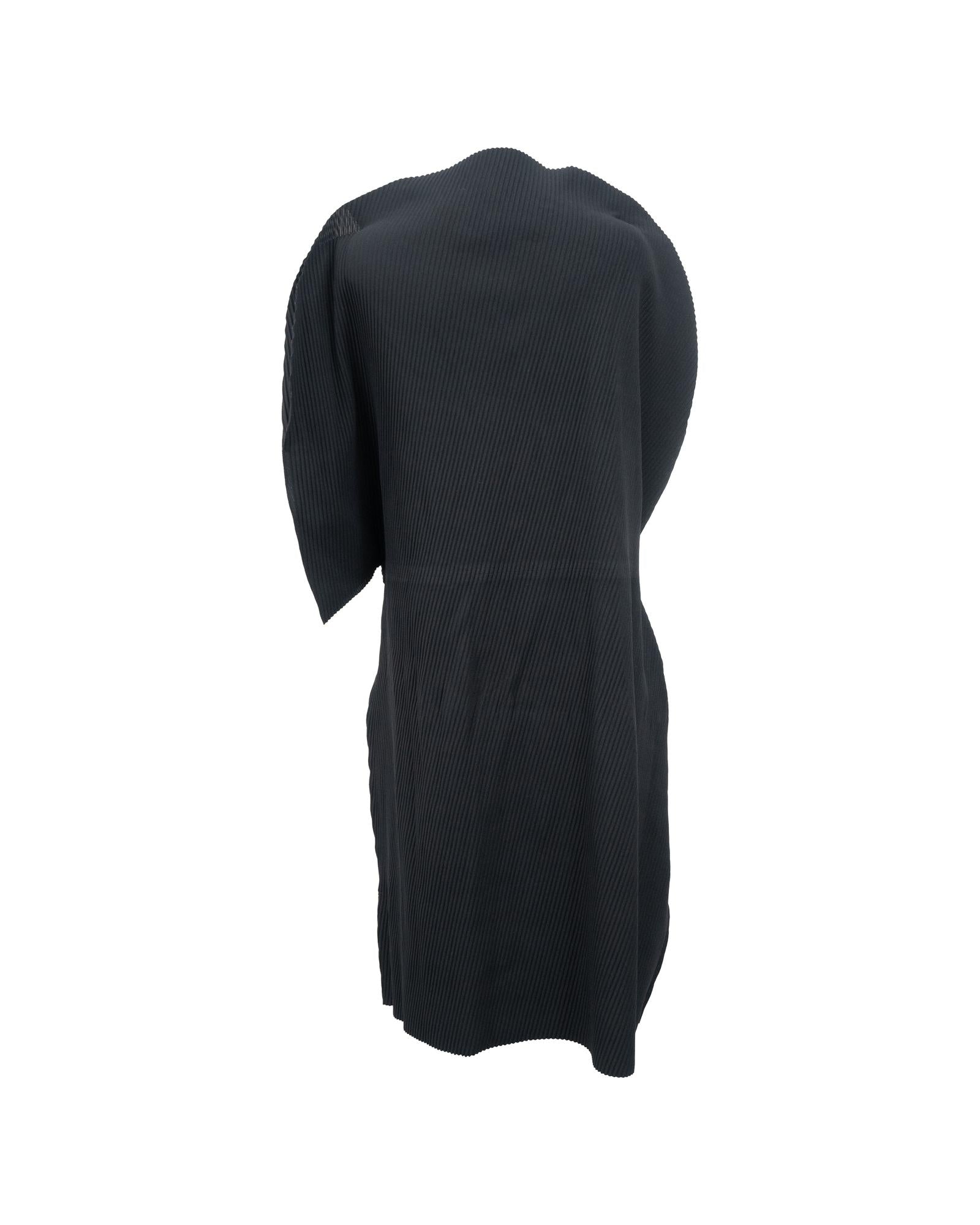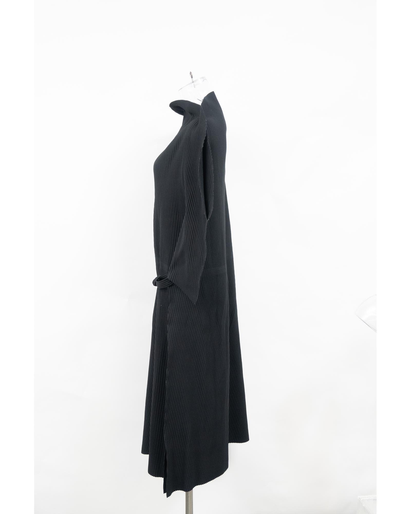 - Issey Miyake Me Pleated Belted Midi Dress in Black Polyester
