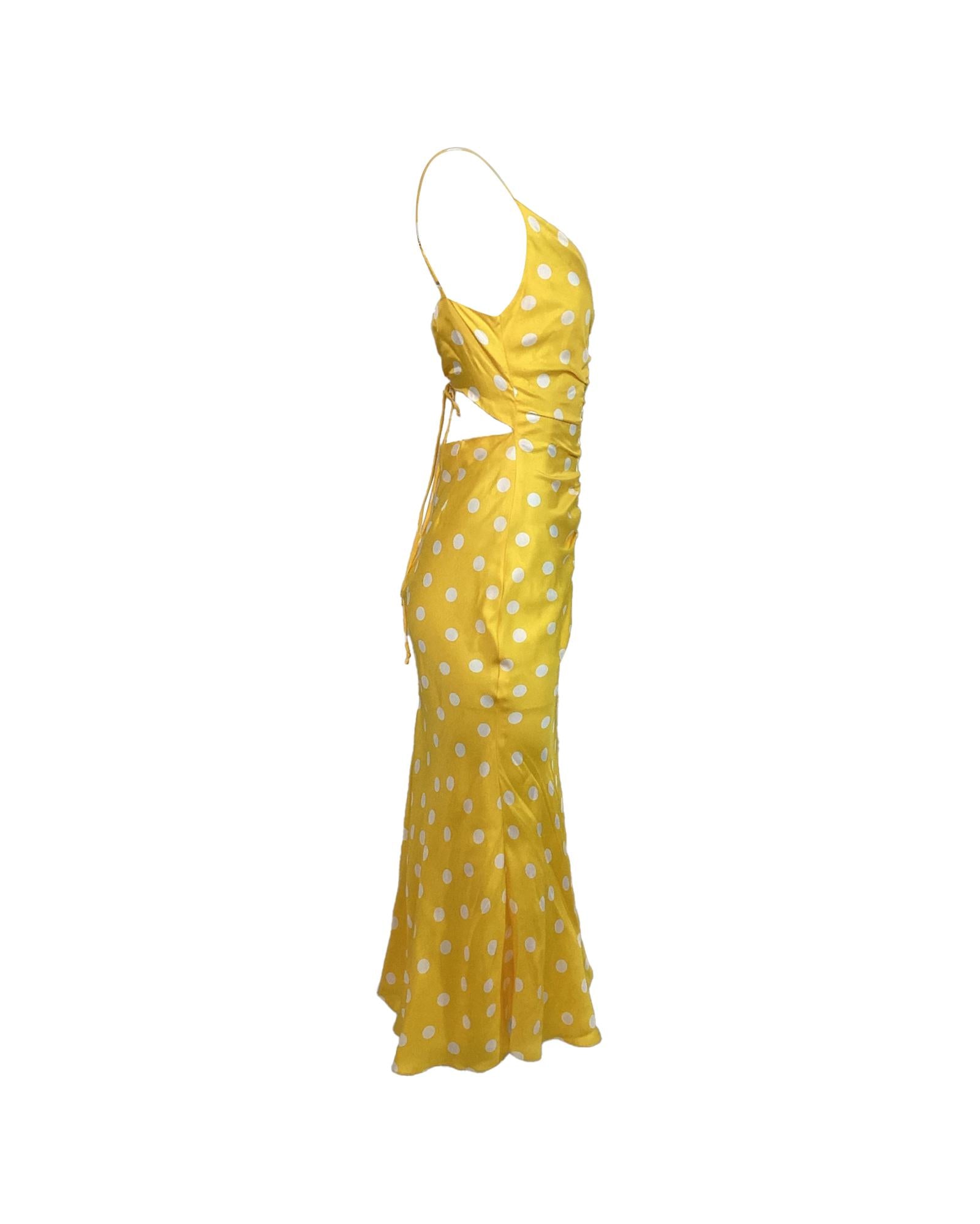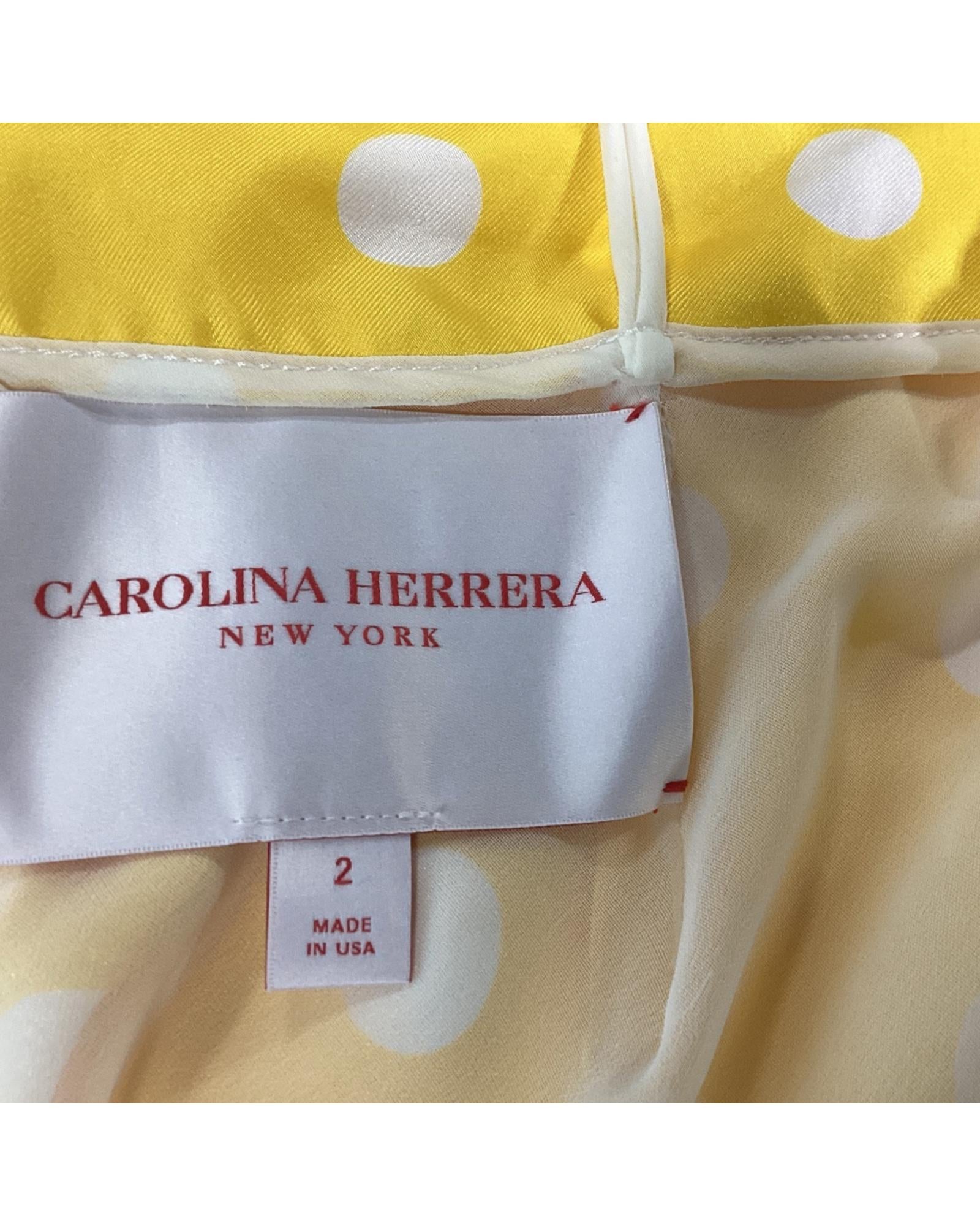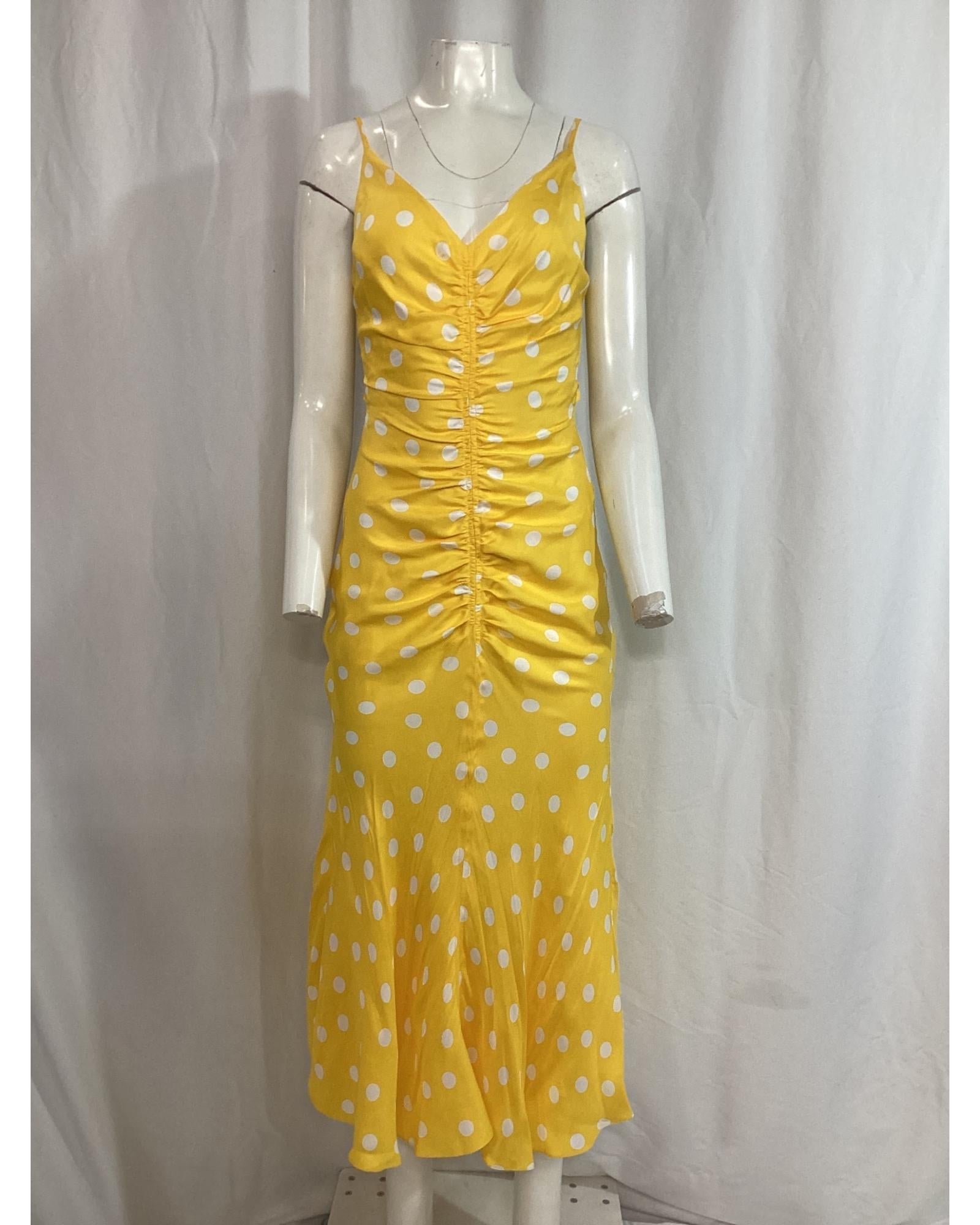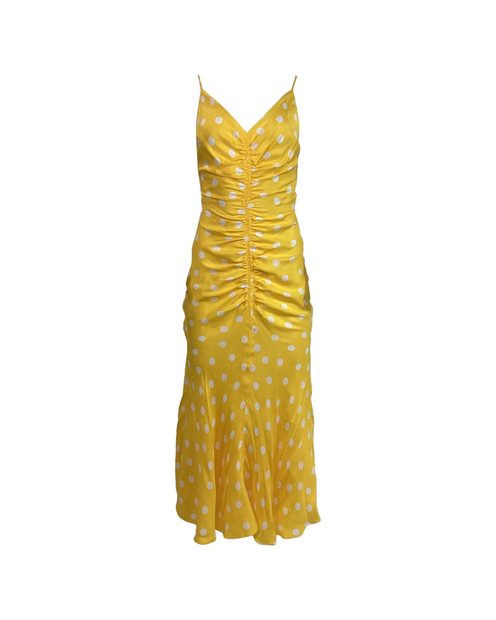 • Carolina Herrera Ruched Polka Dot Midi Sleeveless Dress