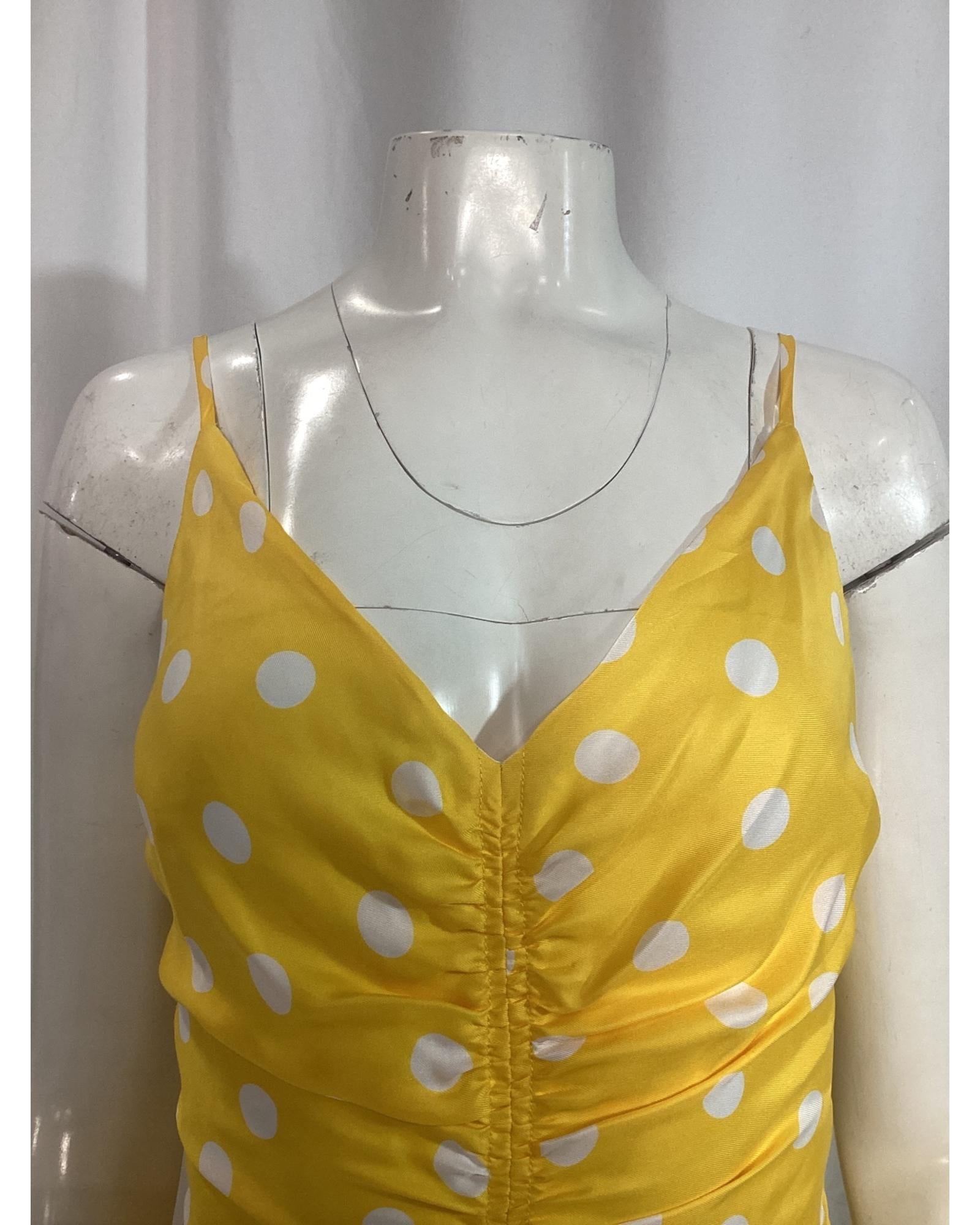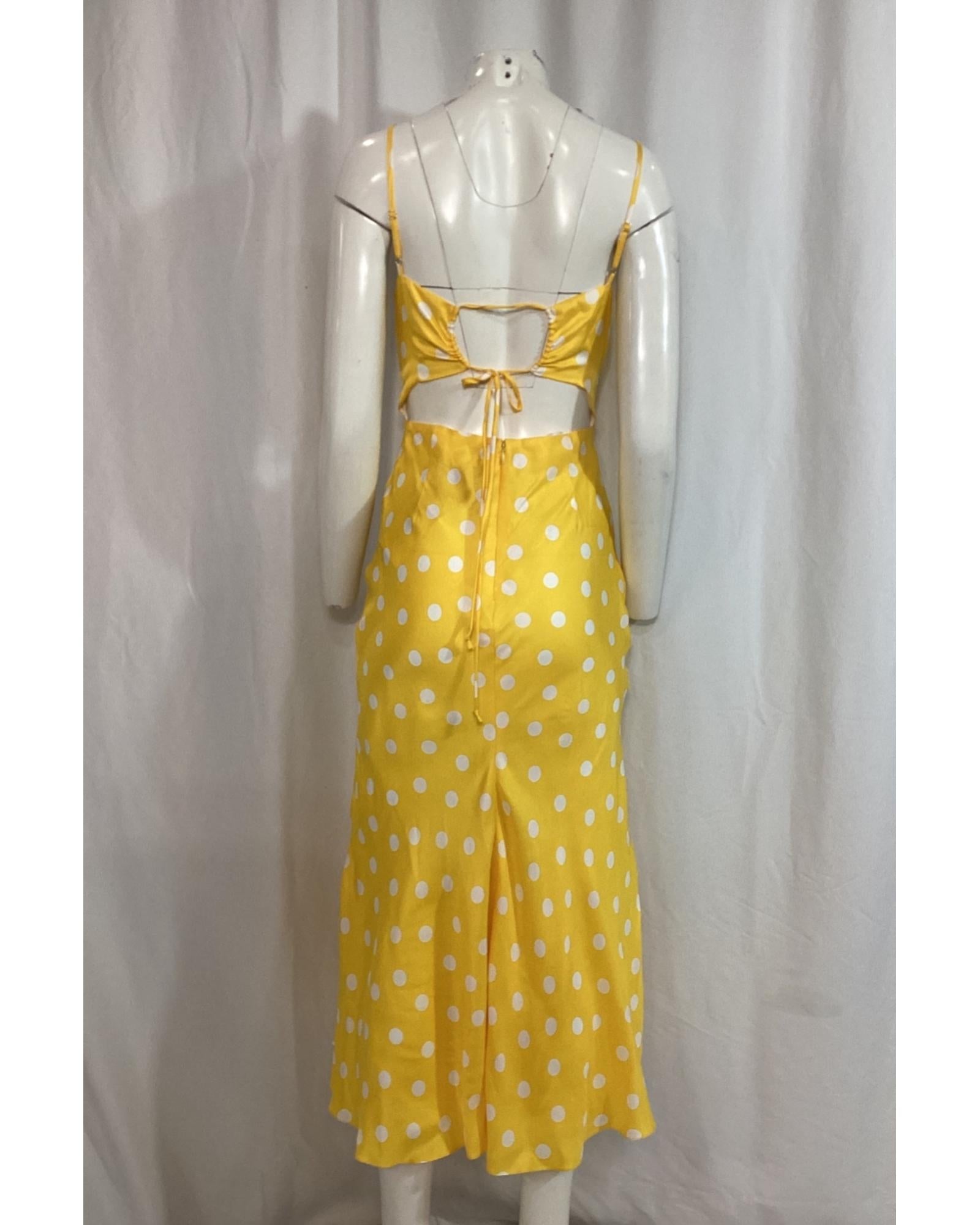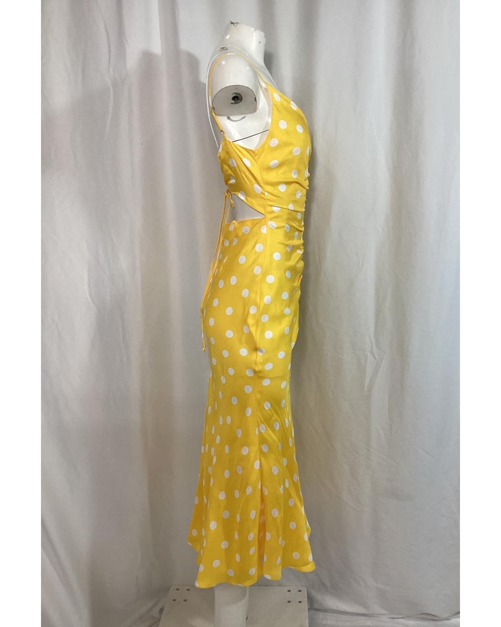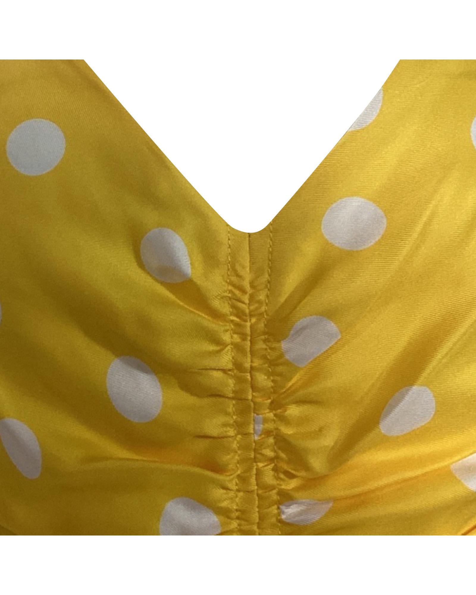 • Carolina Herrera Ruched Polka Dot Midi Sleeveless Dress