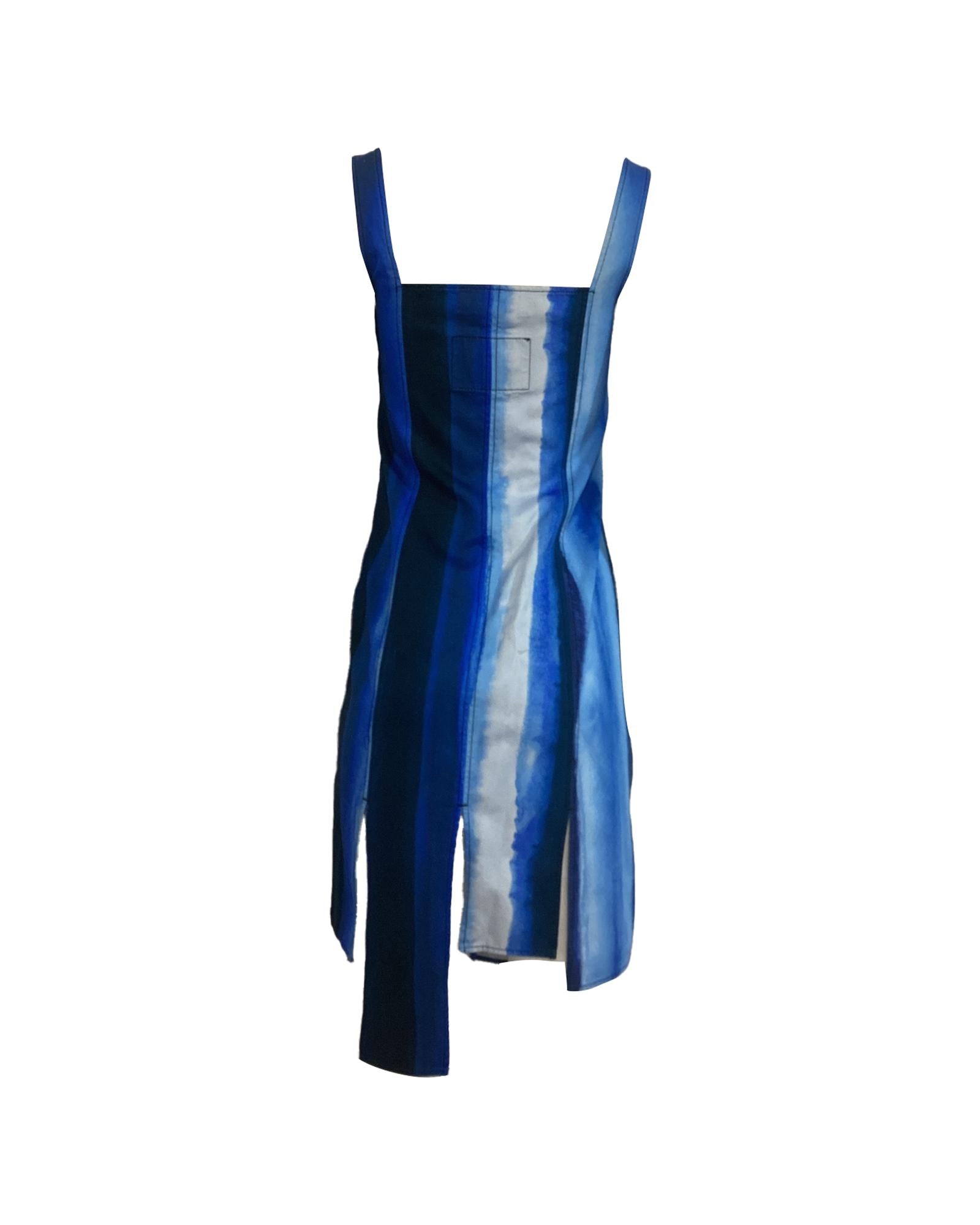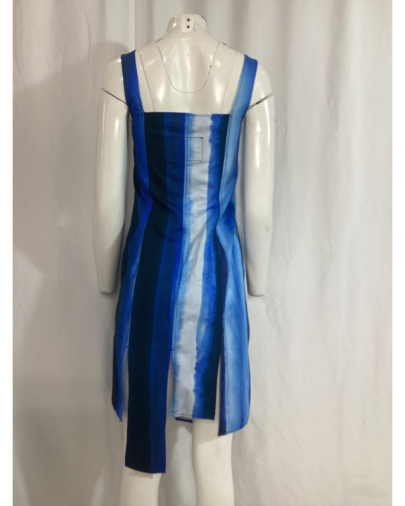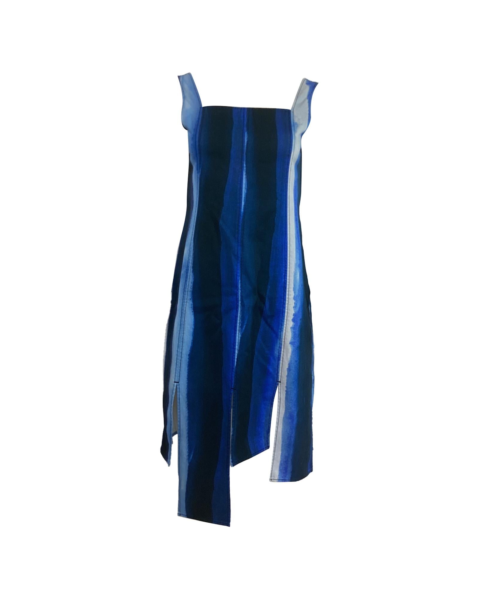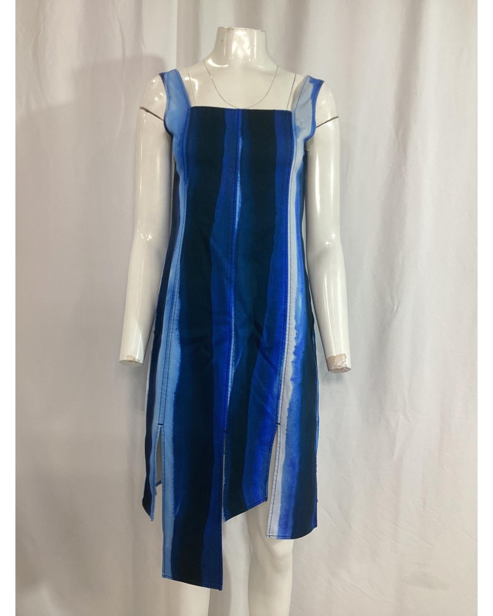 - Marni Painted Stripe Midi Asymmetrical Dress in Blue Cotton
