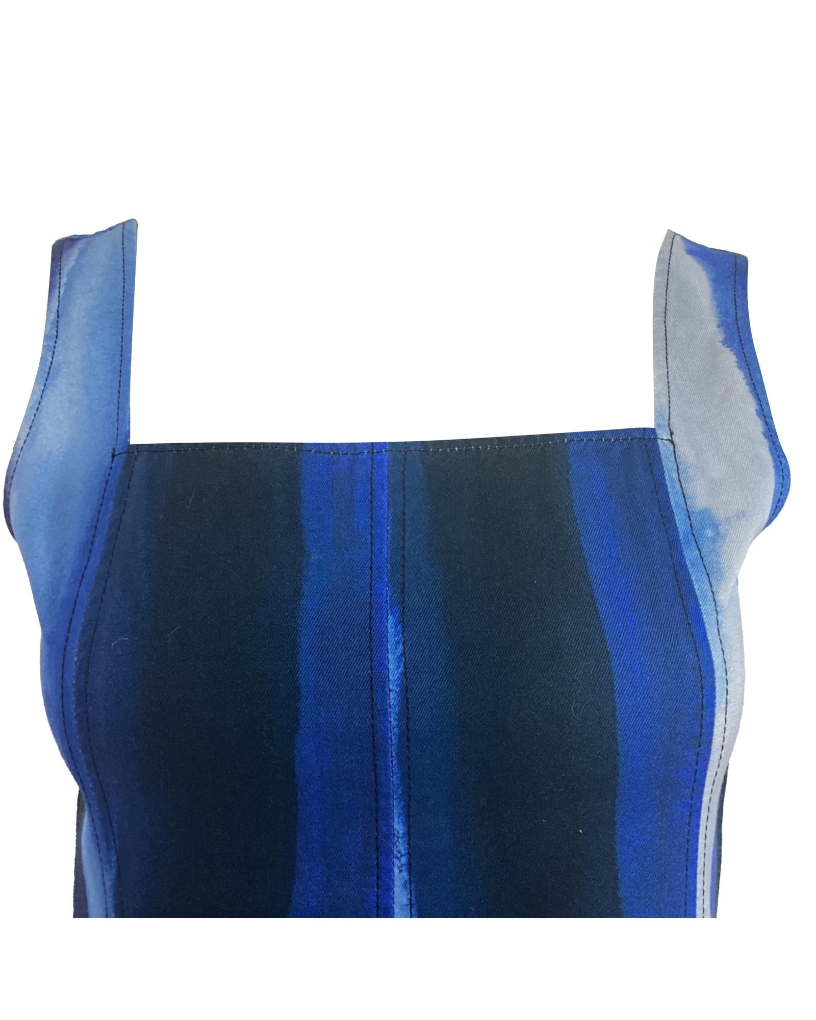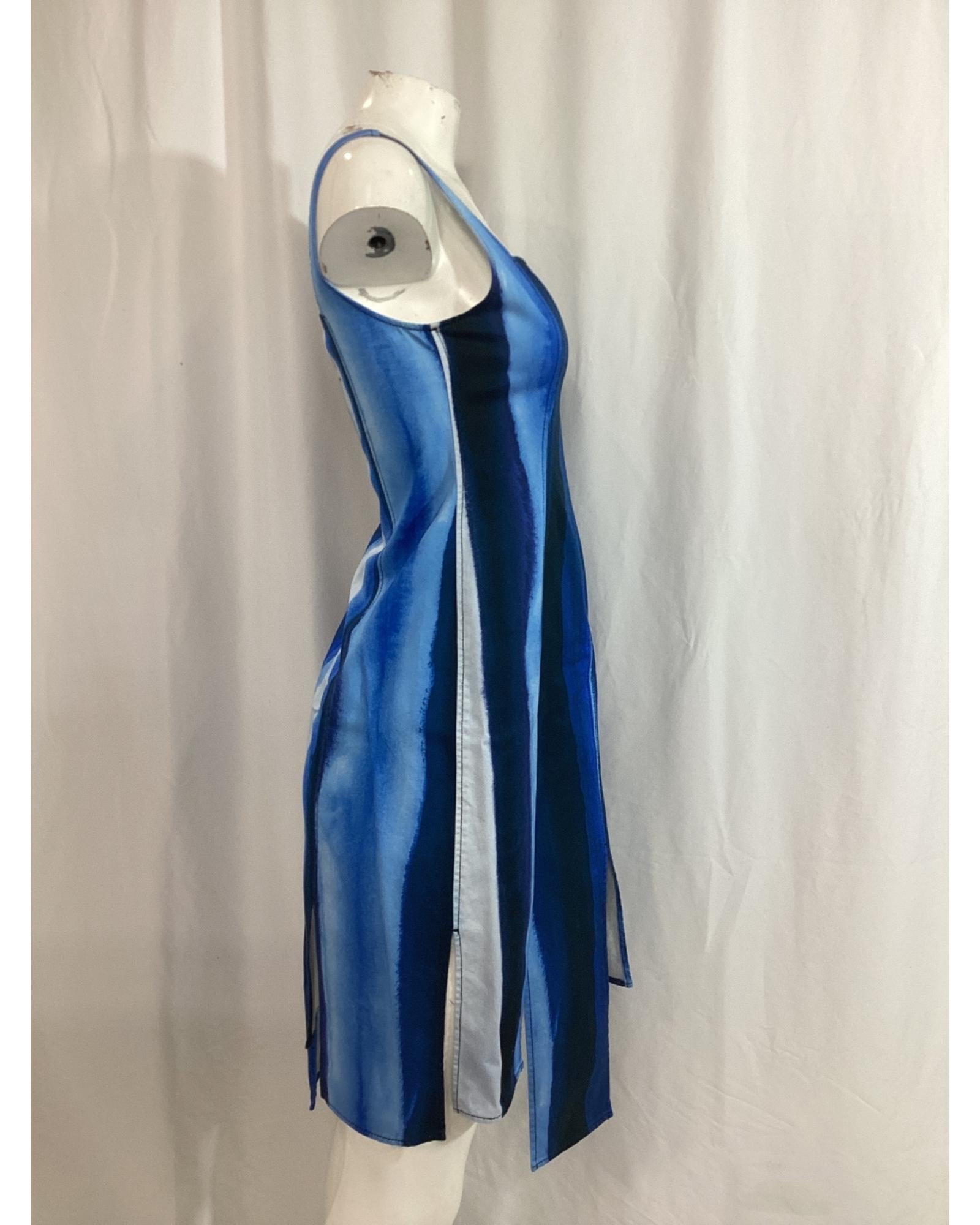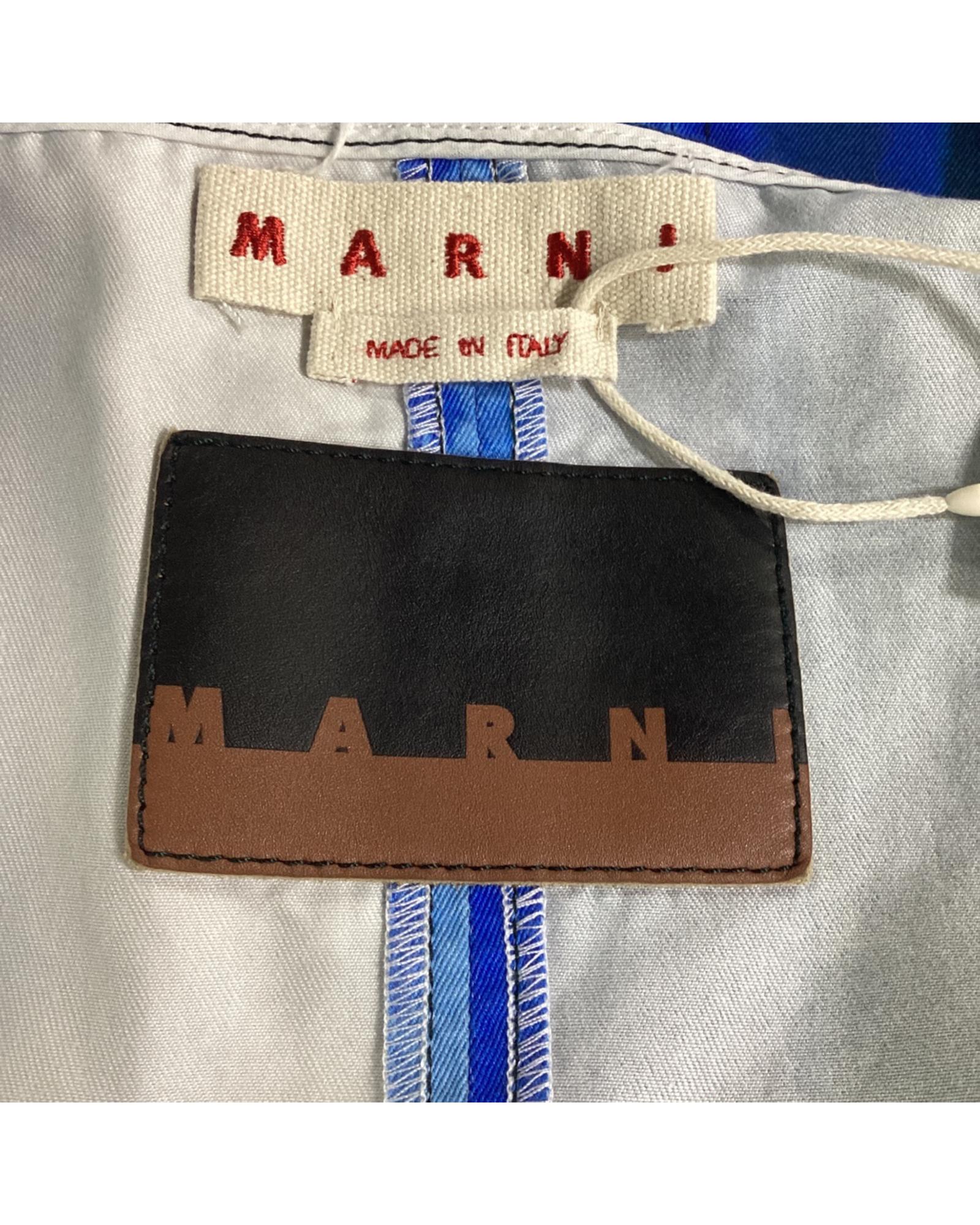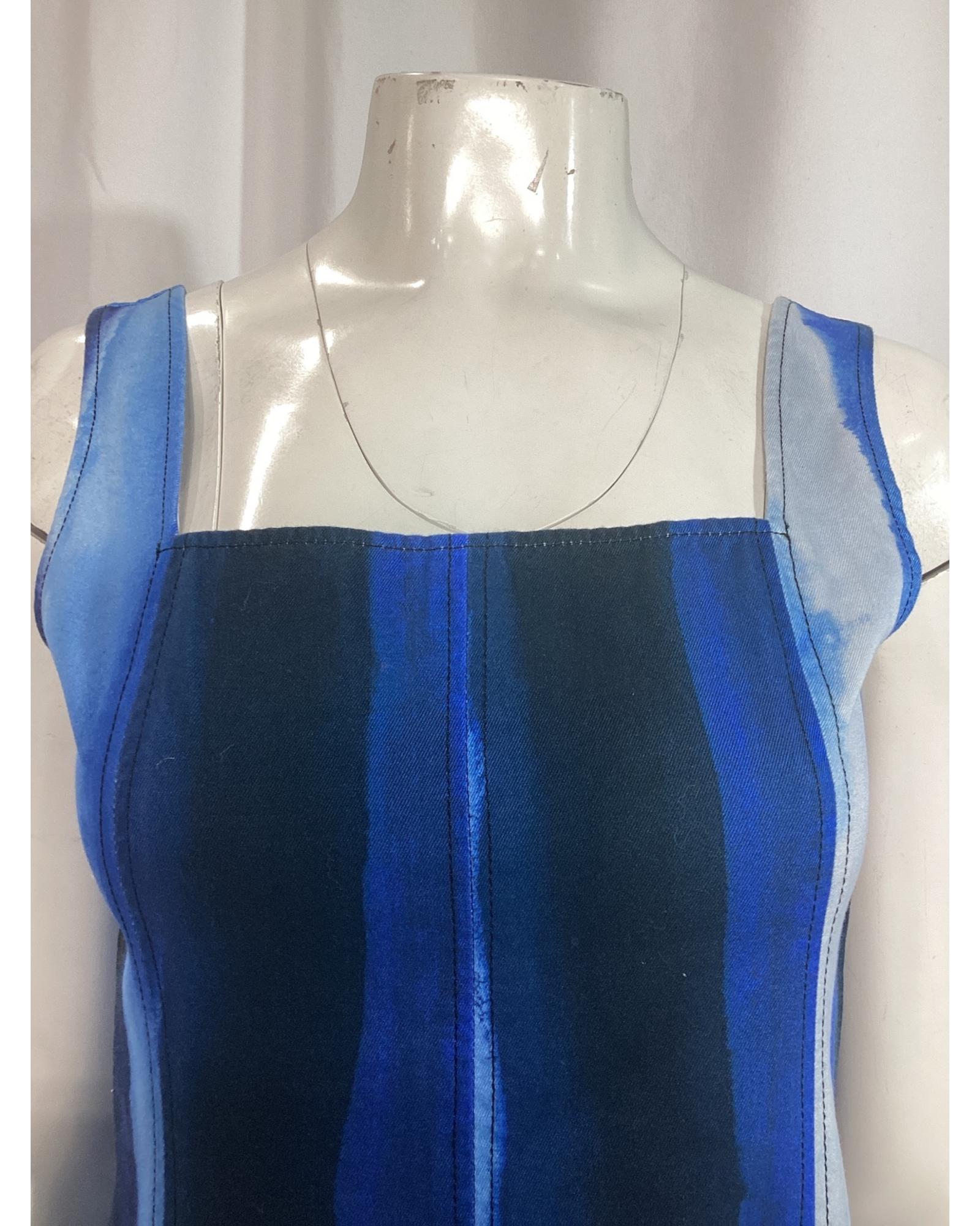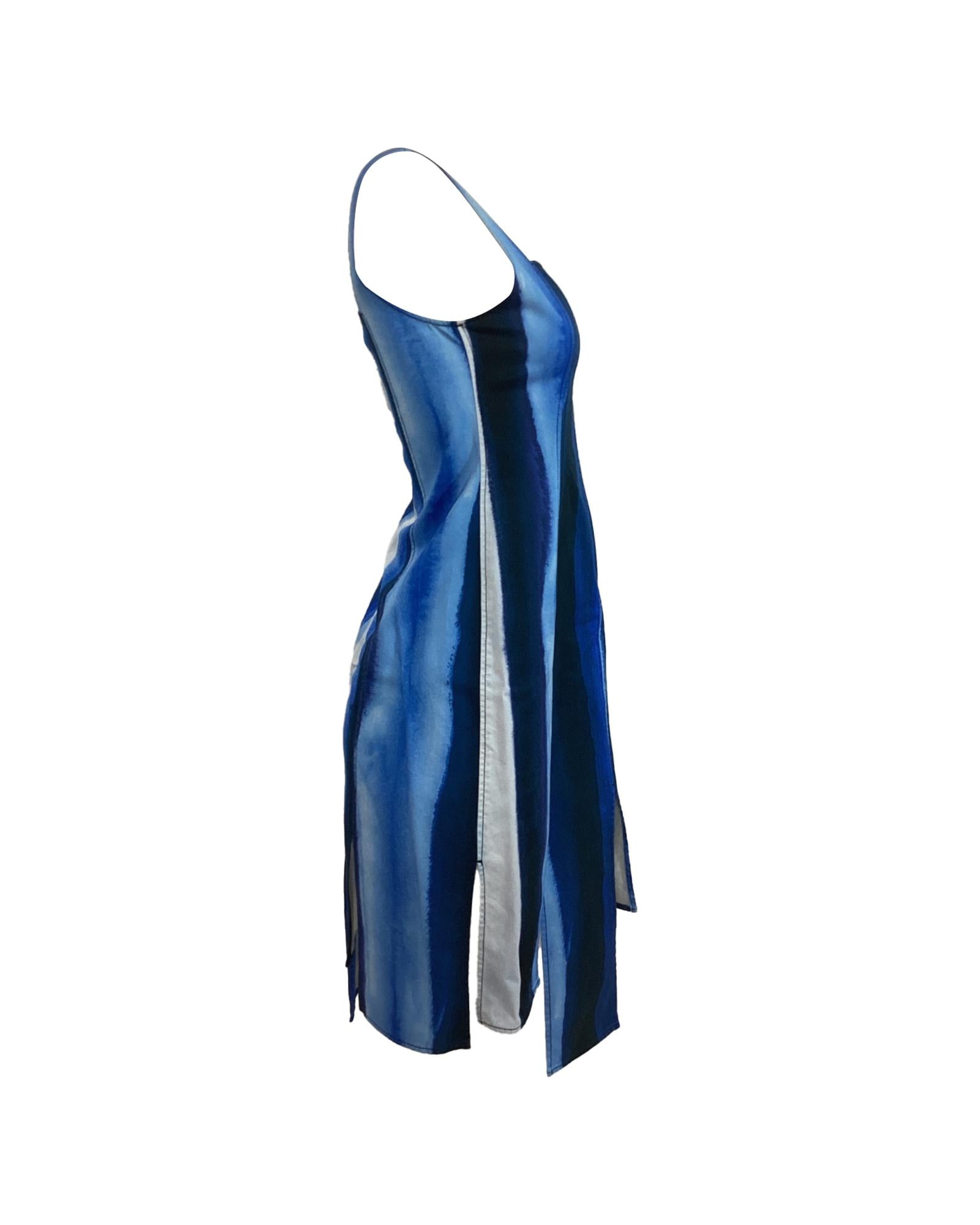 - Marni Painted Stripe Midi Asymmetrical Dress in Blue Cotton