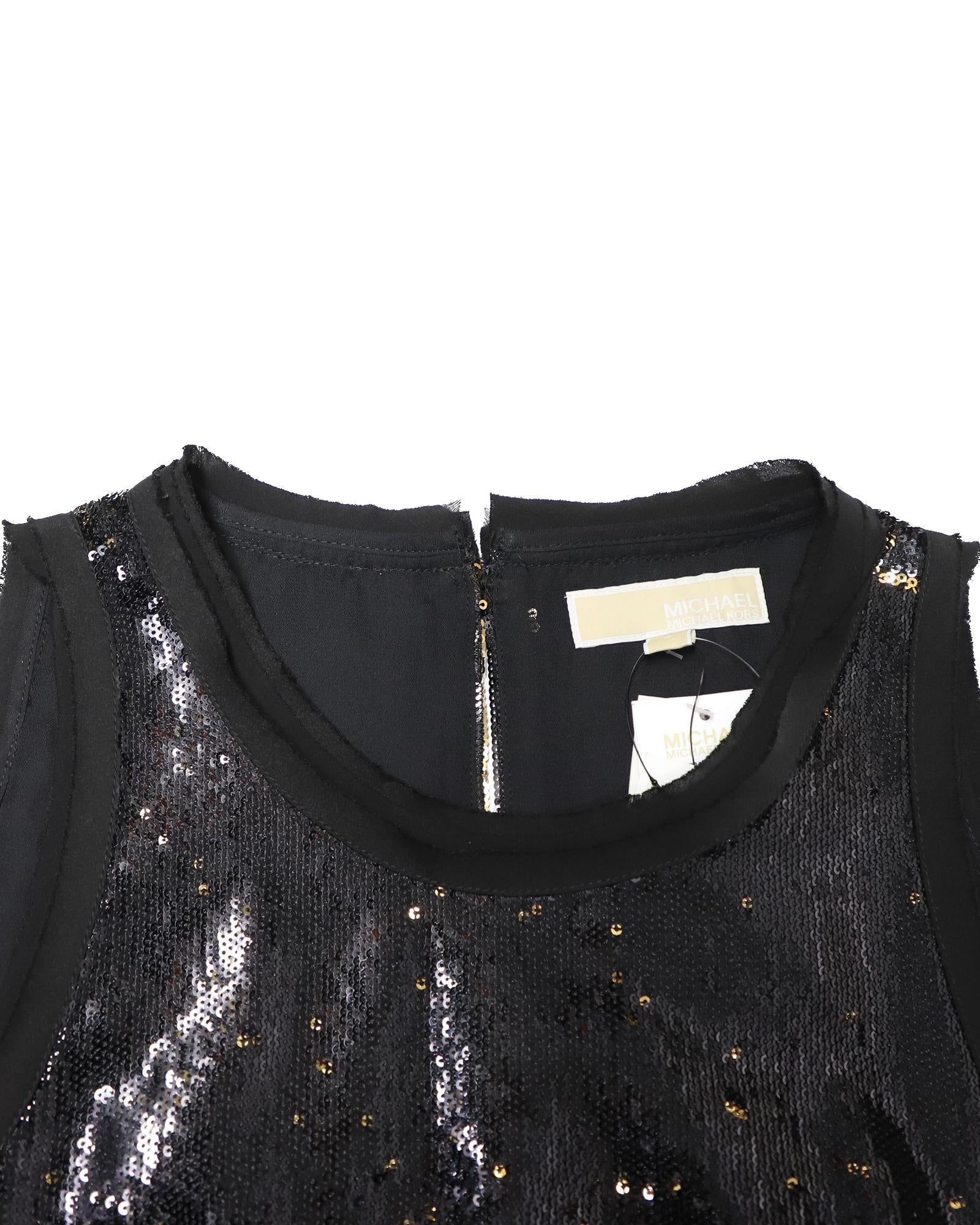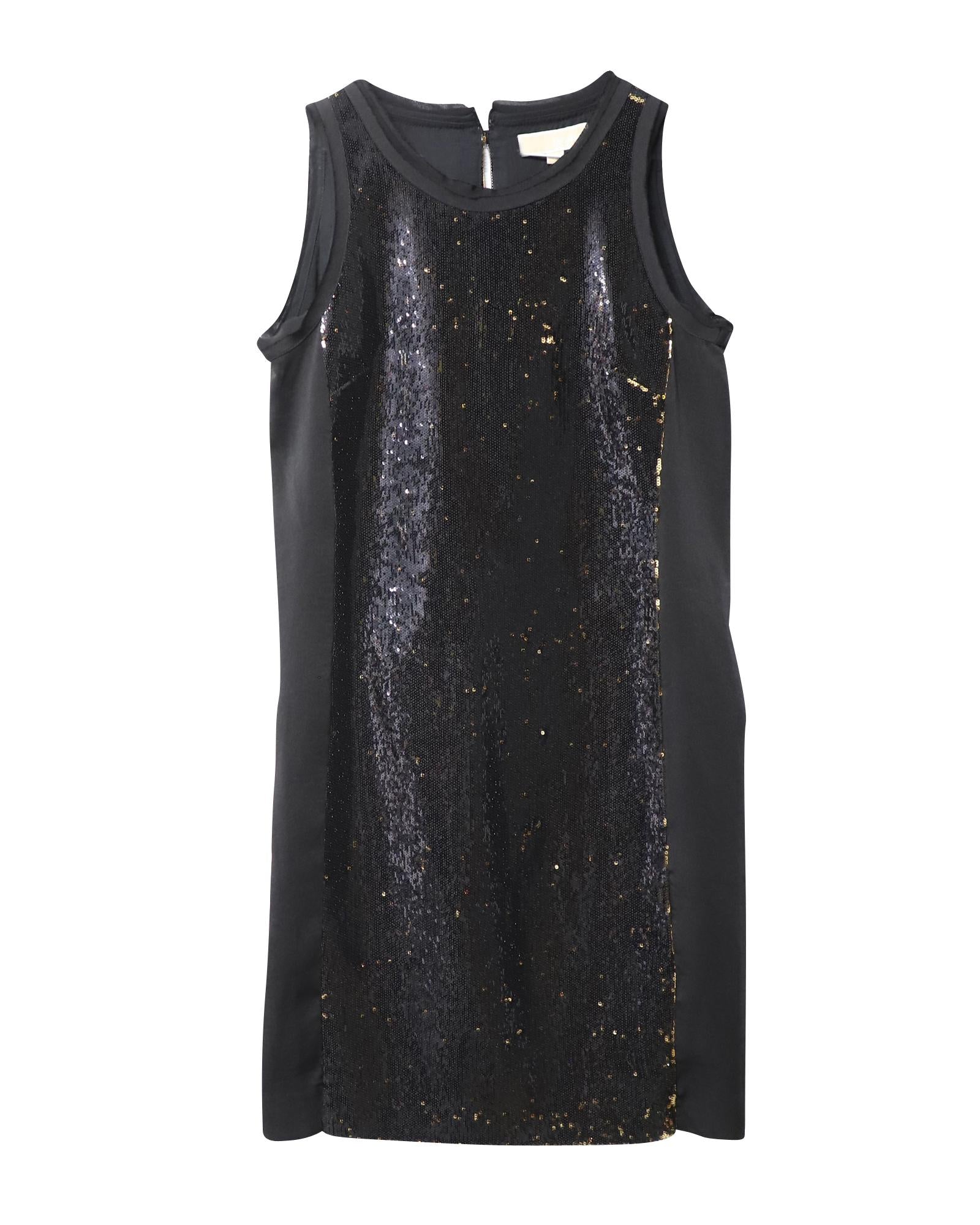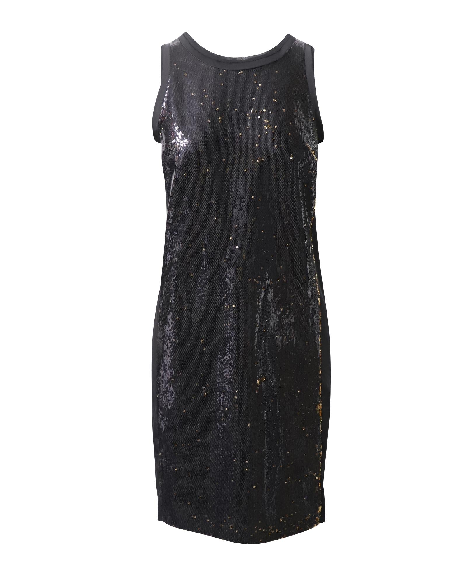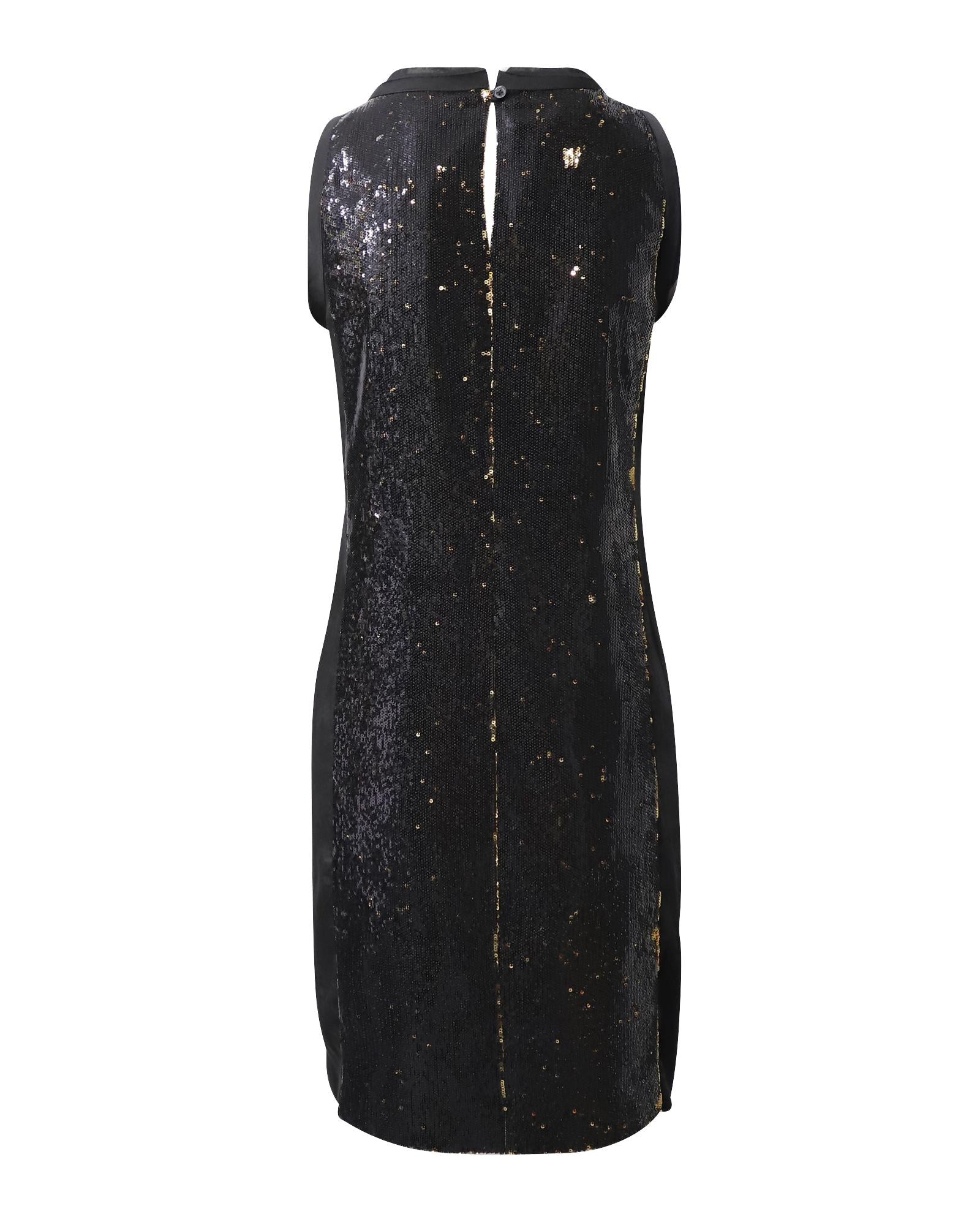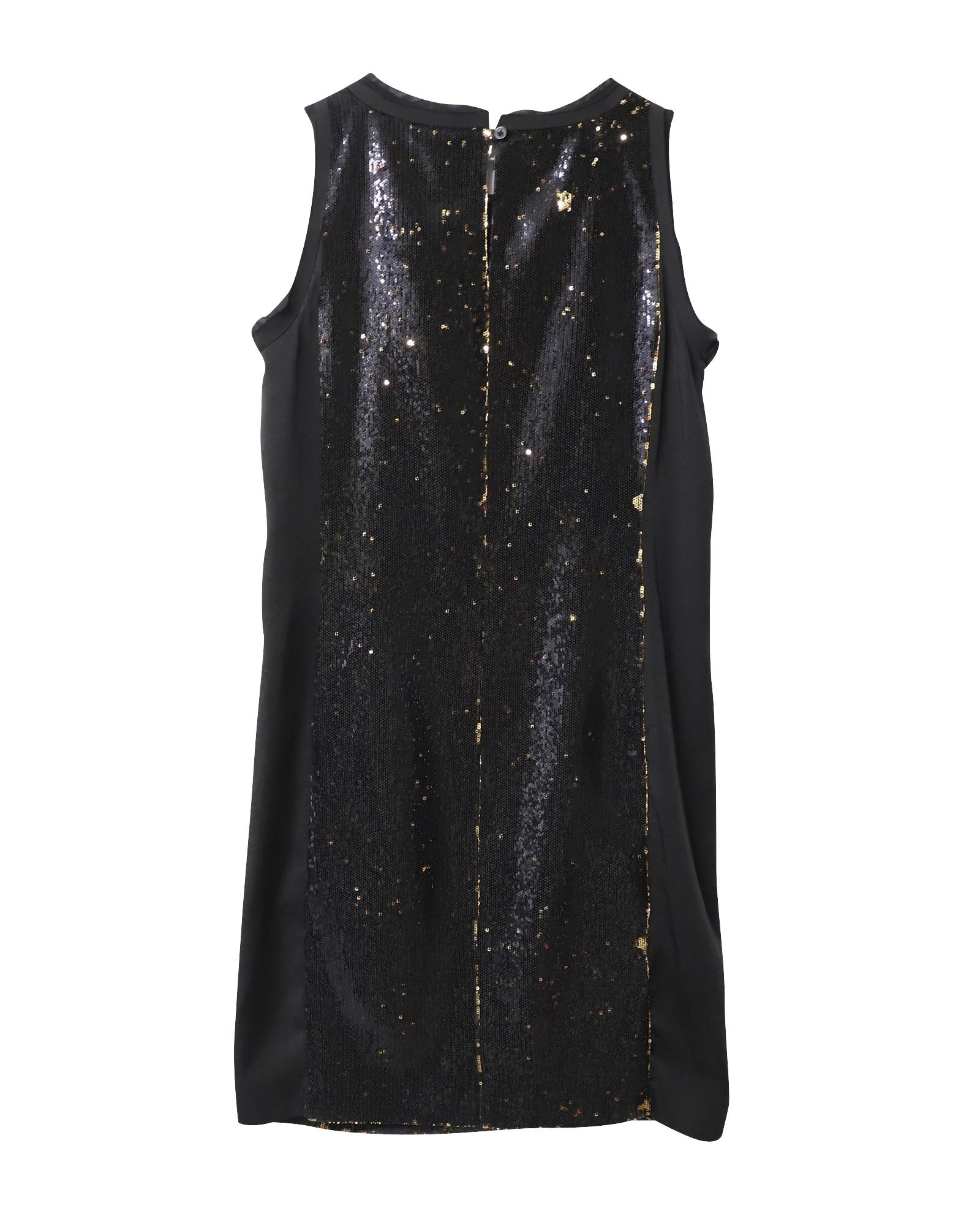 • Black polyester fabric with reversible black and gold sequin embellishments