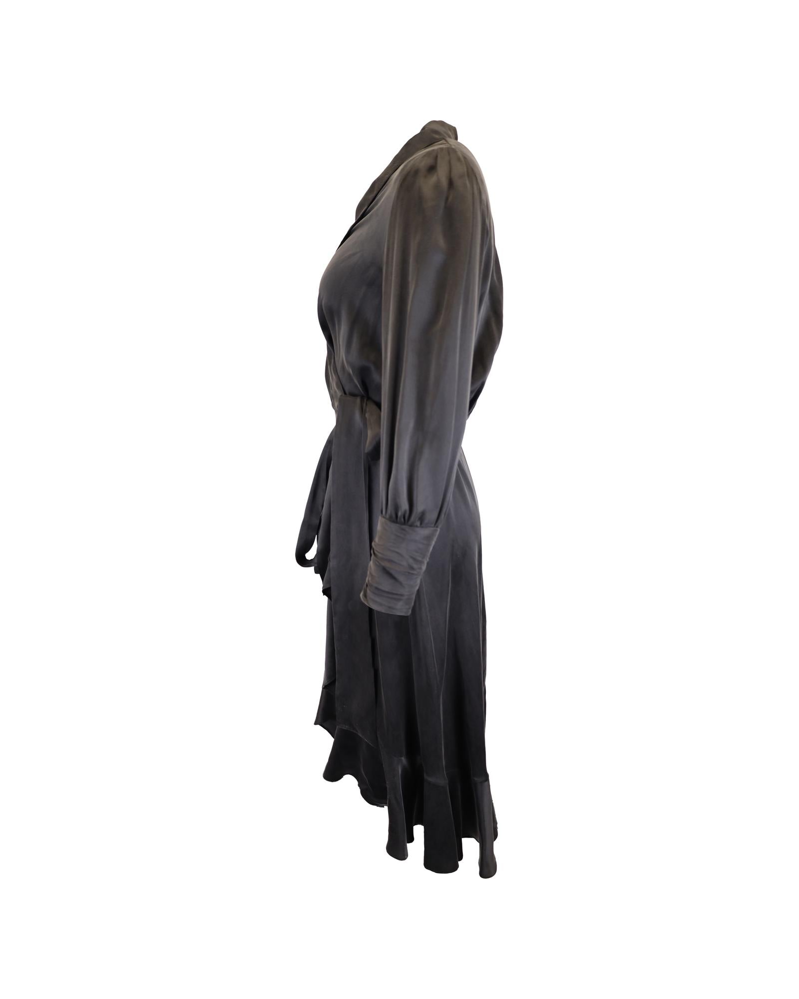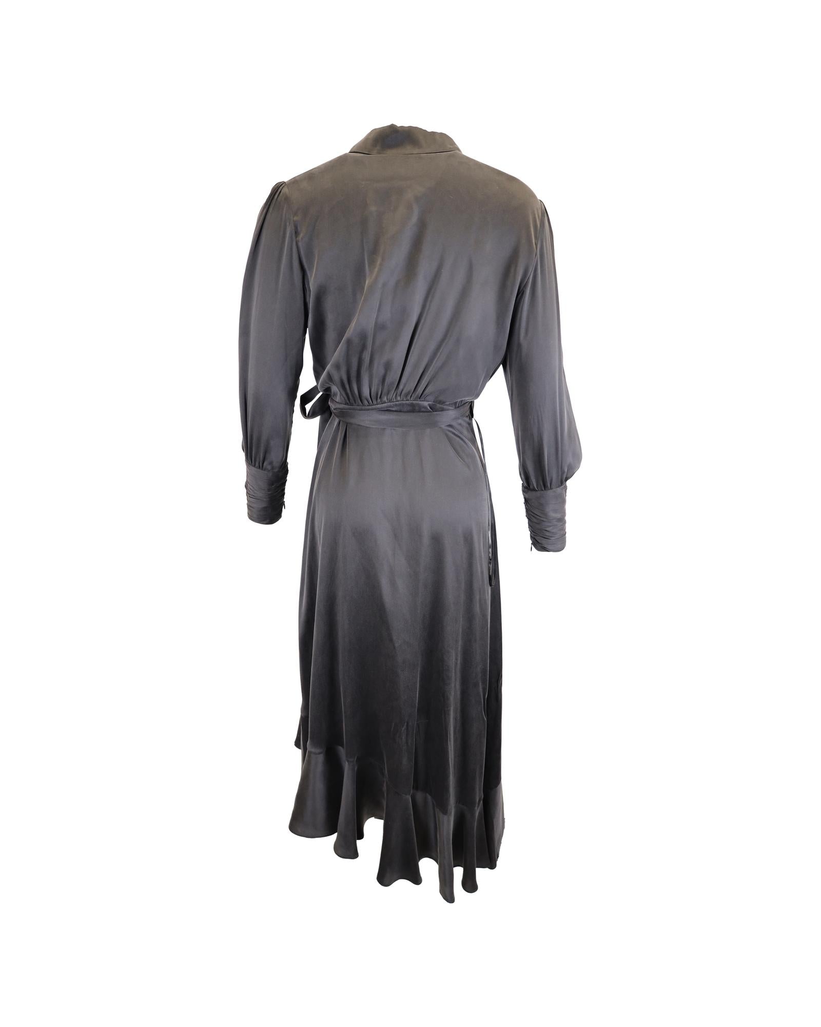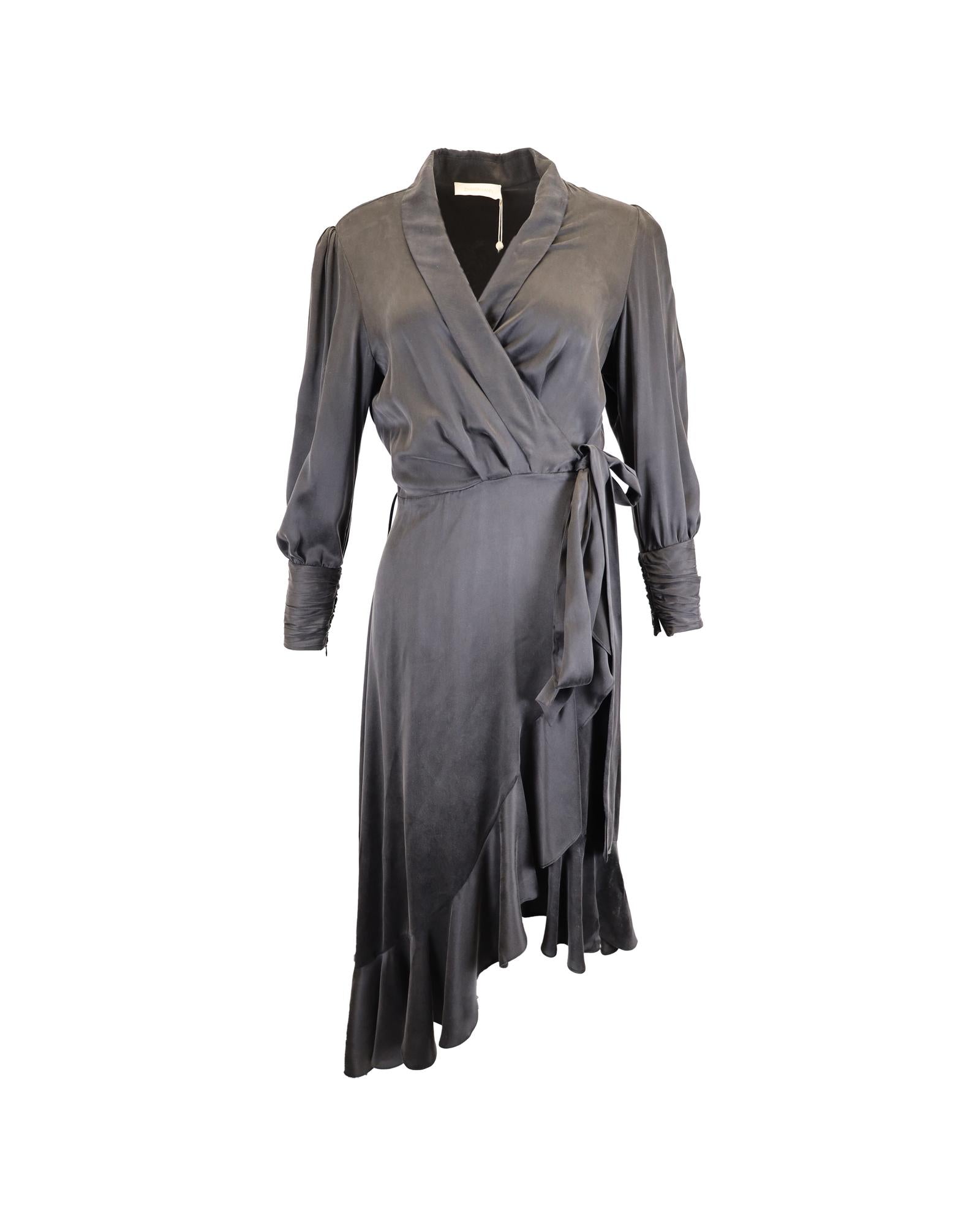 • Zimmermann Midi Asymmetrical Wrap Dress in Black Silk