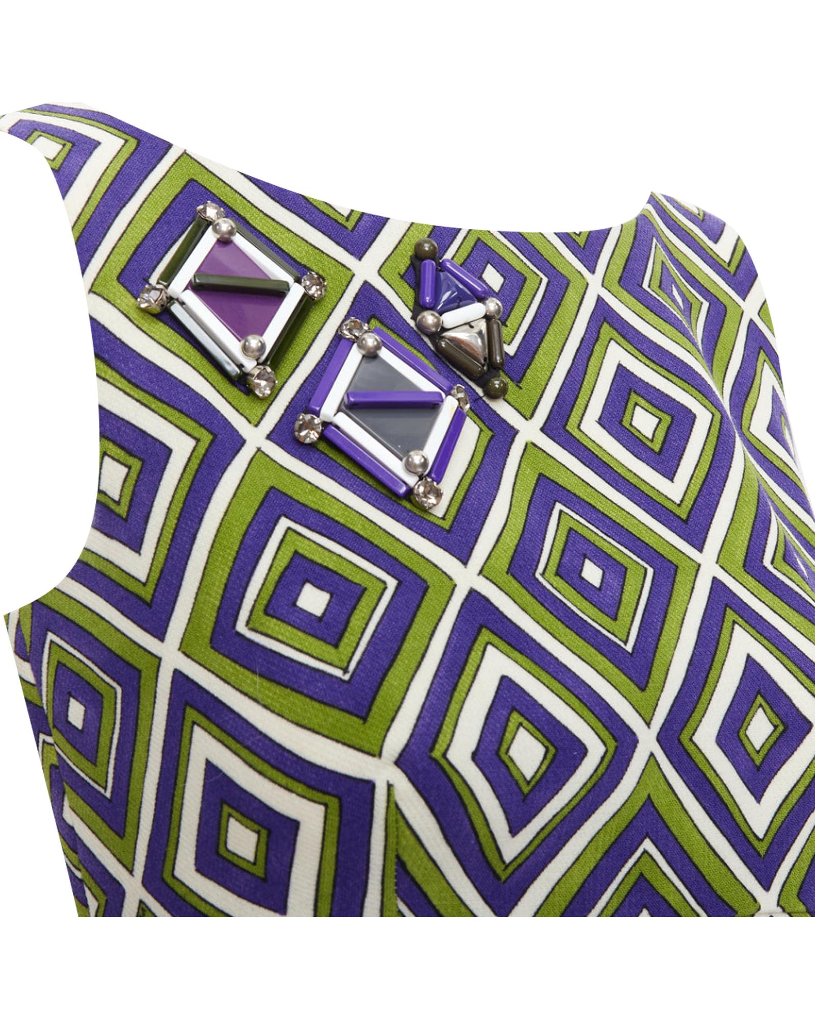Pre-owned Printed Sleeveless Dress with Embellishments