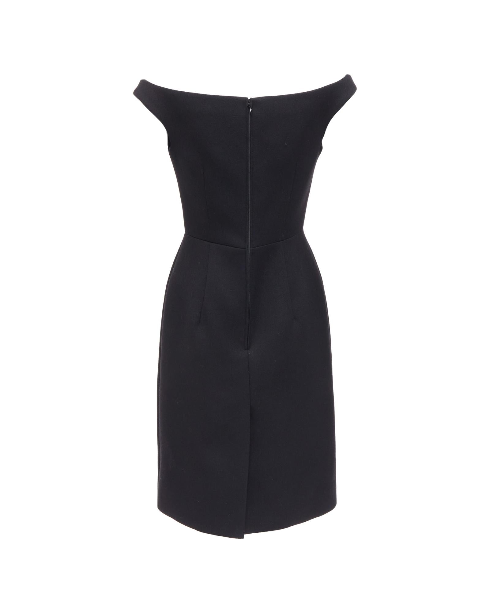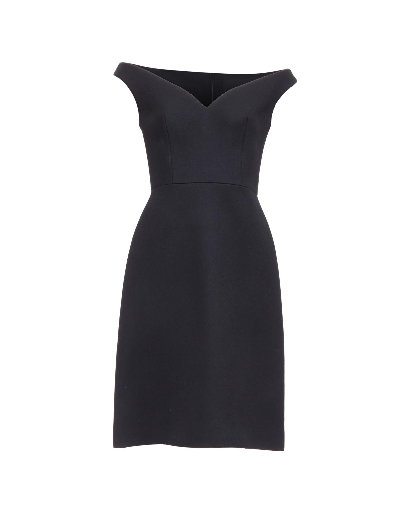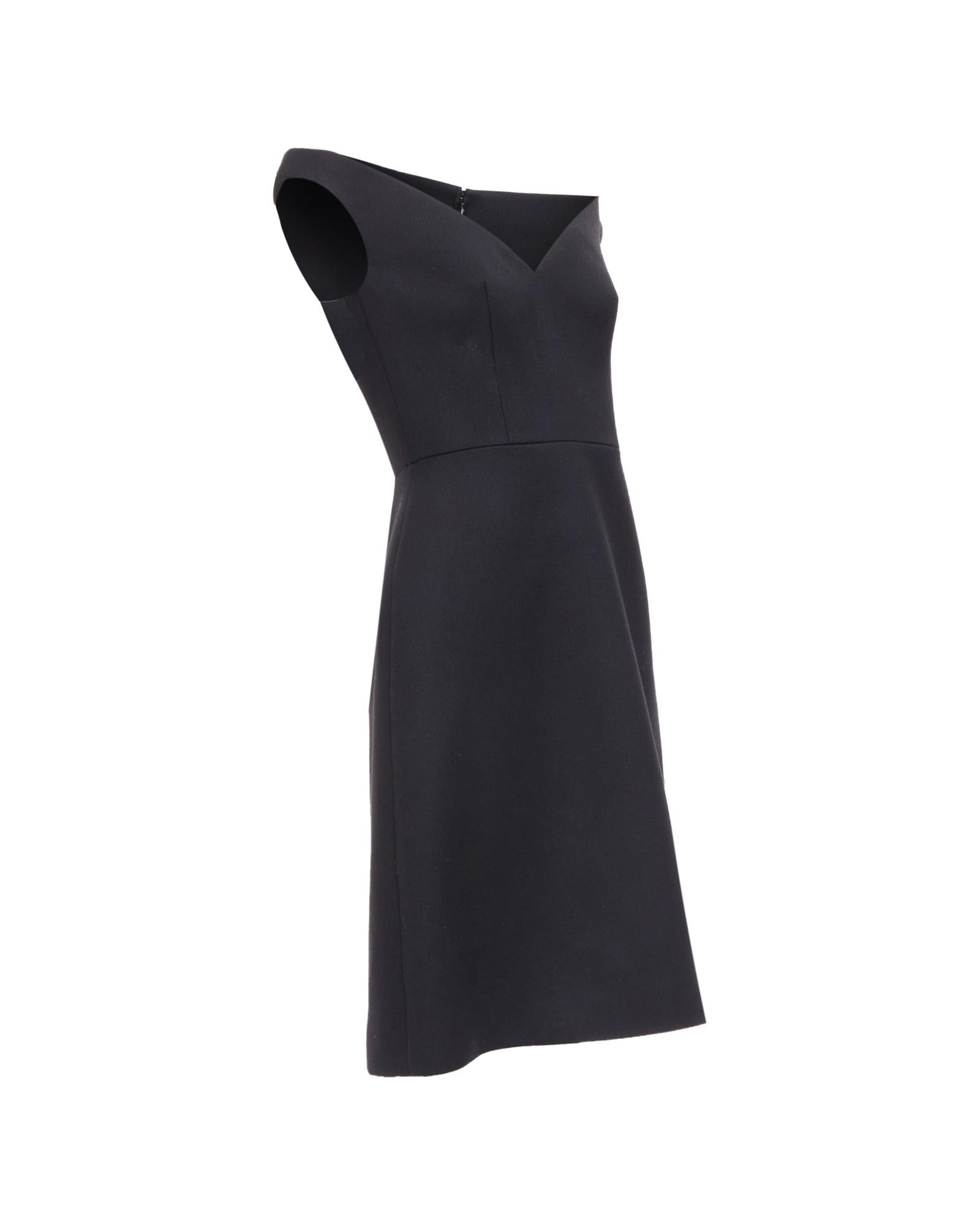 Pre-owned Elegant Fitted Dress with V-Neck and Off-the-Shoulder Design
