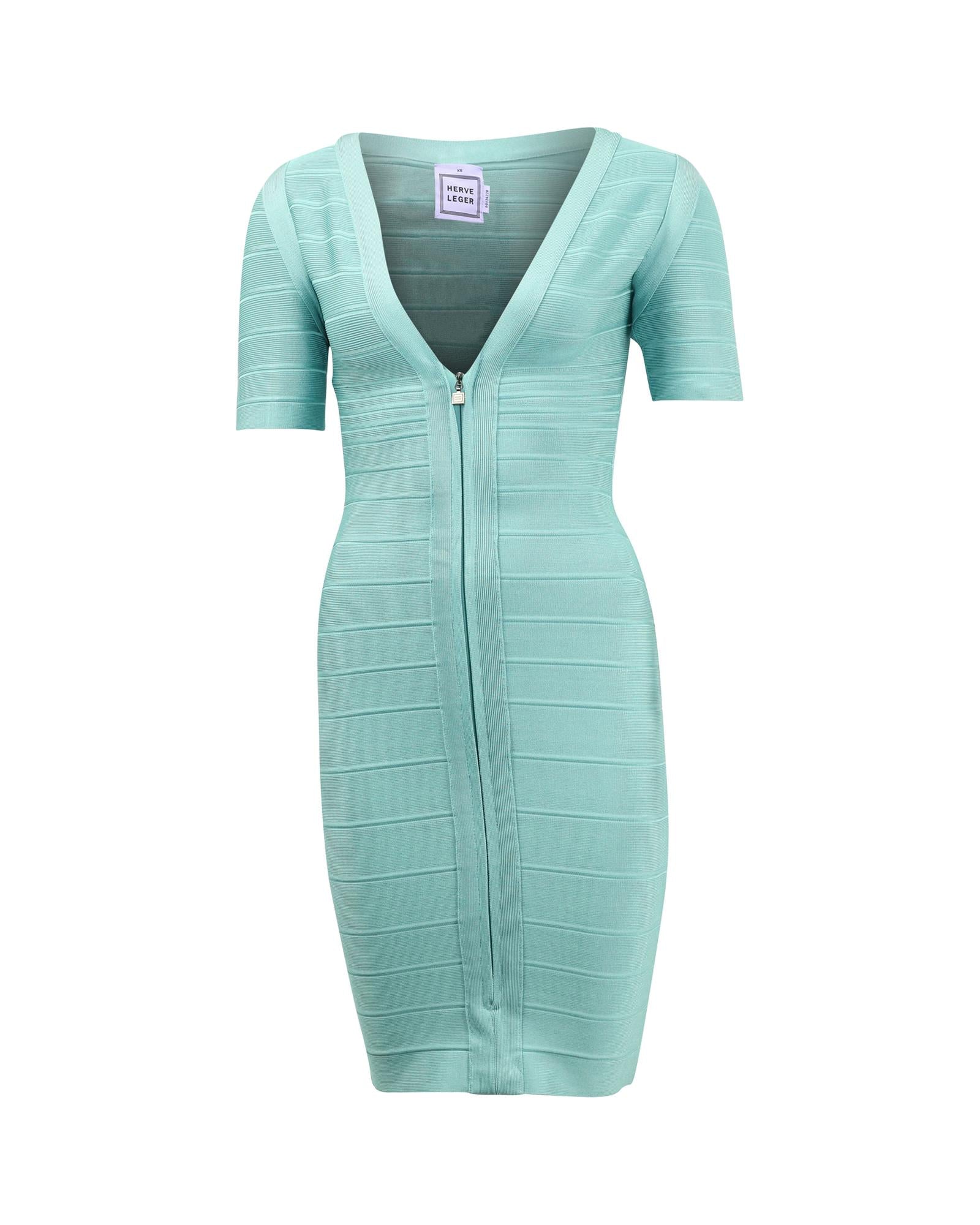 Blue Bandage Mini Dress in Rayon Blend Fabric
