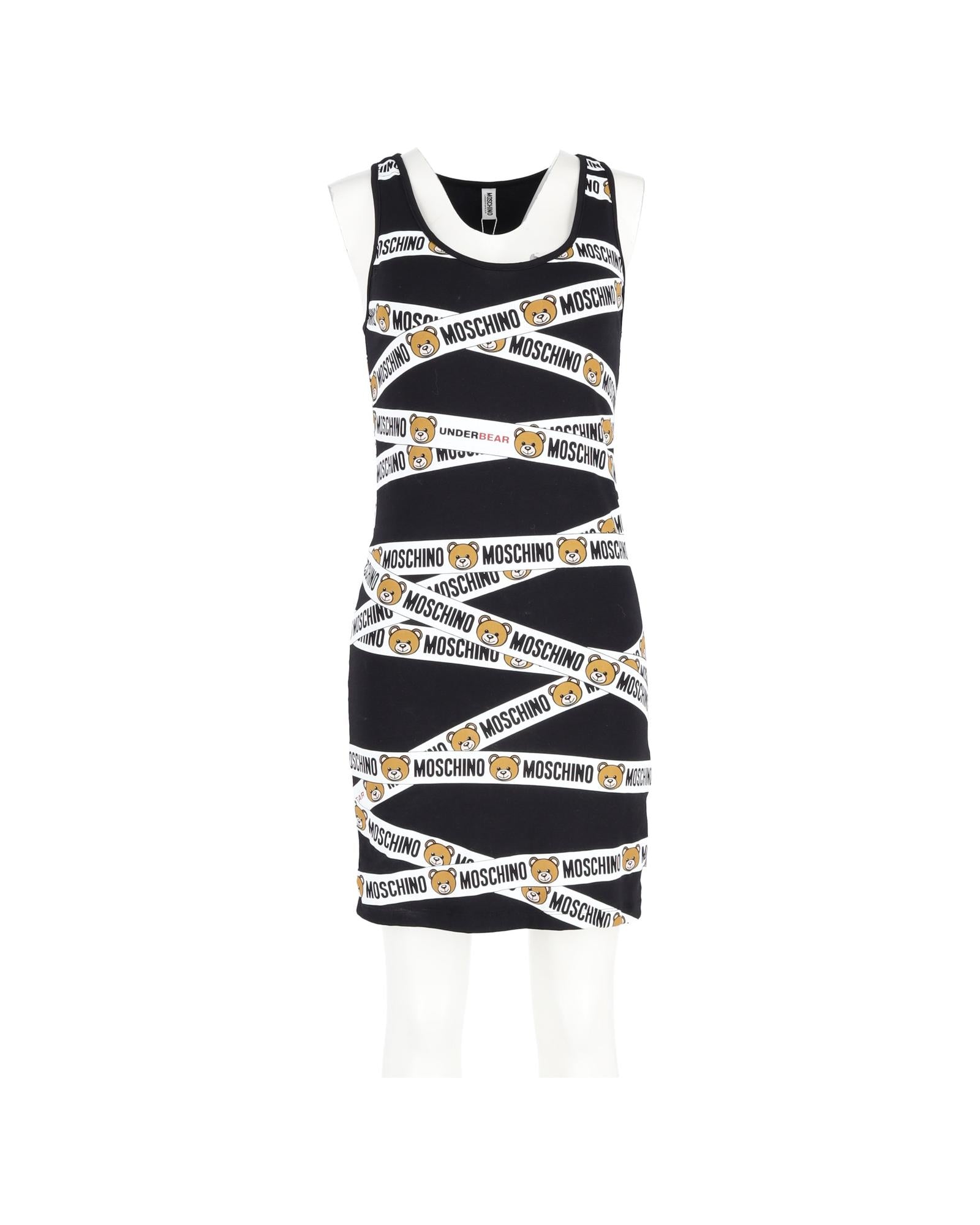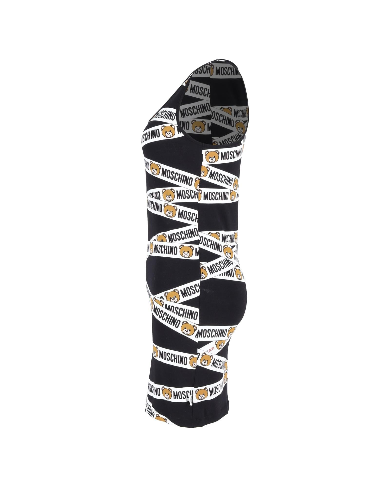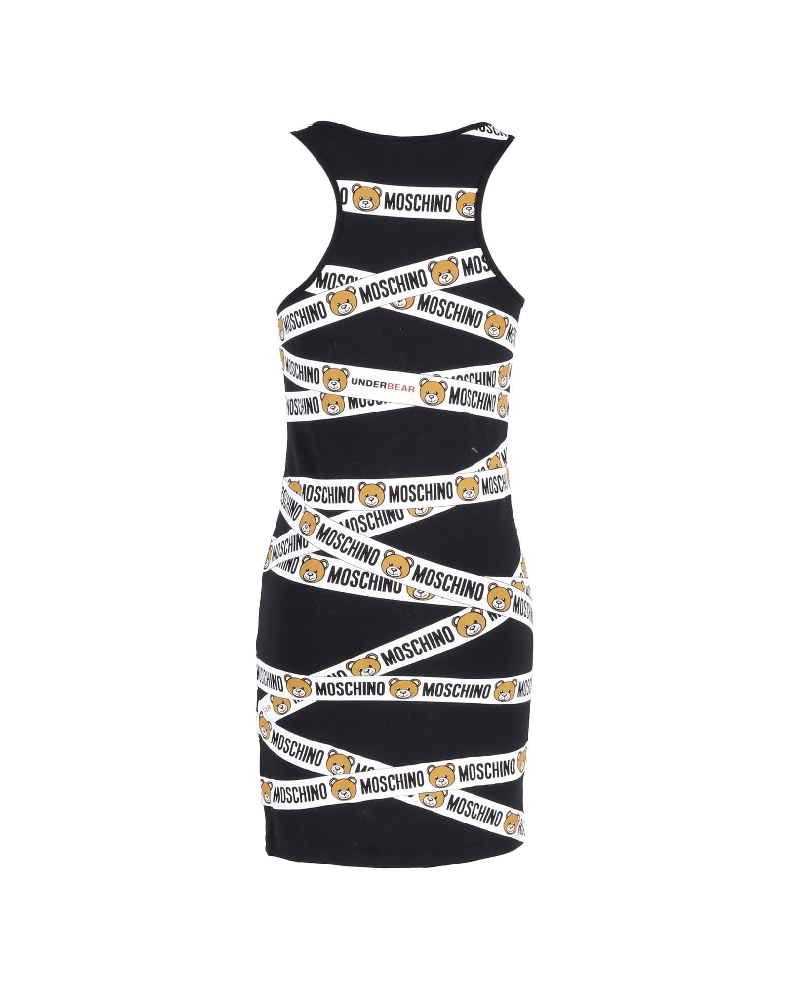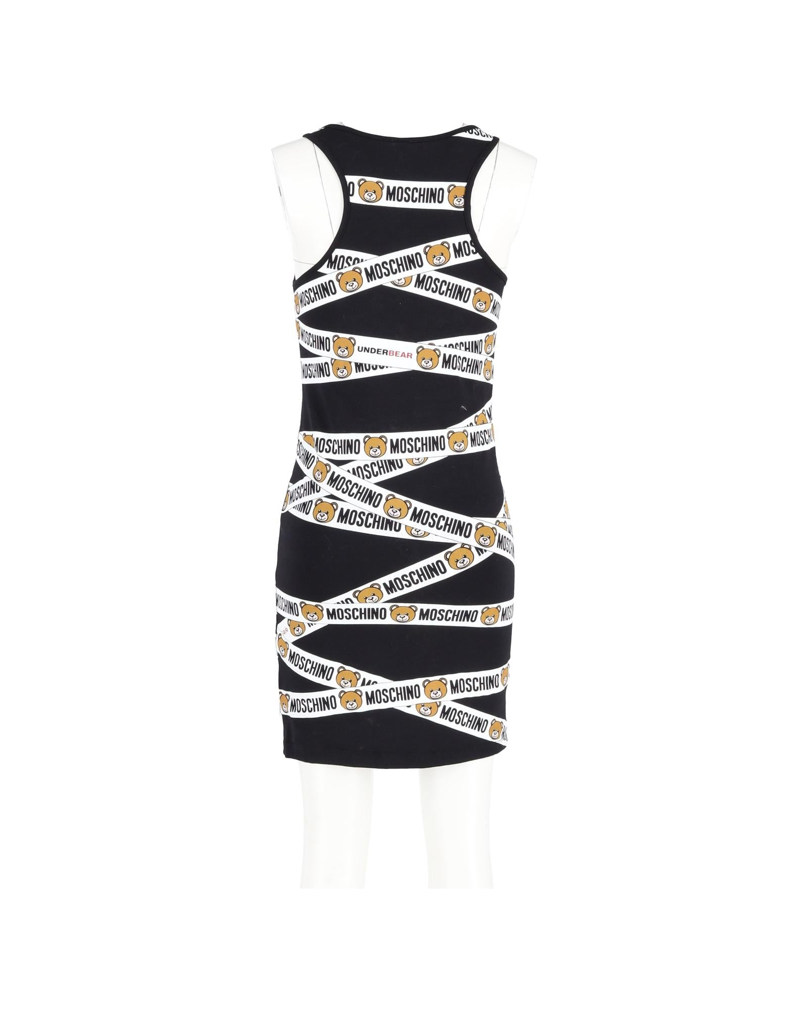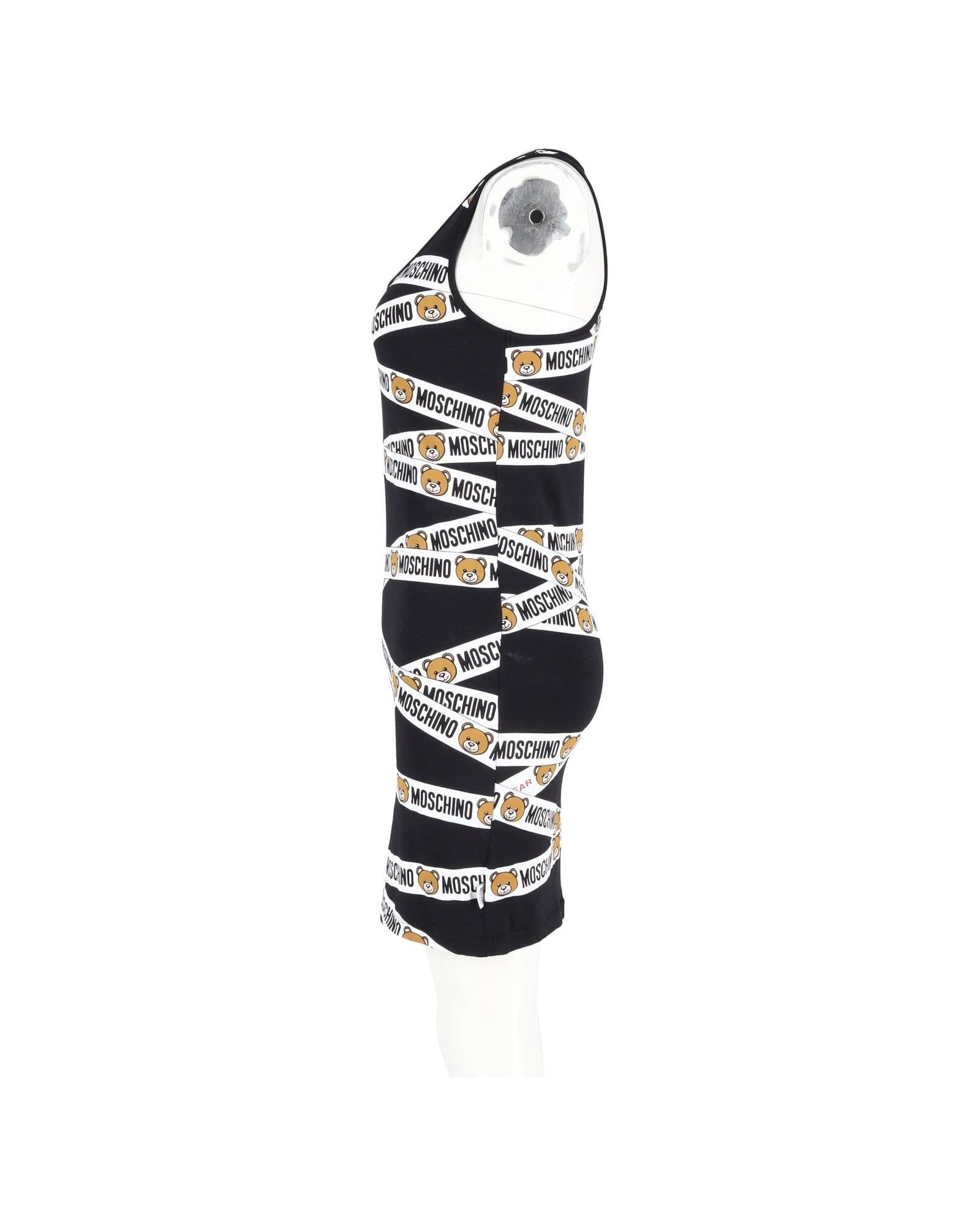 - Moschino Bear Logo Tape Fitted Mini Dress in Black Cotton