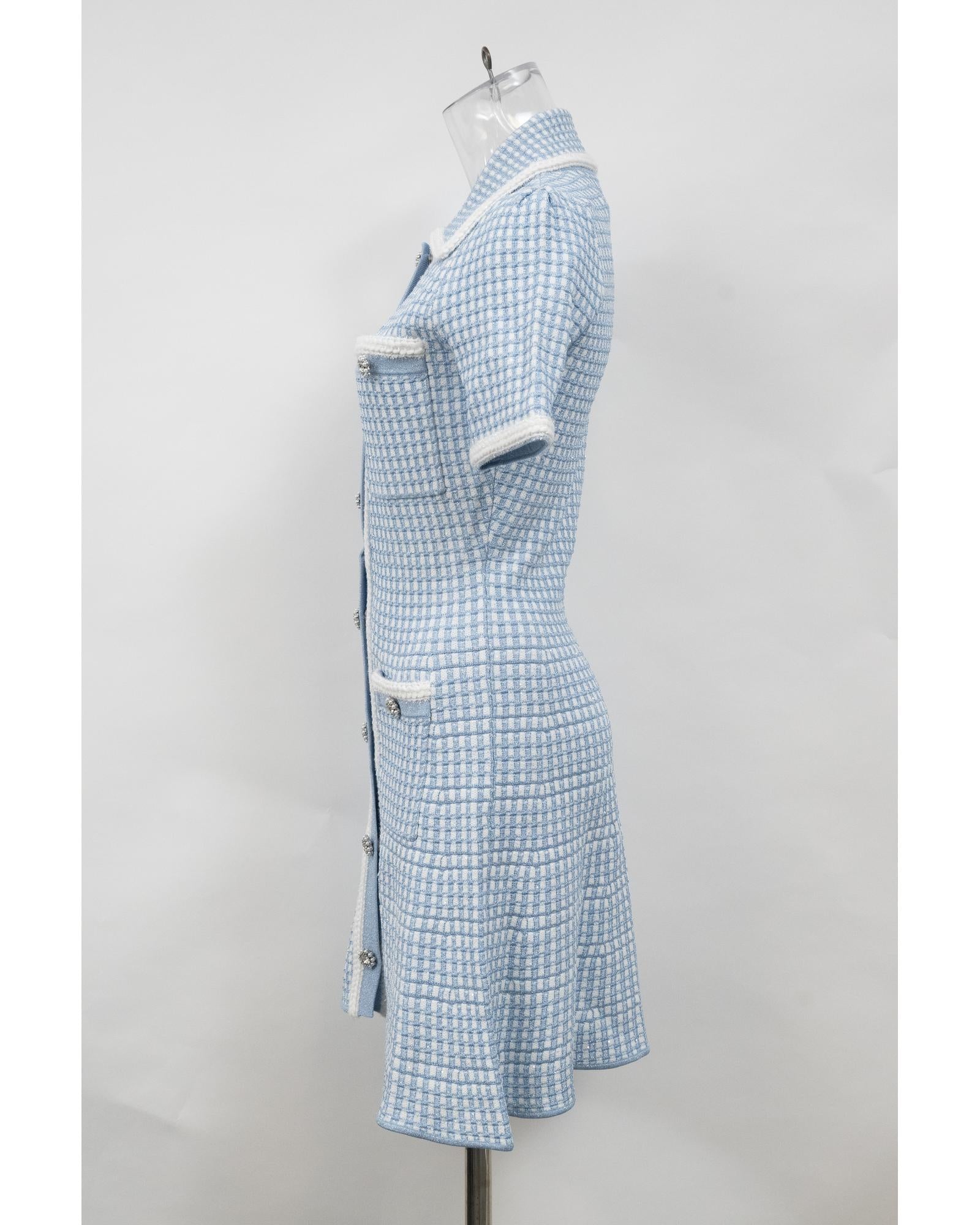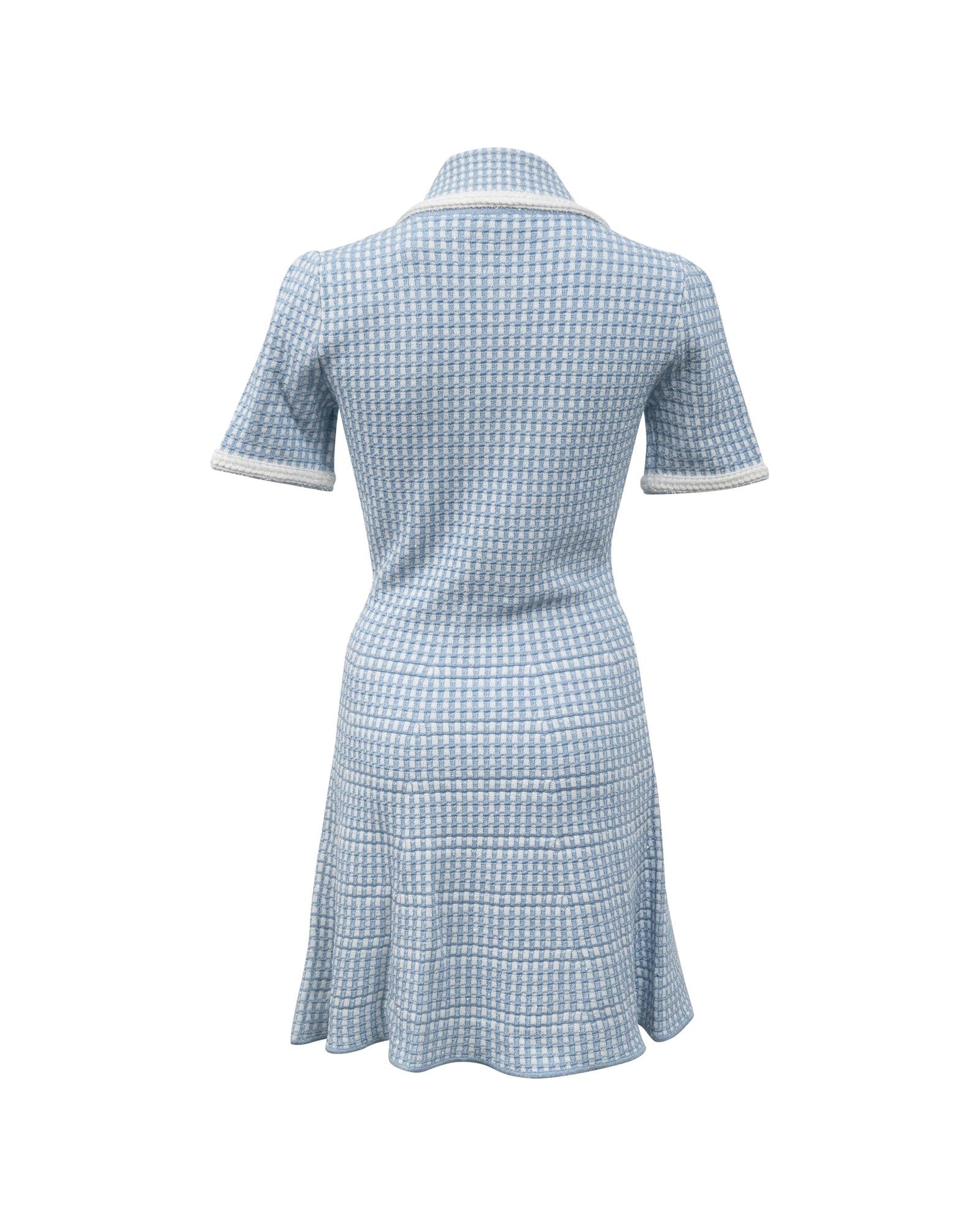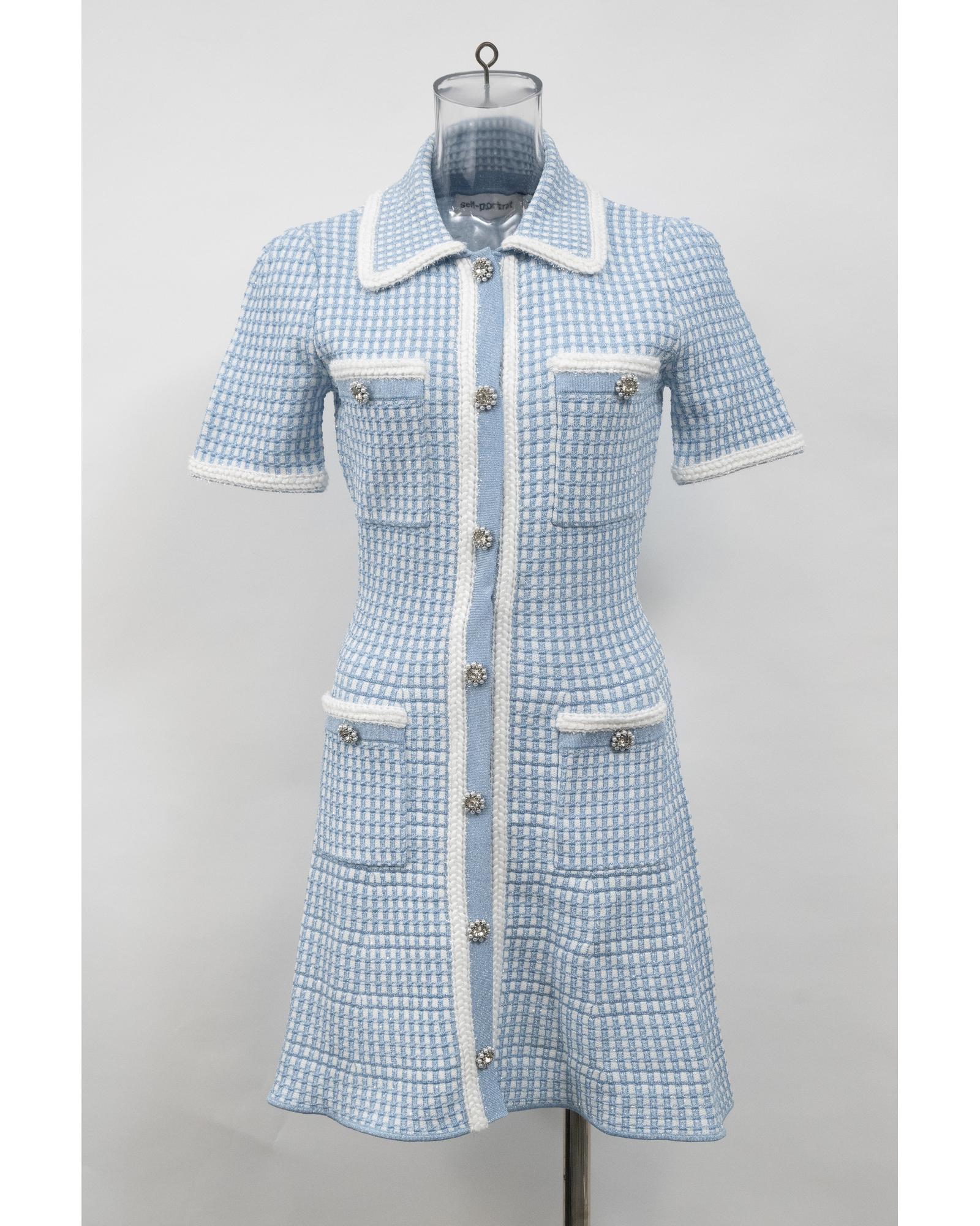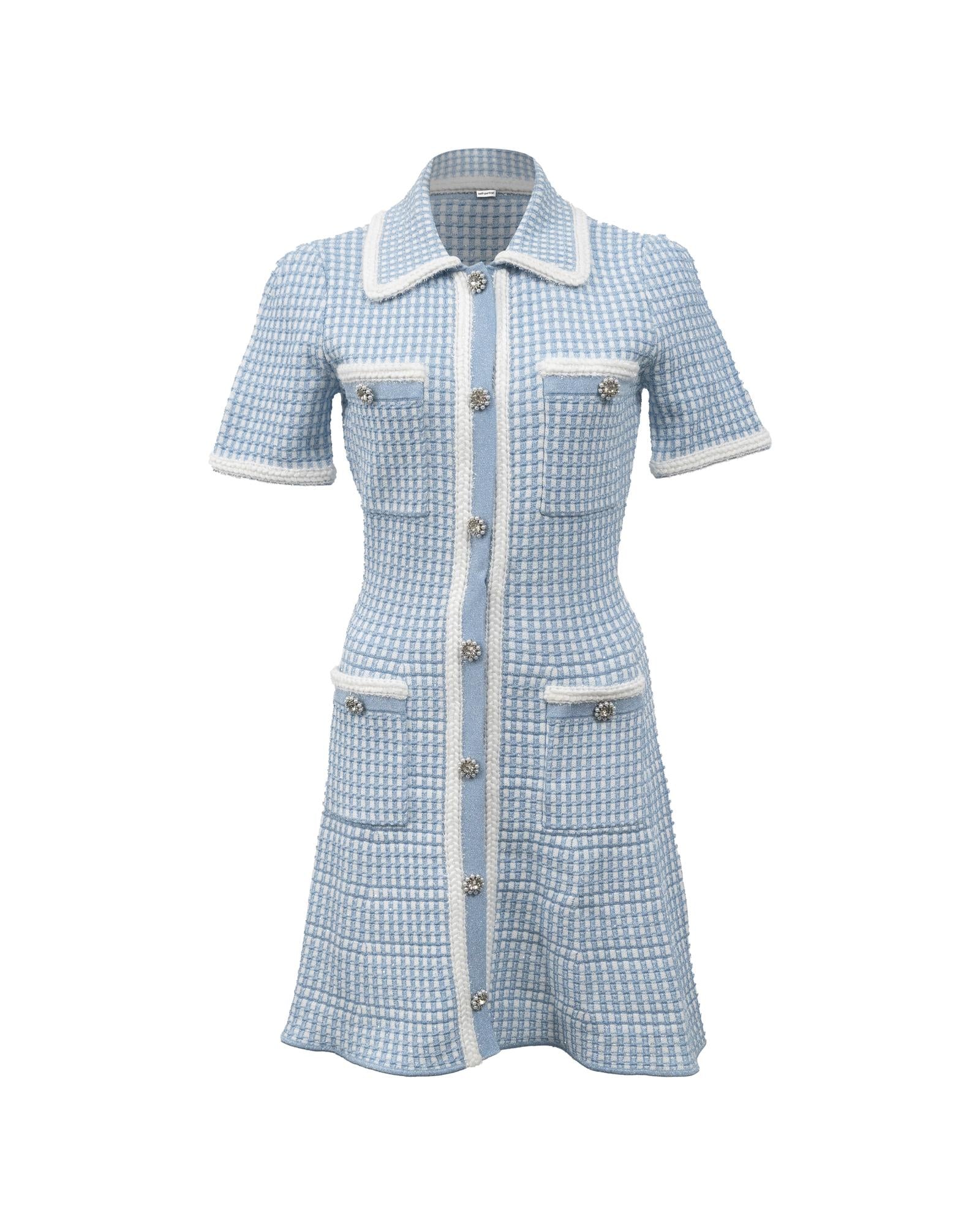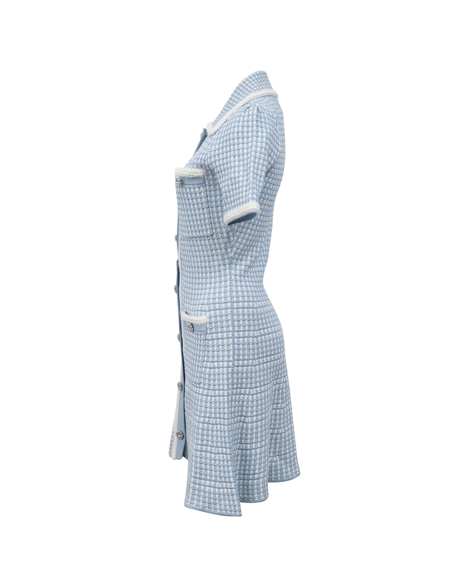 • Embellished Metallic Jacquard Mini Dress in Light Blue Wool