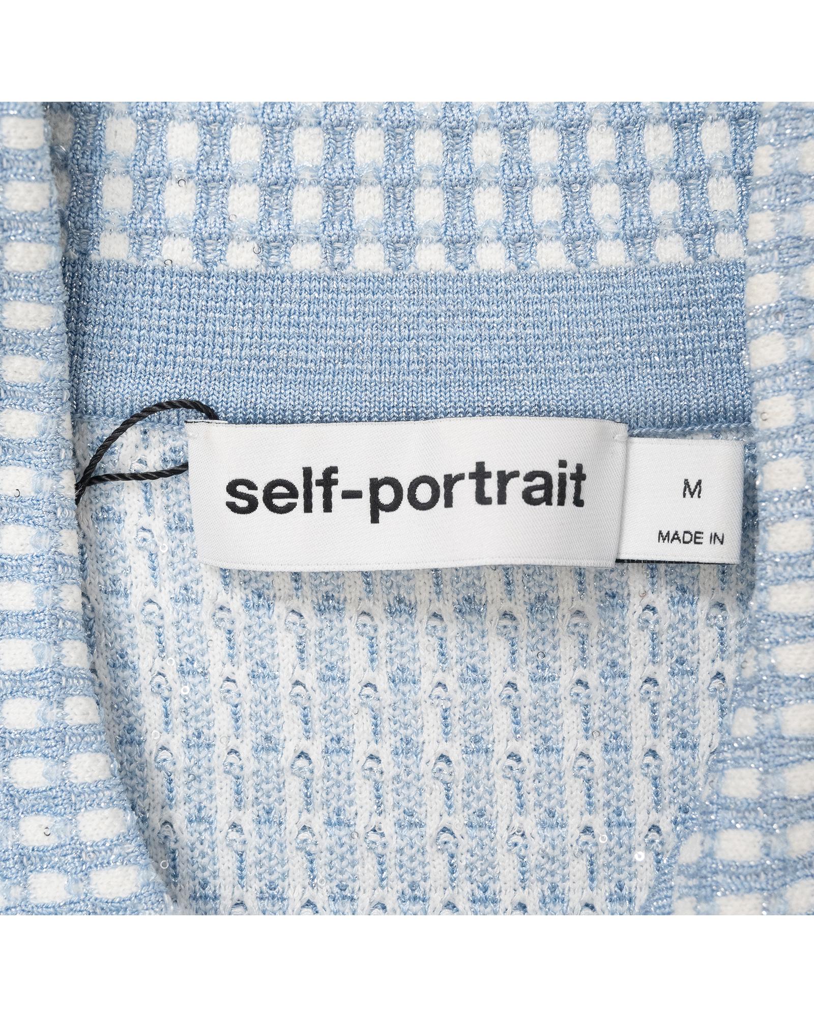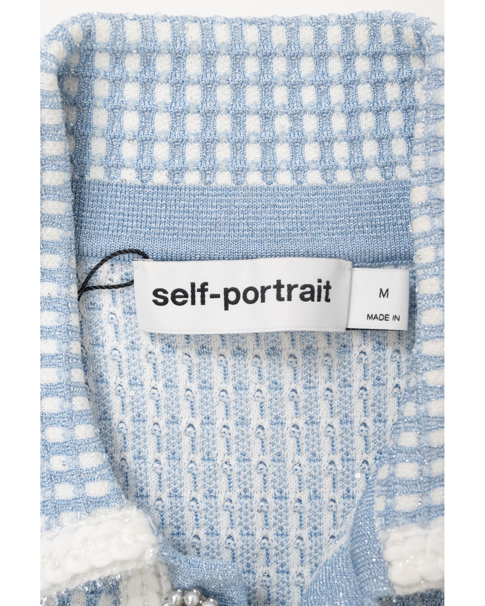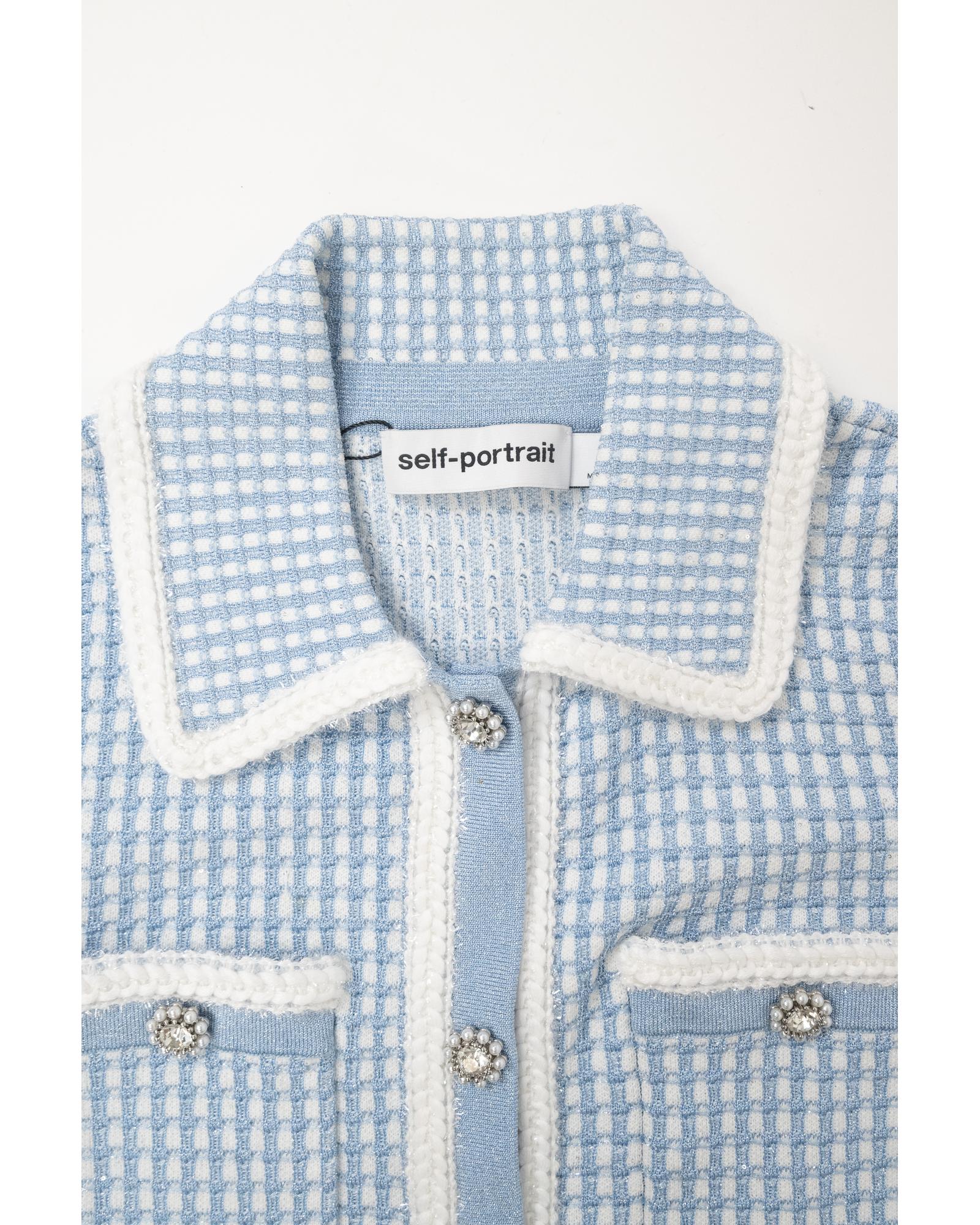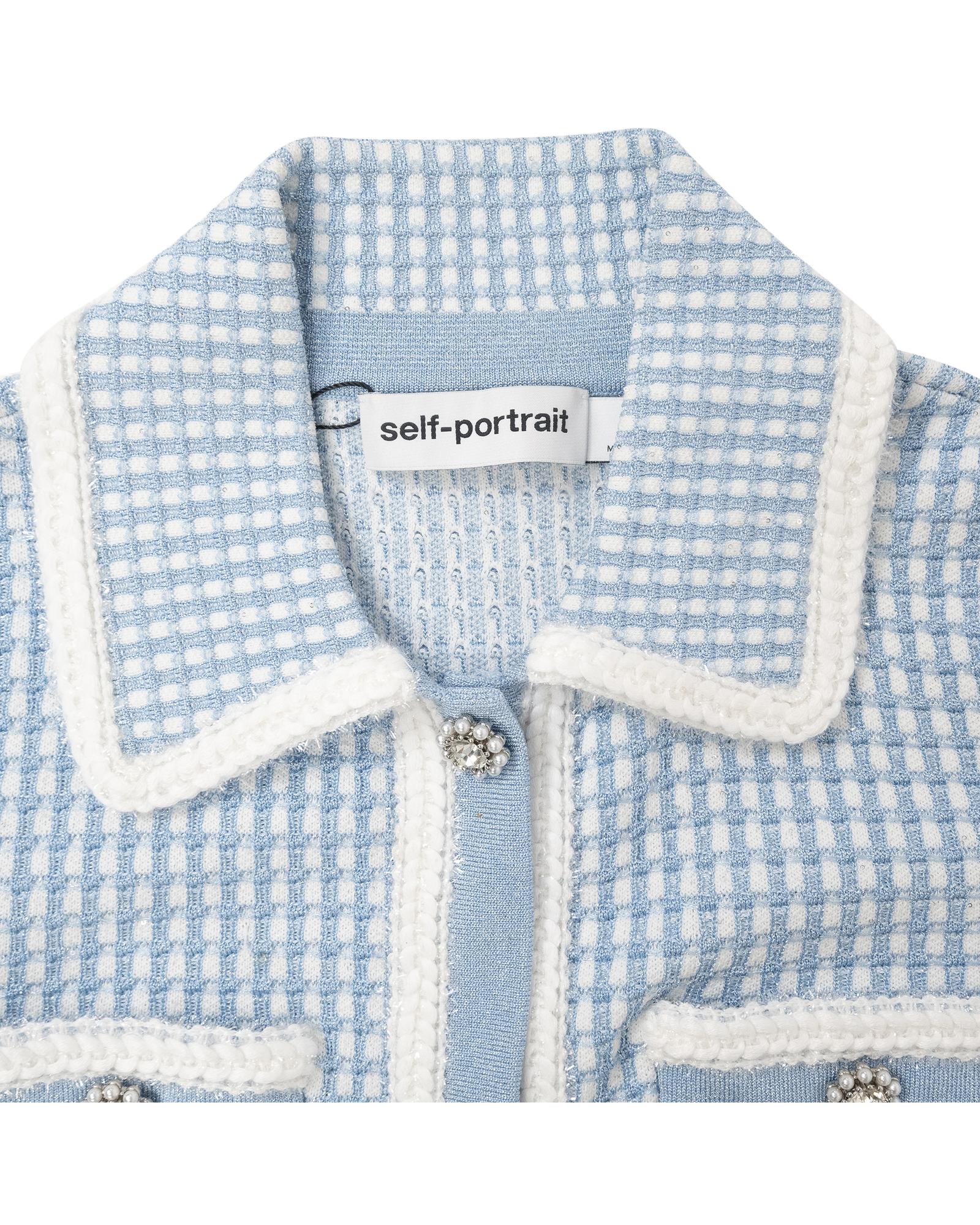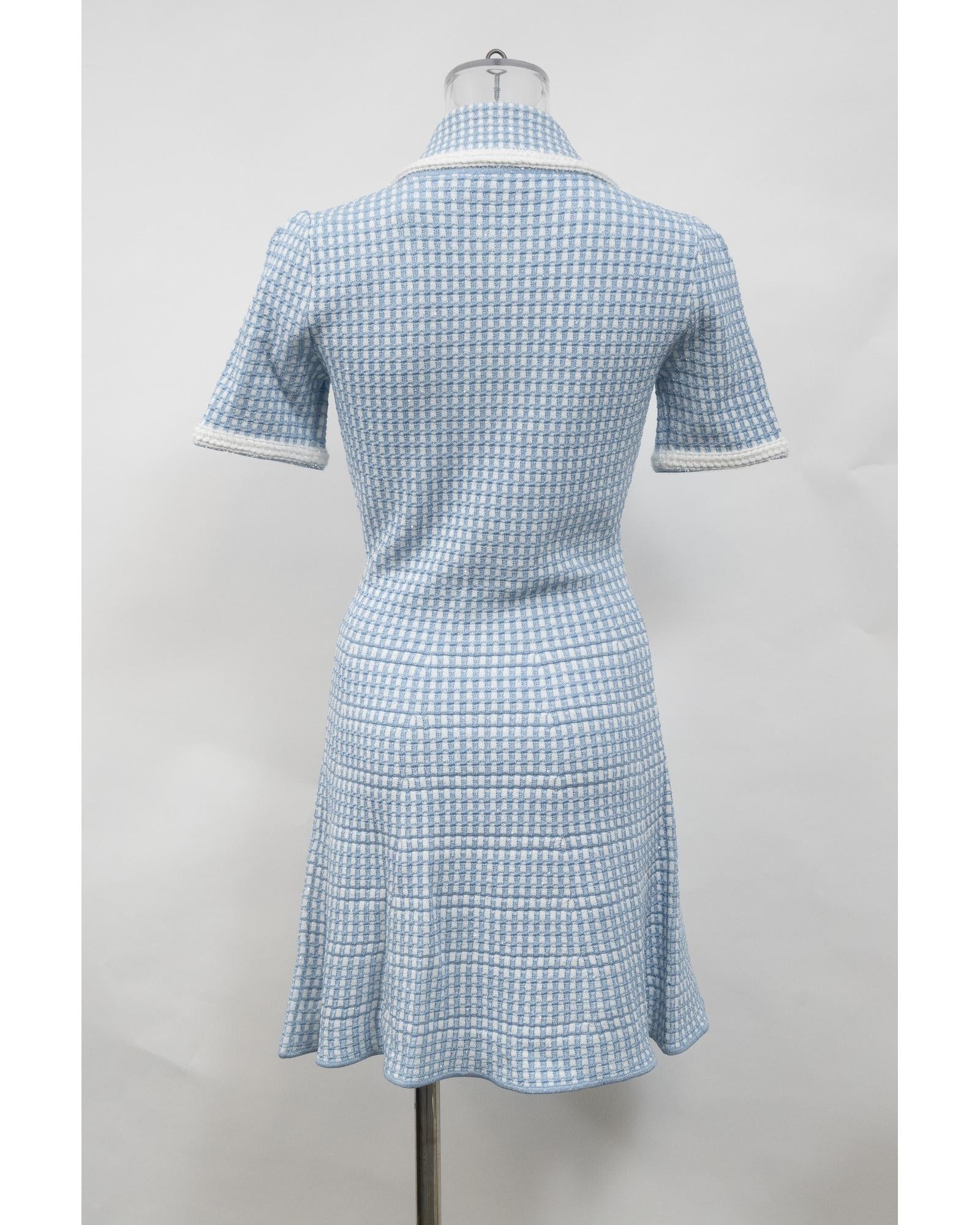 • Embellished Metallic Jacquard Mini Dress in Light Blue Wool
