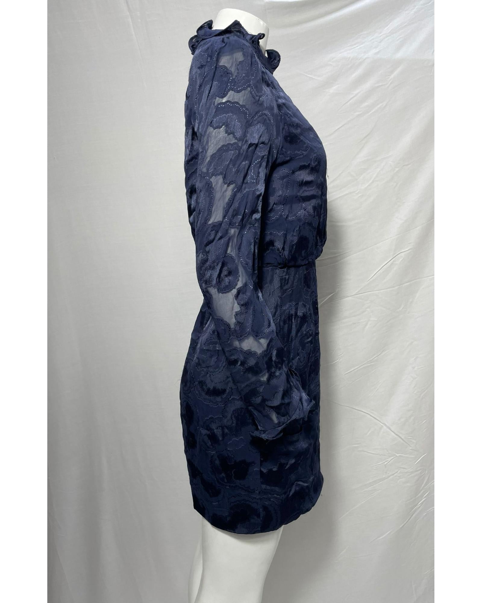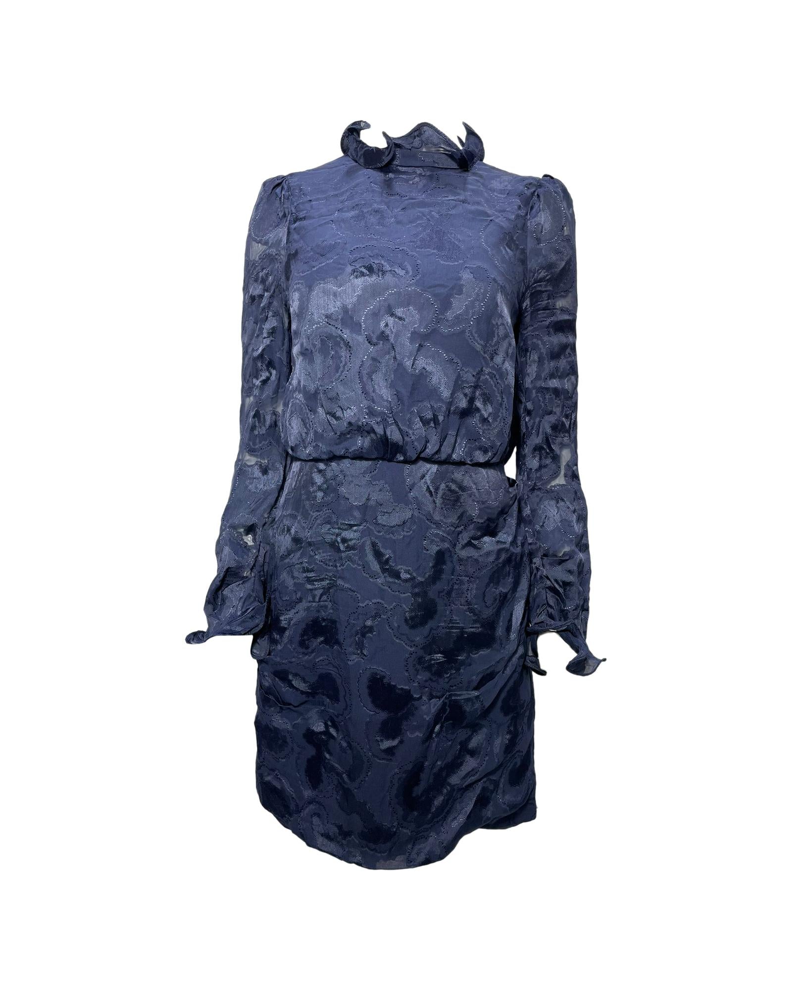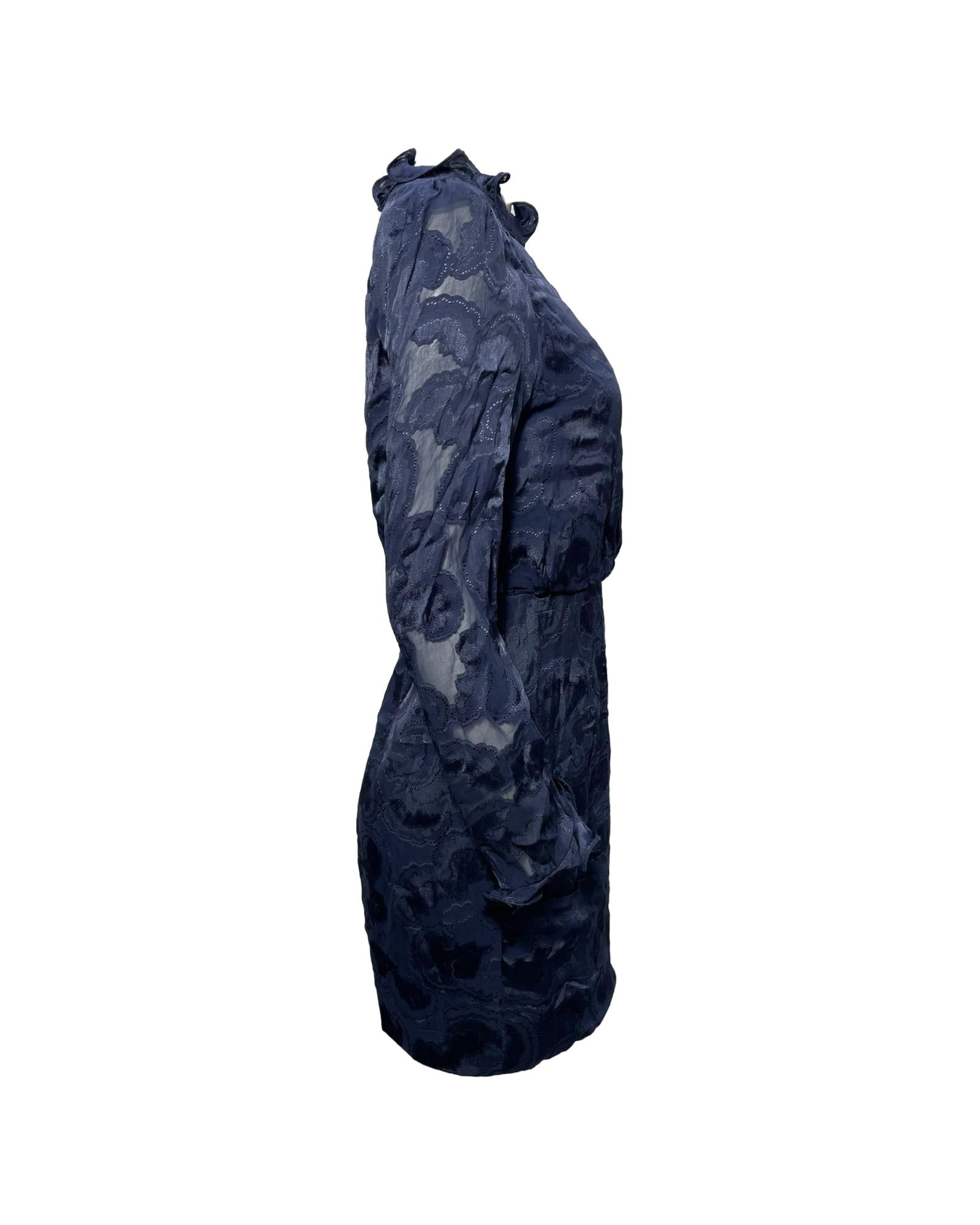 • Saloni Rina B Mini Ruffled Neck Dress in Navy Blue Rayon