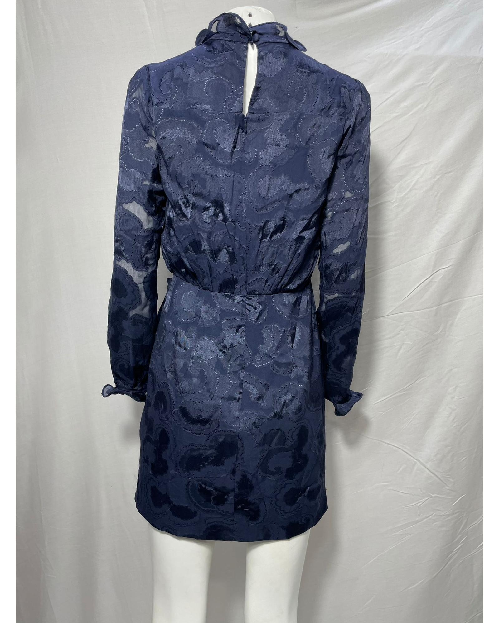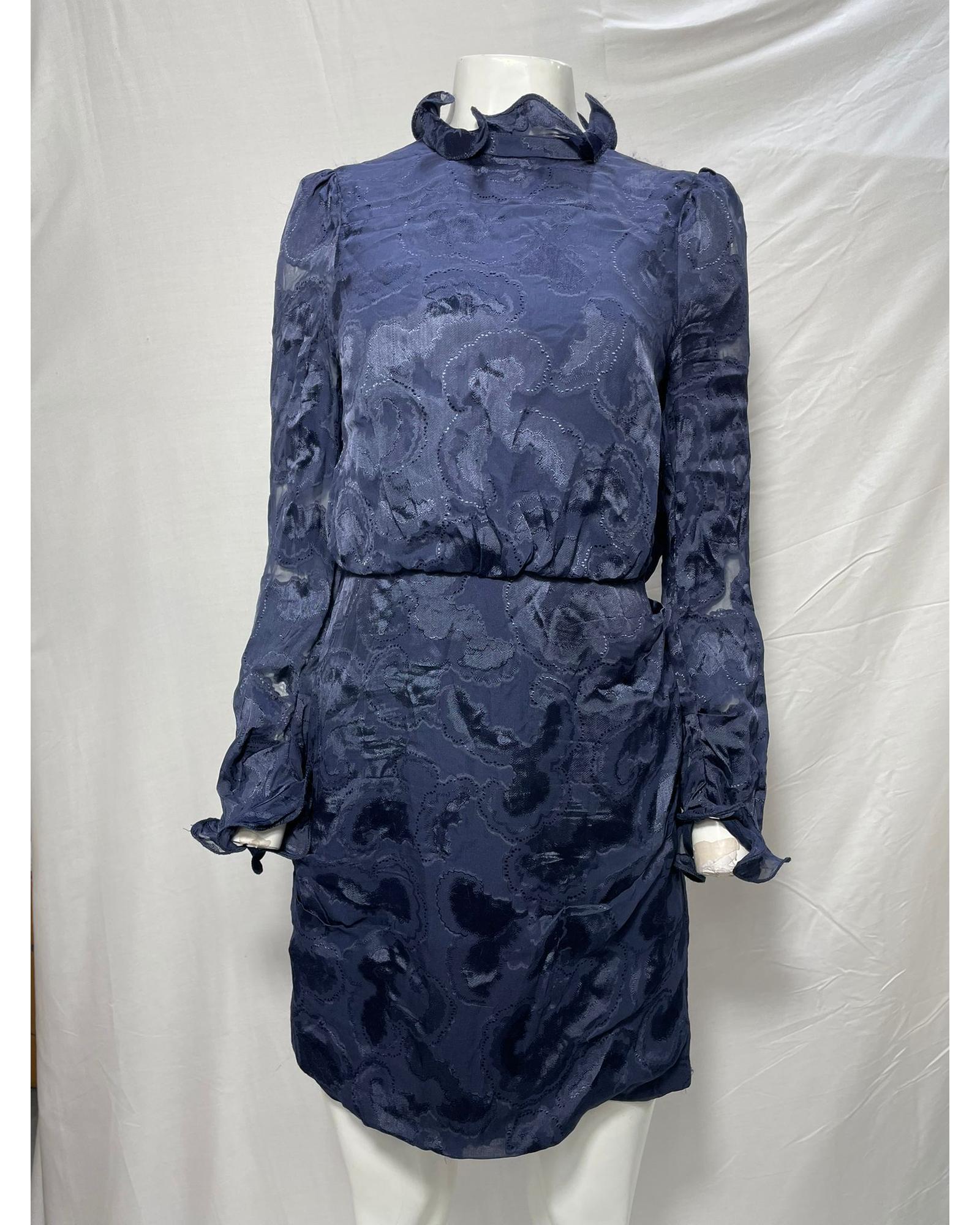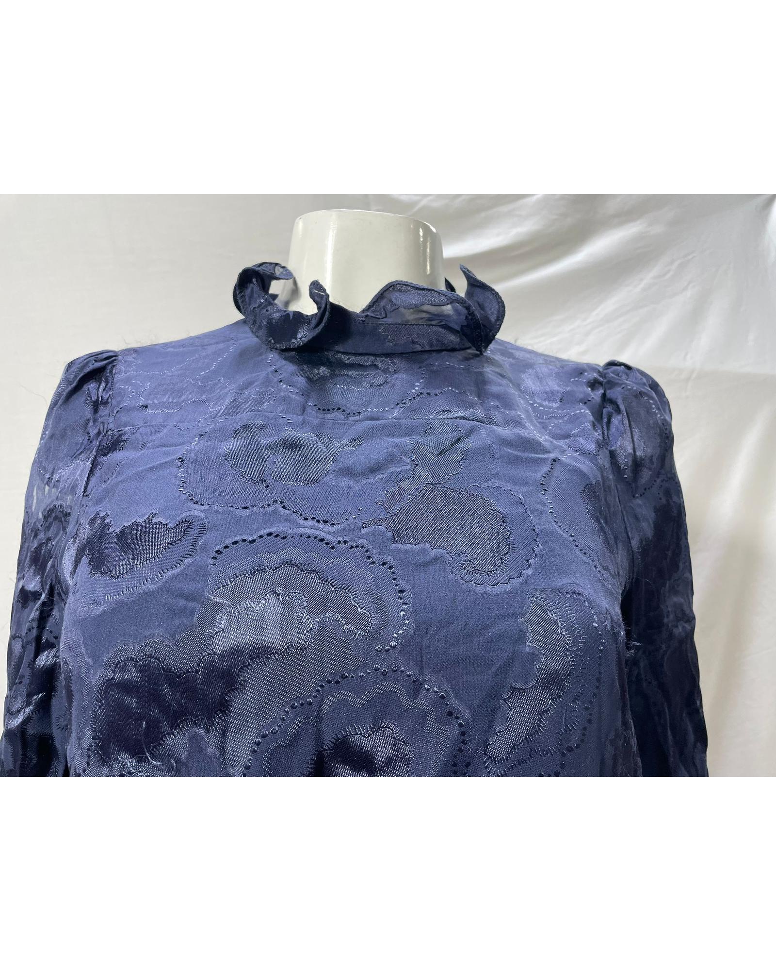 • Saloni Rina B Mini Ruffled Neck Dress in Navy Blue Rayon