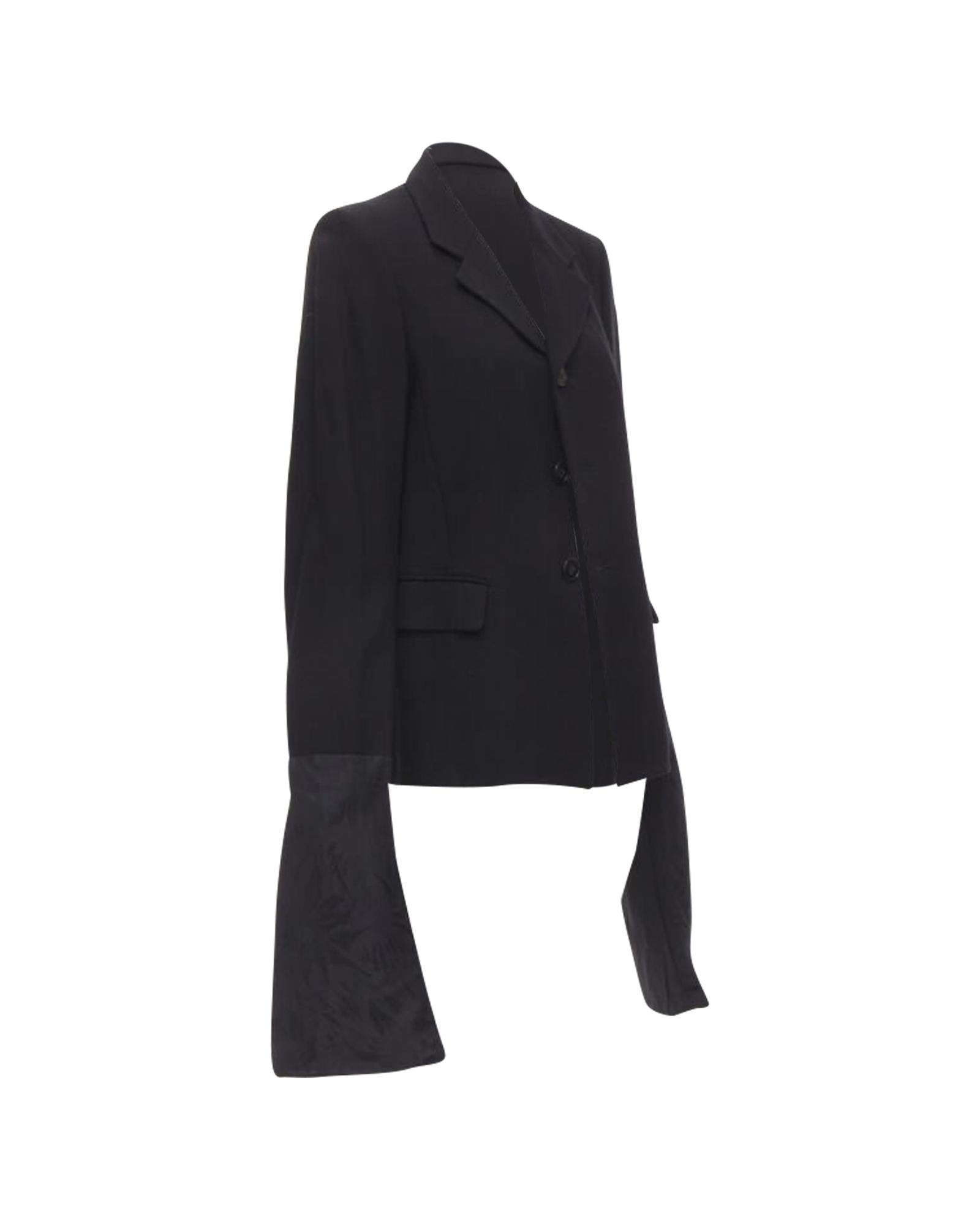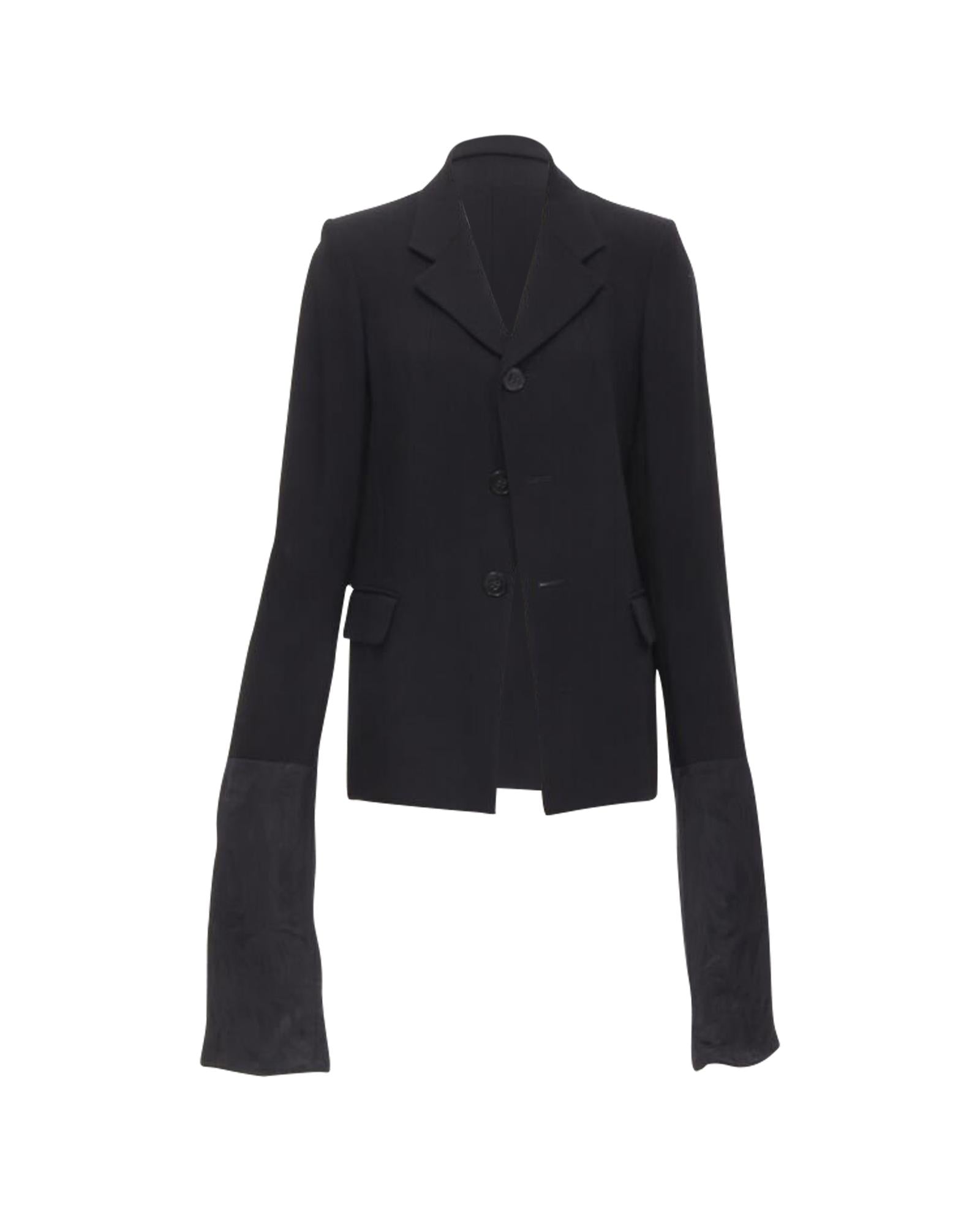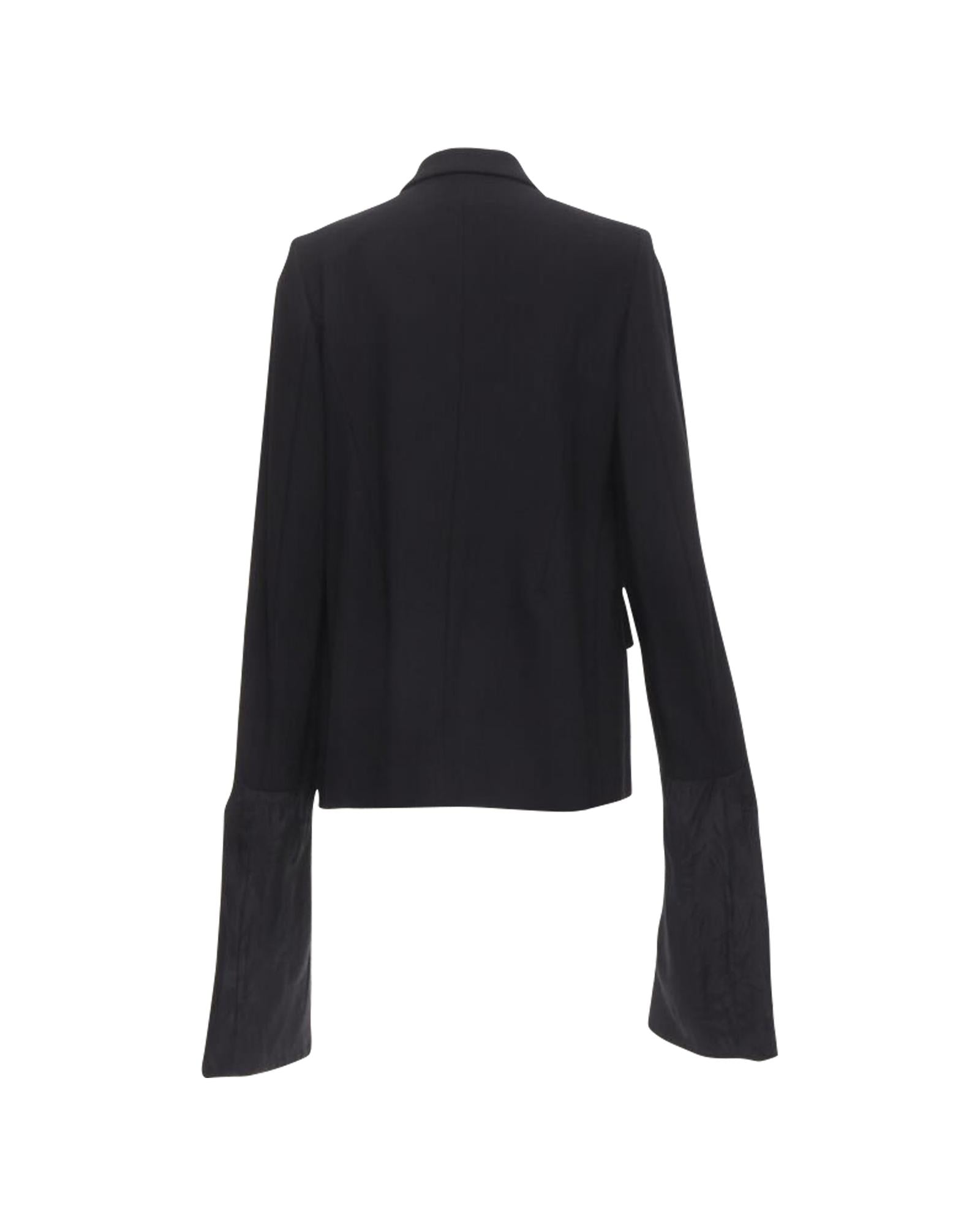 Pre-owned Structured Woven Jacket with Flap Pockets and Button Closure