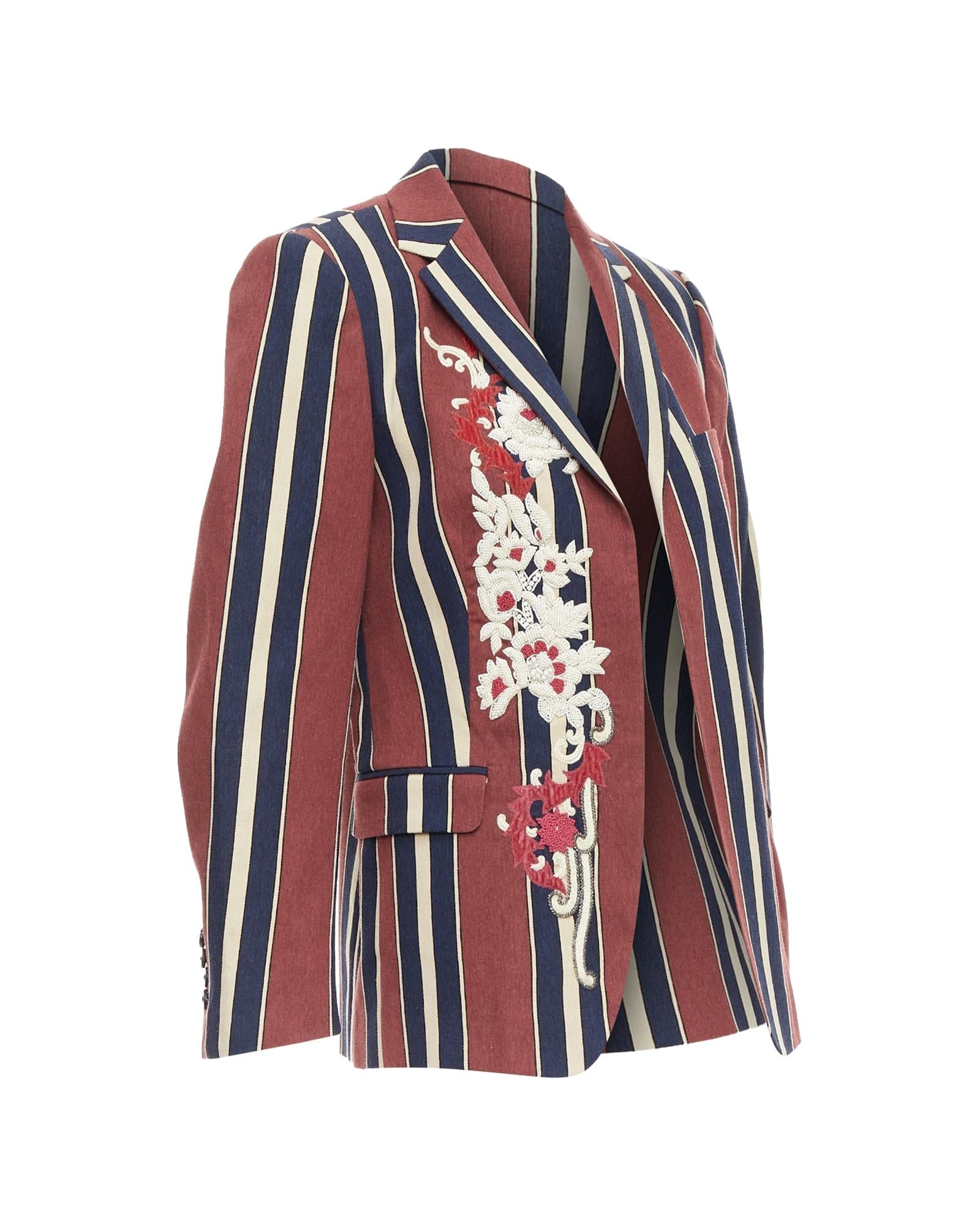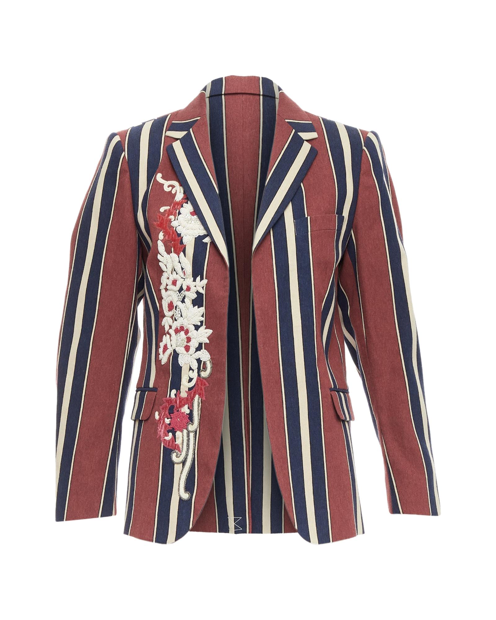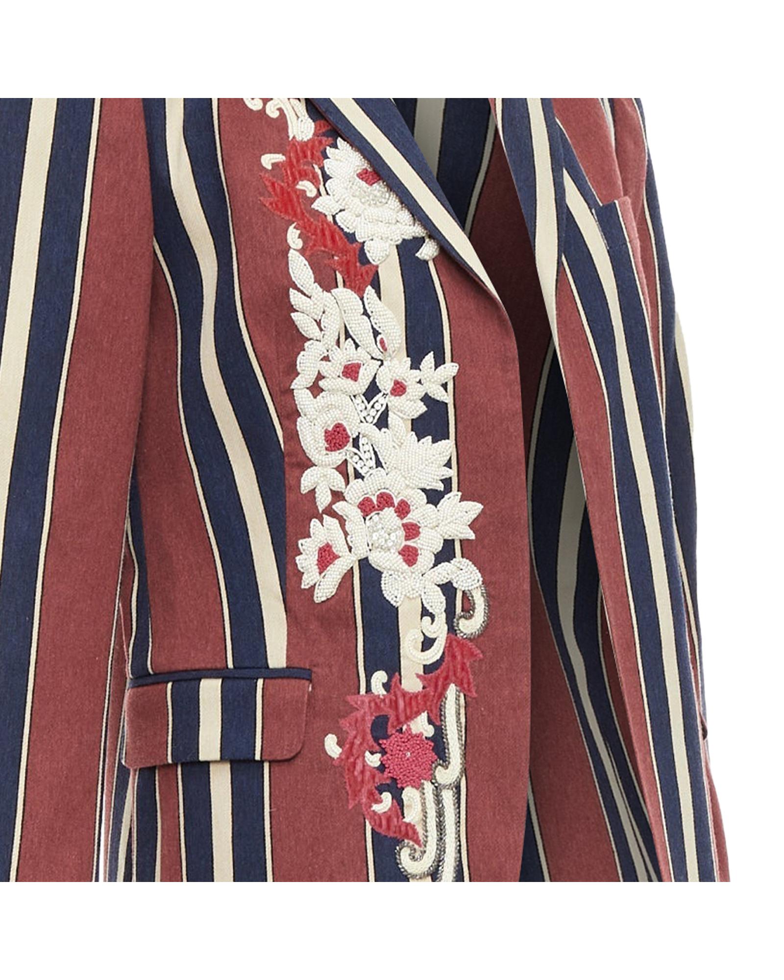 Pre-owned Striped Cotton Jacket with Embroidery Details