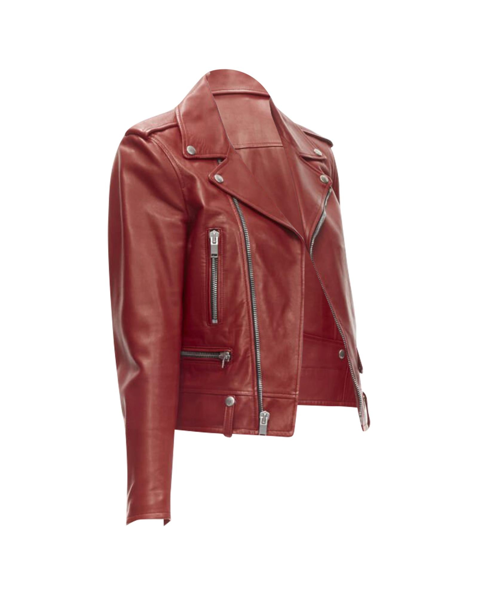 Pre-owned Leather Jacket with Zipper Closure and Stylish Design