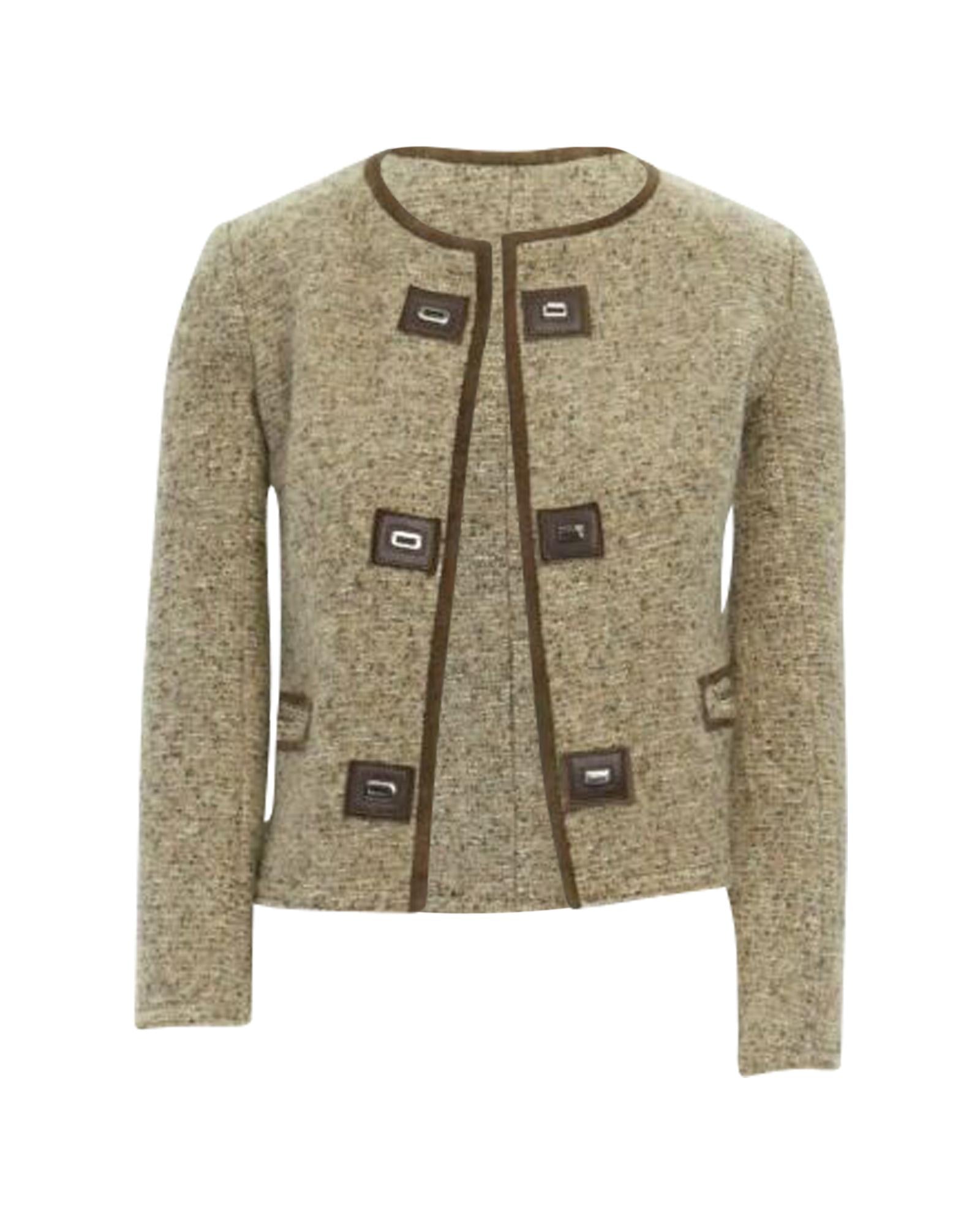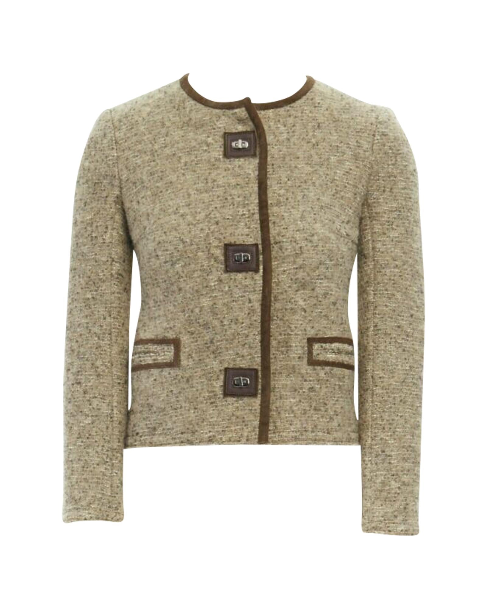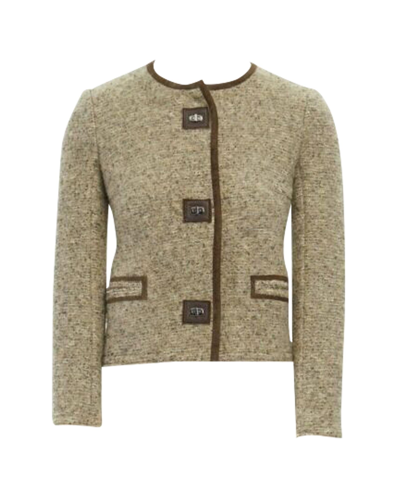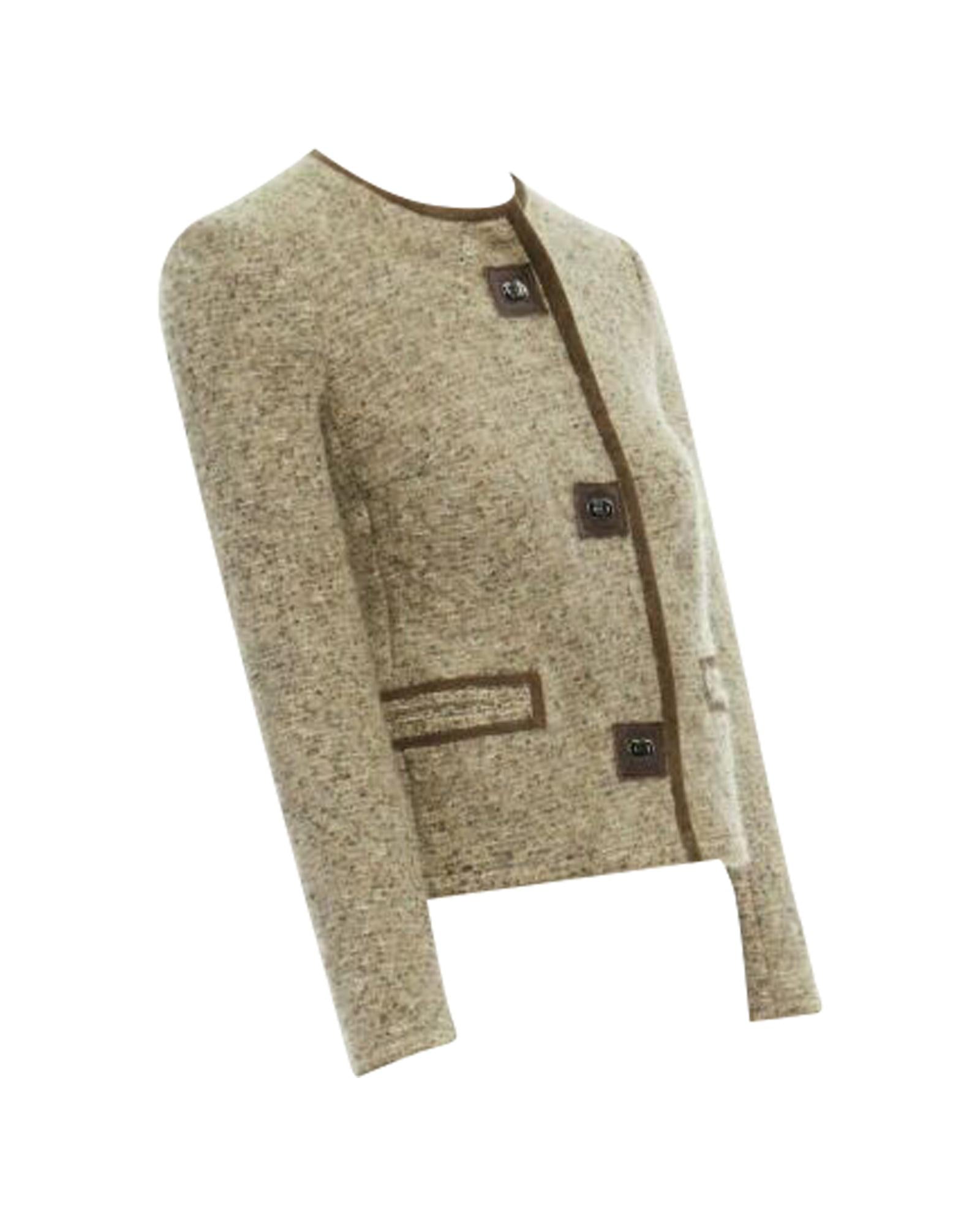 Pre-owned Elegant Textured Jacket with Button Detail and Pocket Accents