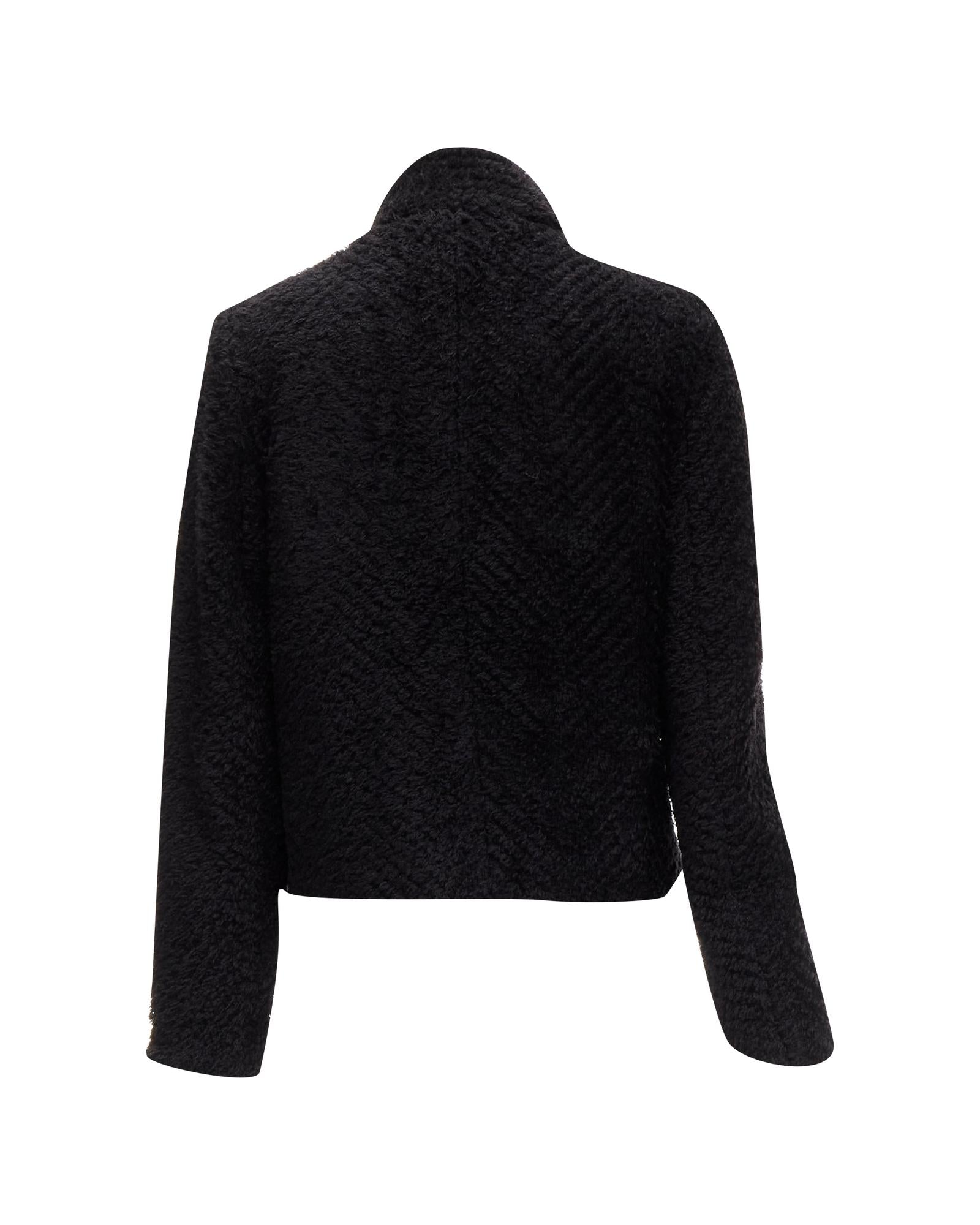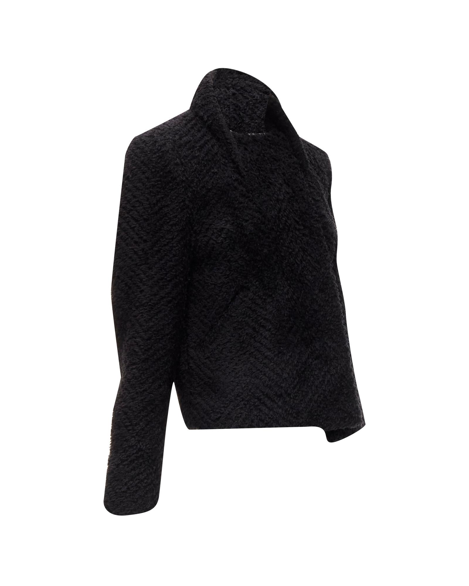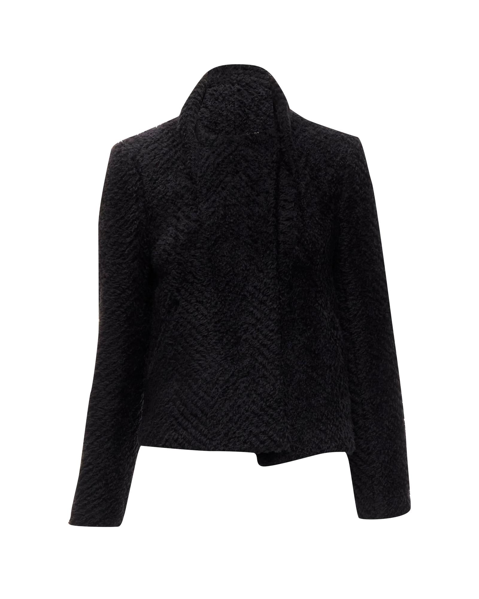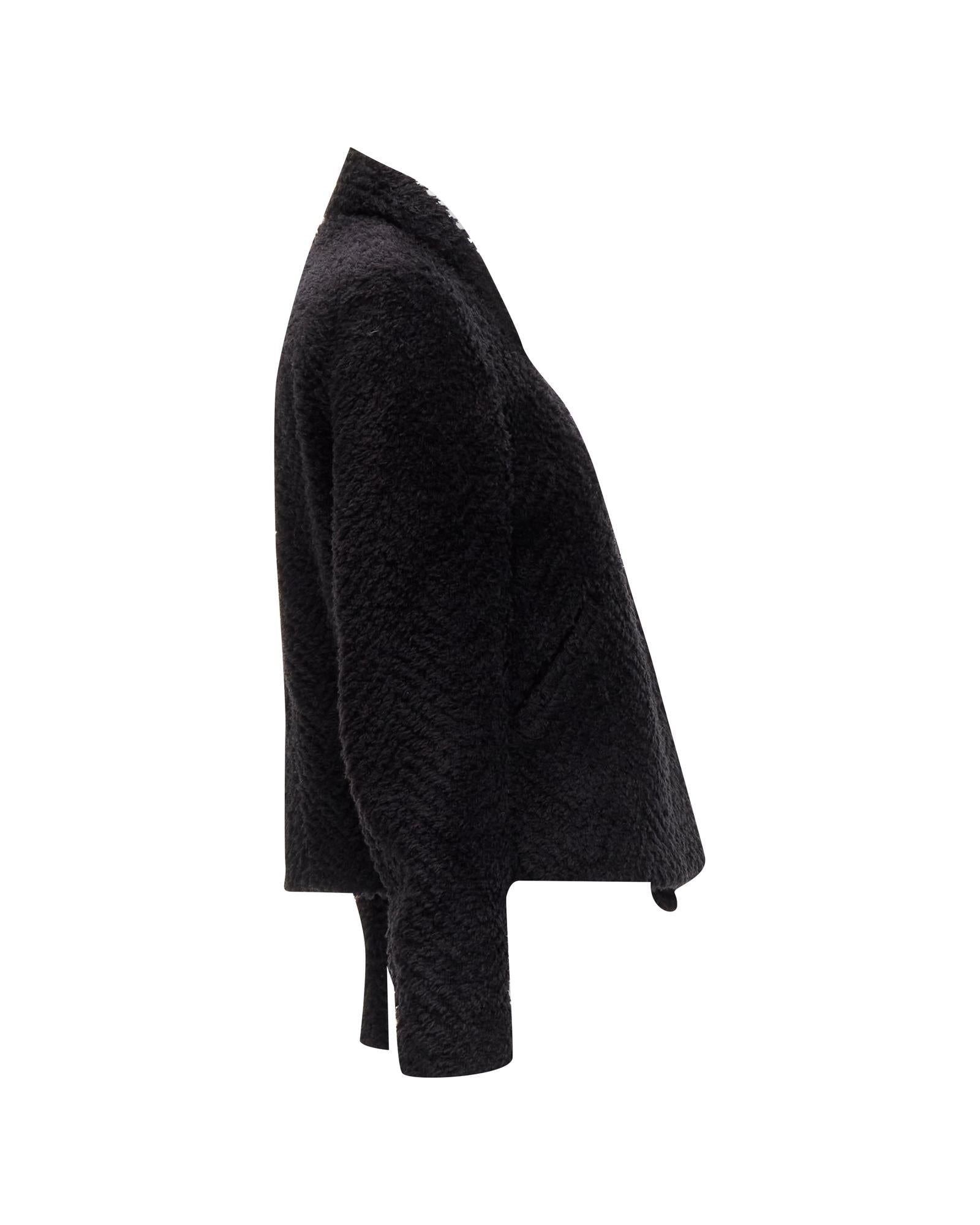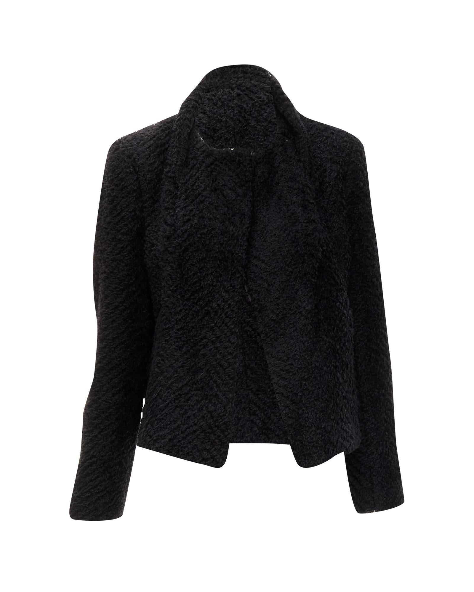 Pre-owned Textured Knit Jacket with Collar and Long Sleeves