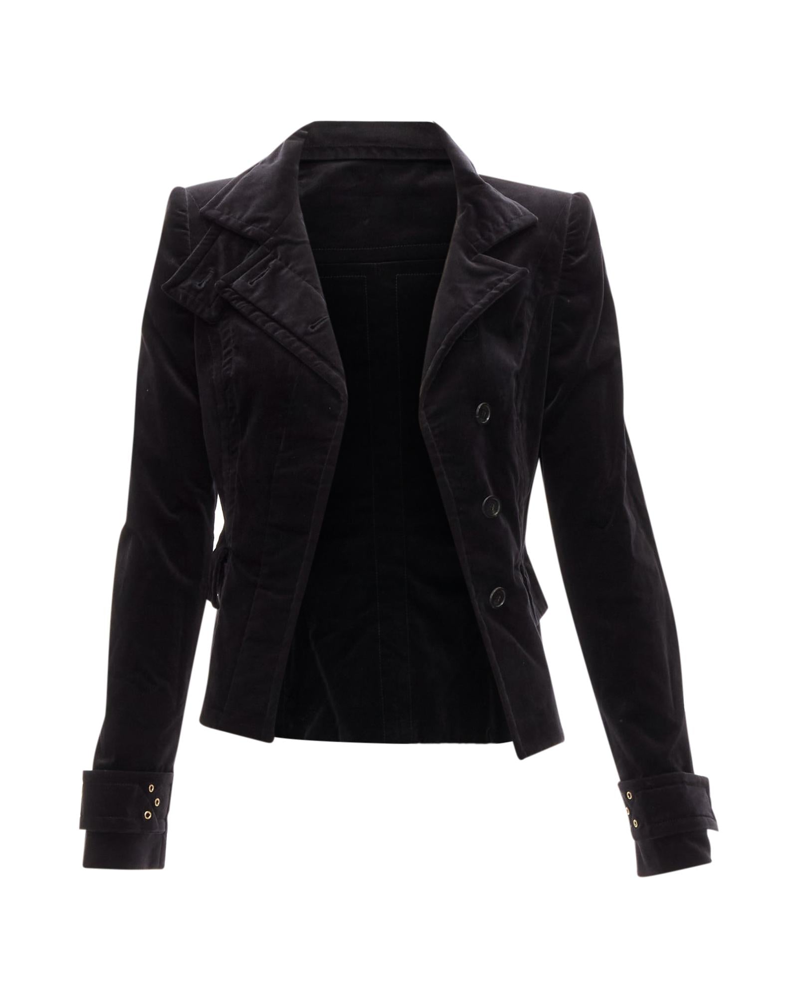 Pre-owned Velvet Jacket with Button Closure and Lapel Collar