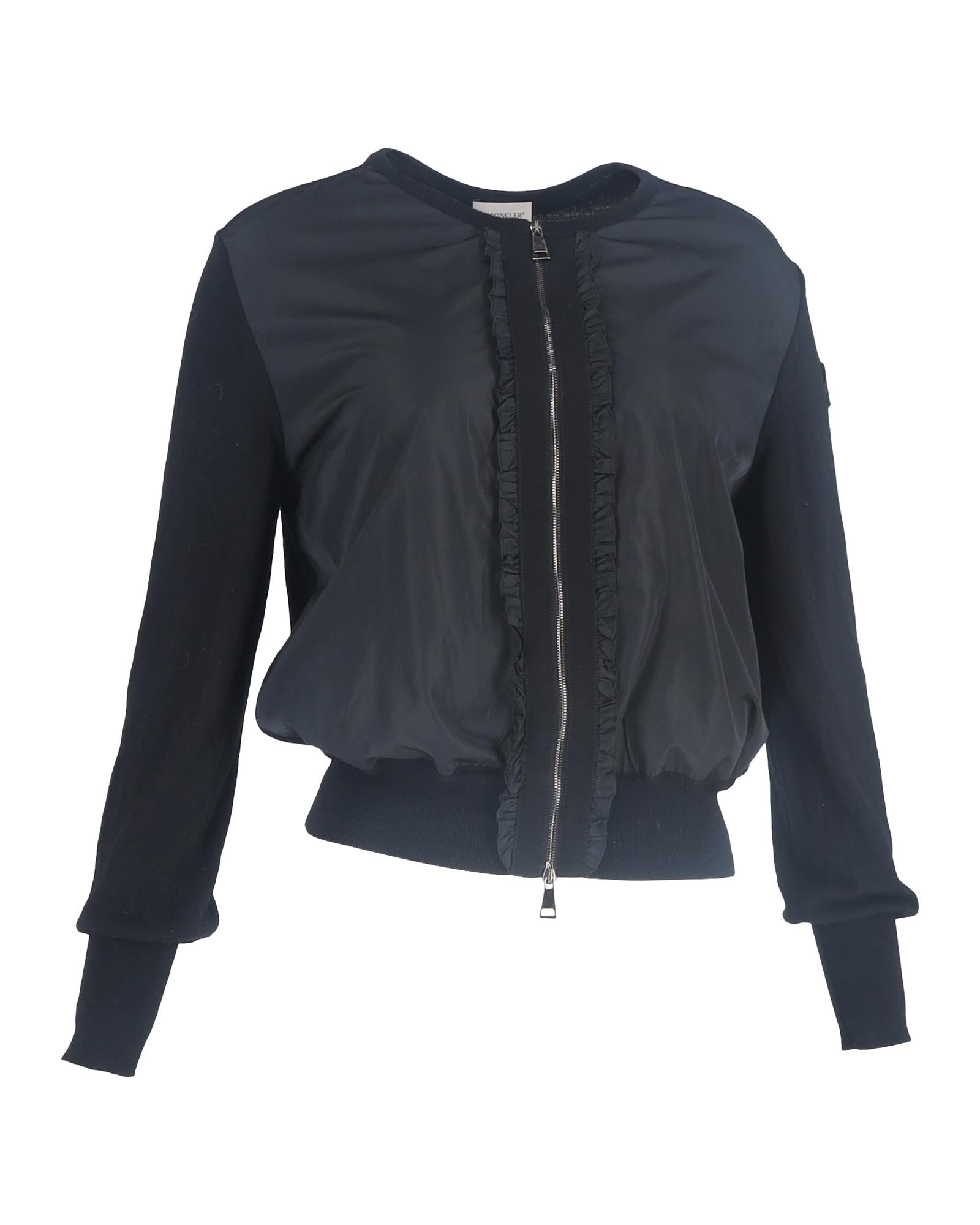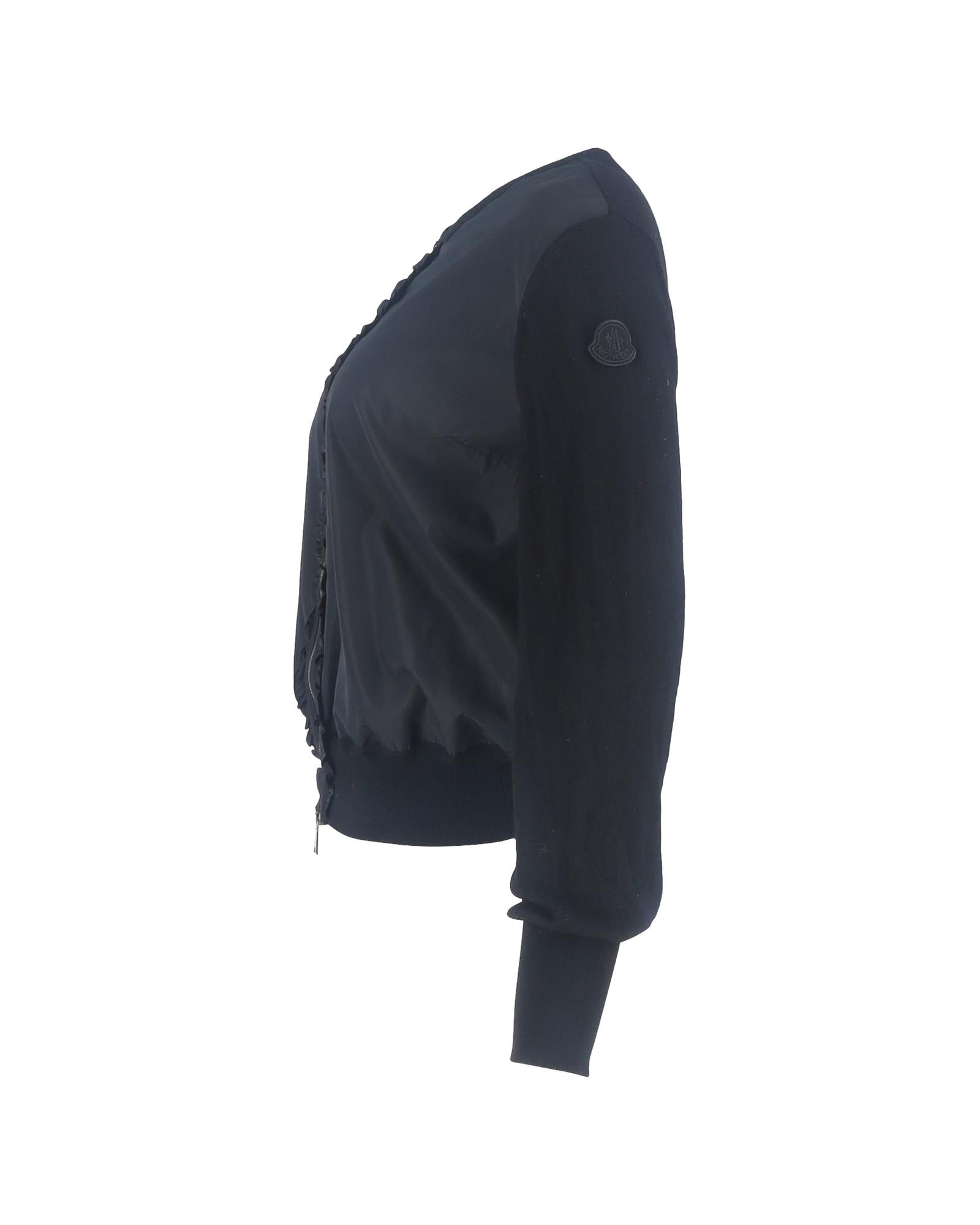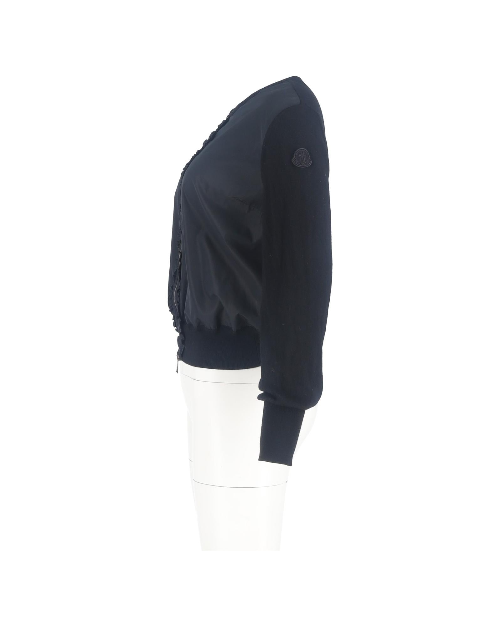 • Moncler Ruffle Zipped Detail Cardigan in black wool and polyester
