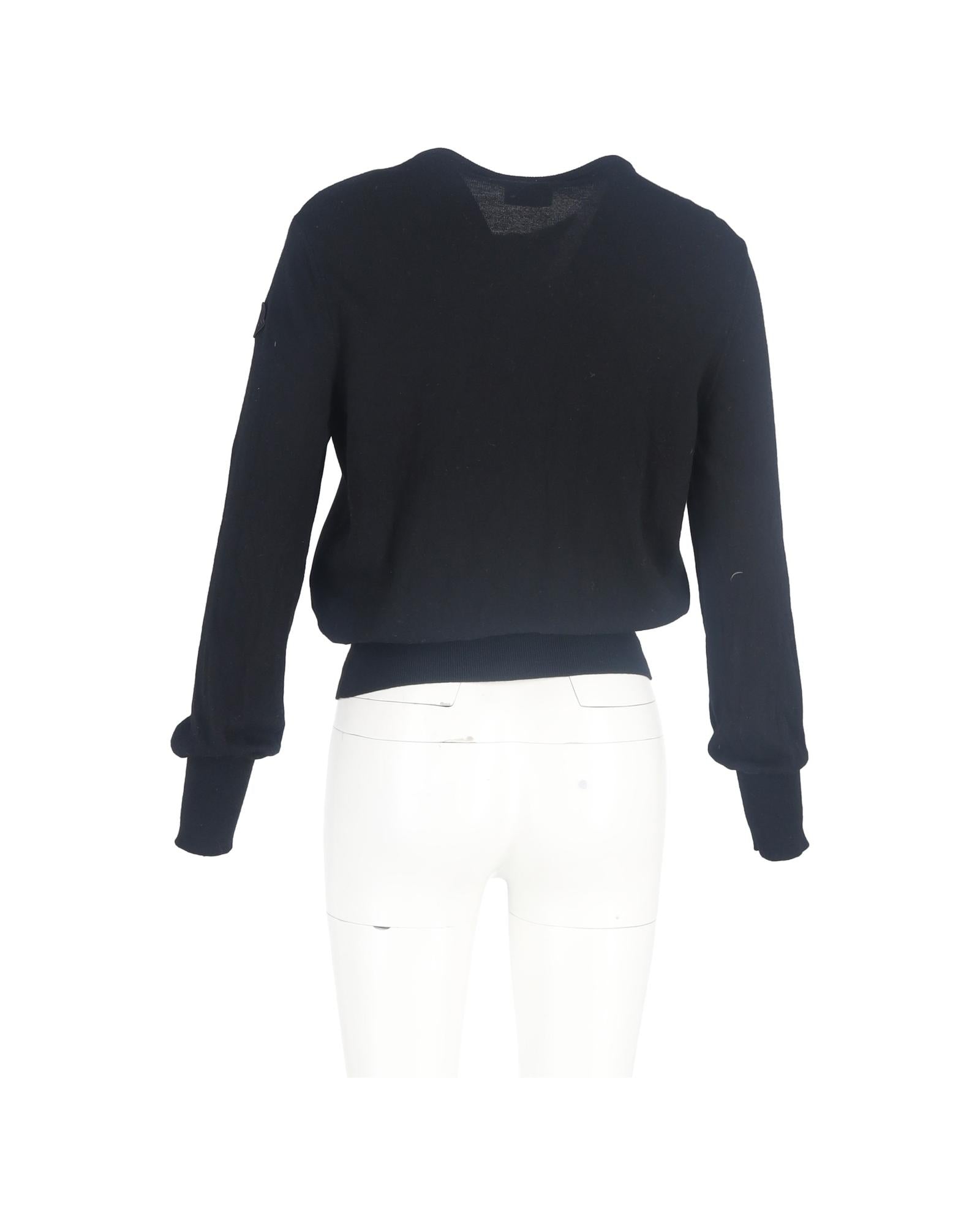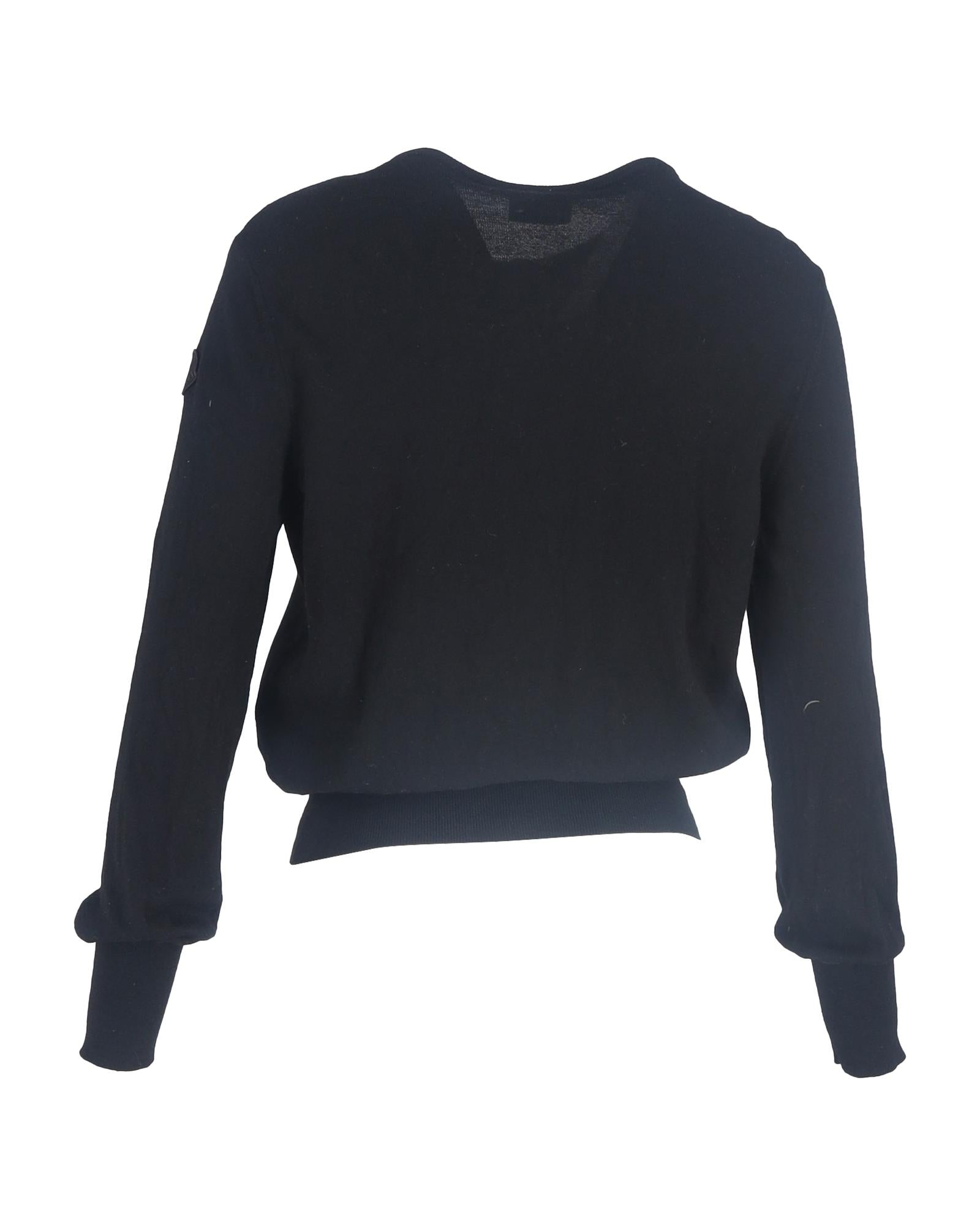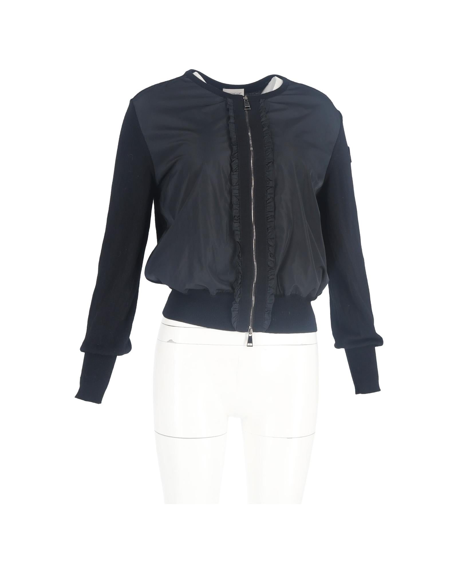 • Moncler Ruffle Zipped Detail Cardigan in black wool and polyester