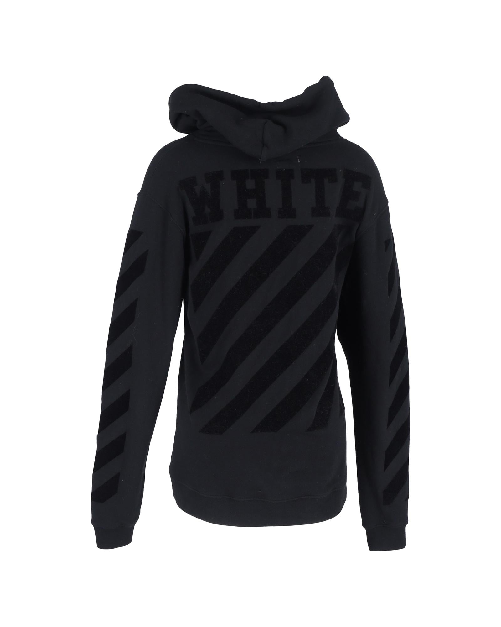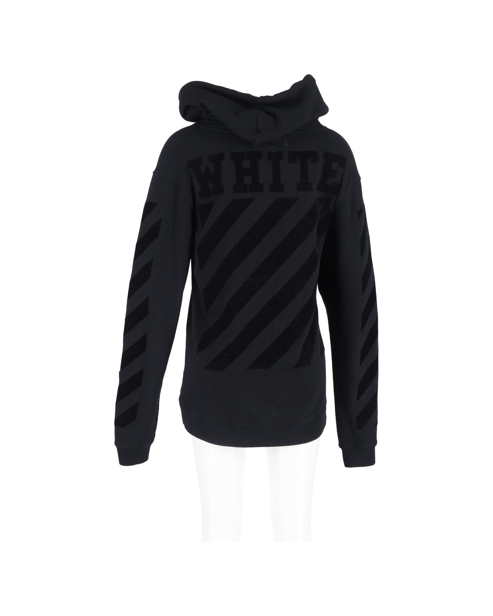 - White Striped Logo Hoodie in Black Cotton