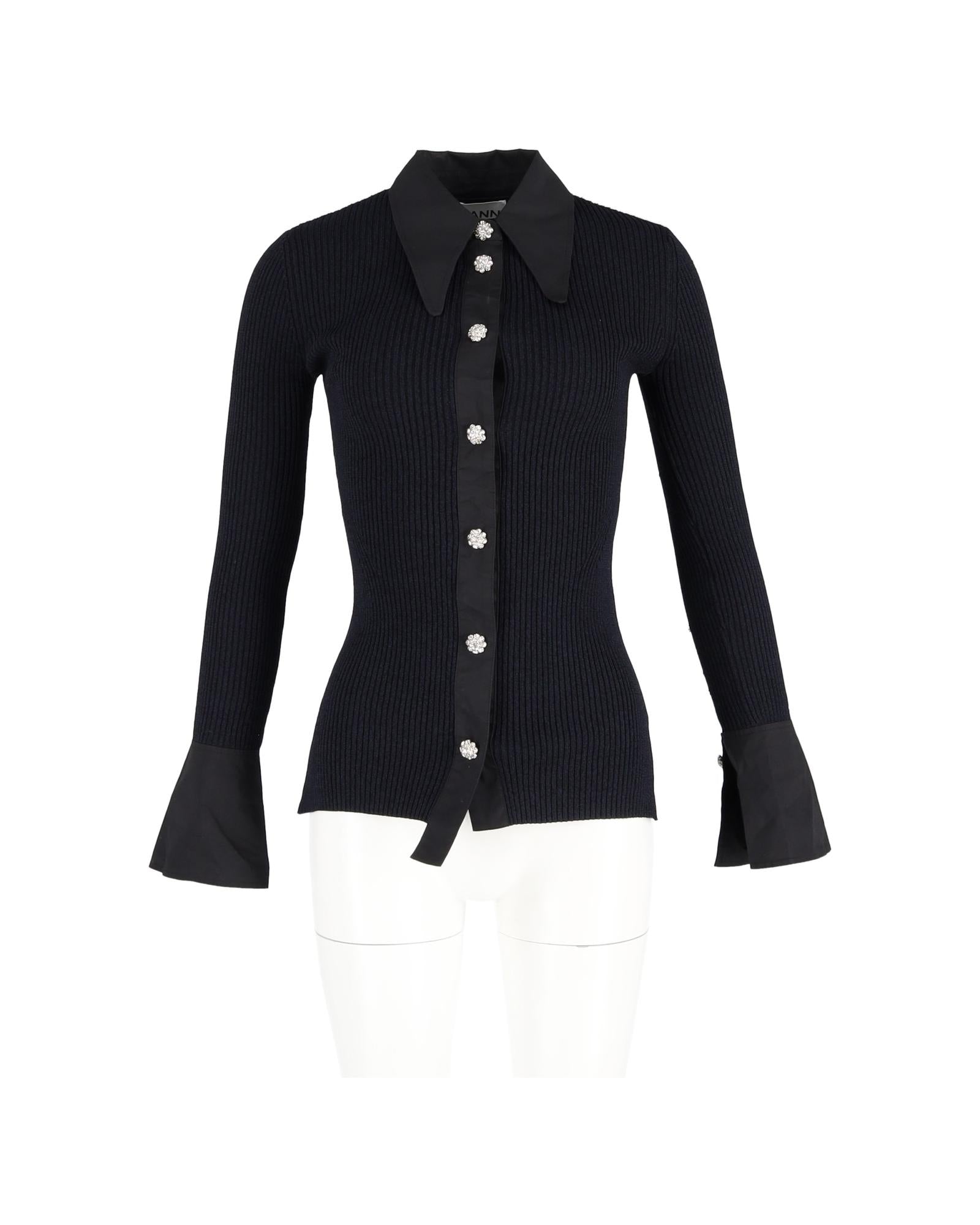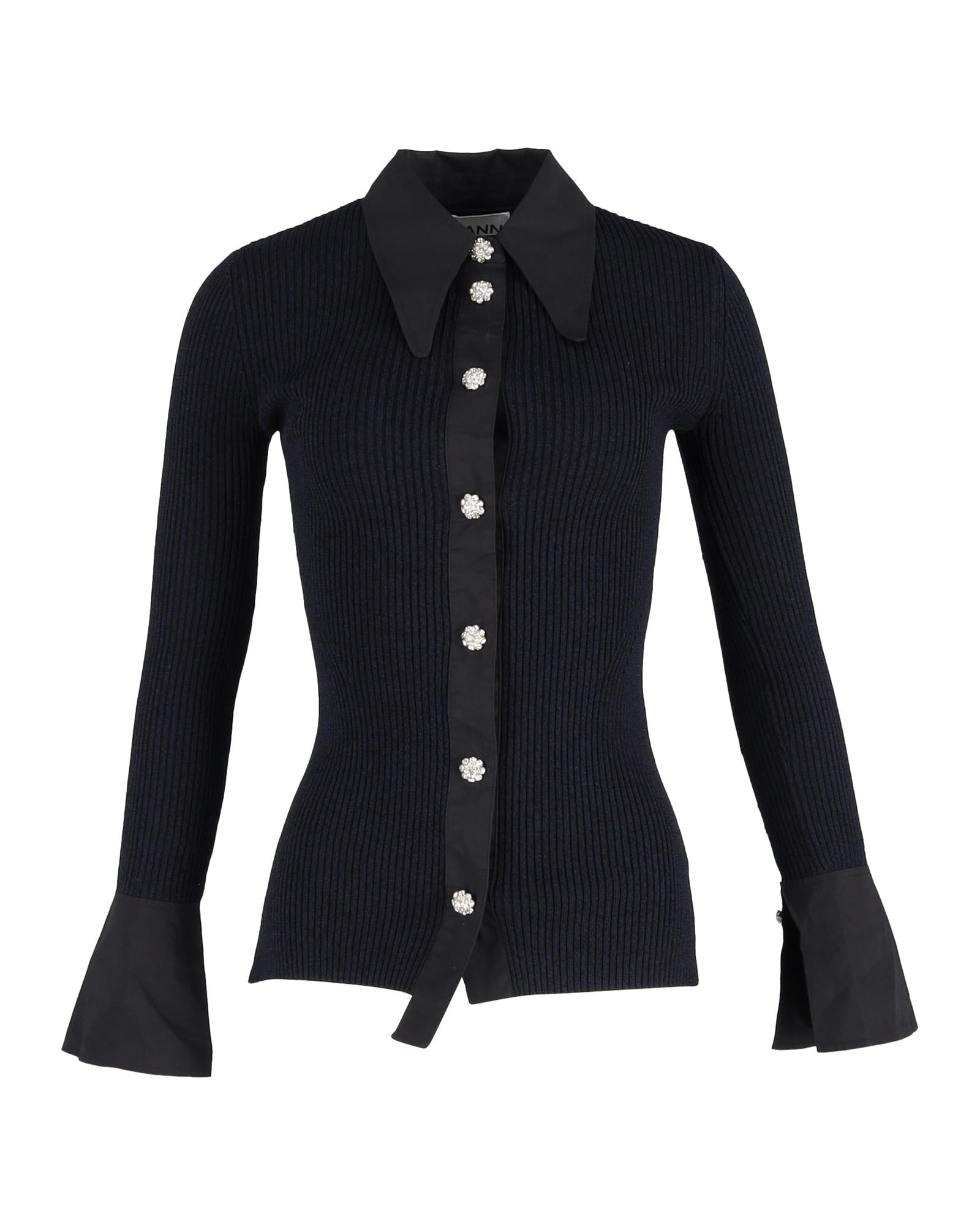 Ribbed-Knit Cotton Cardigan with Statement Buttons