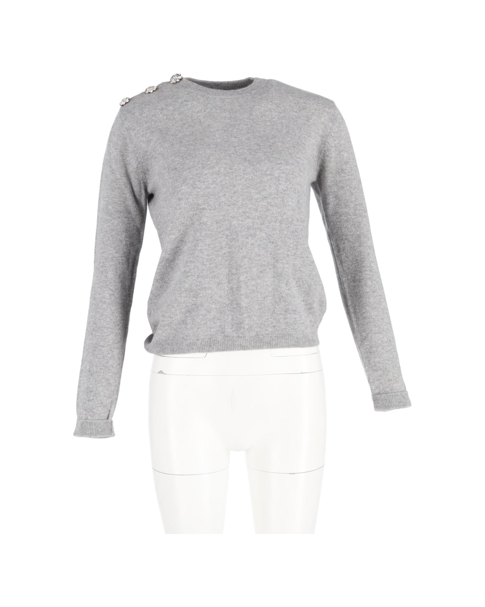 - Ganni Crystal Embellished Jumper in Grey Cashmere