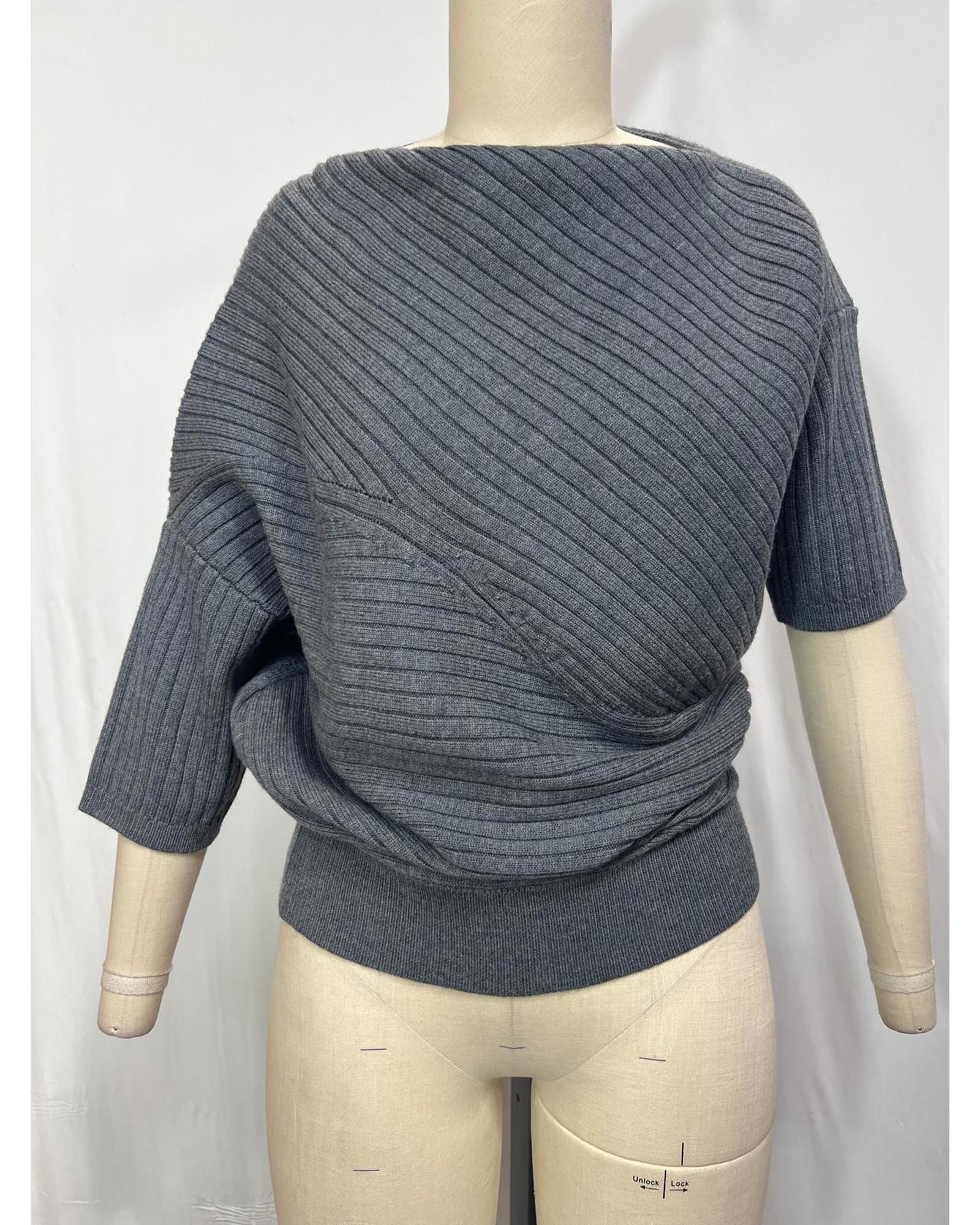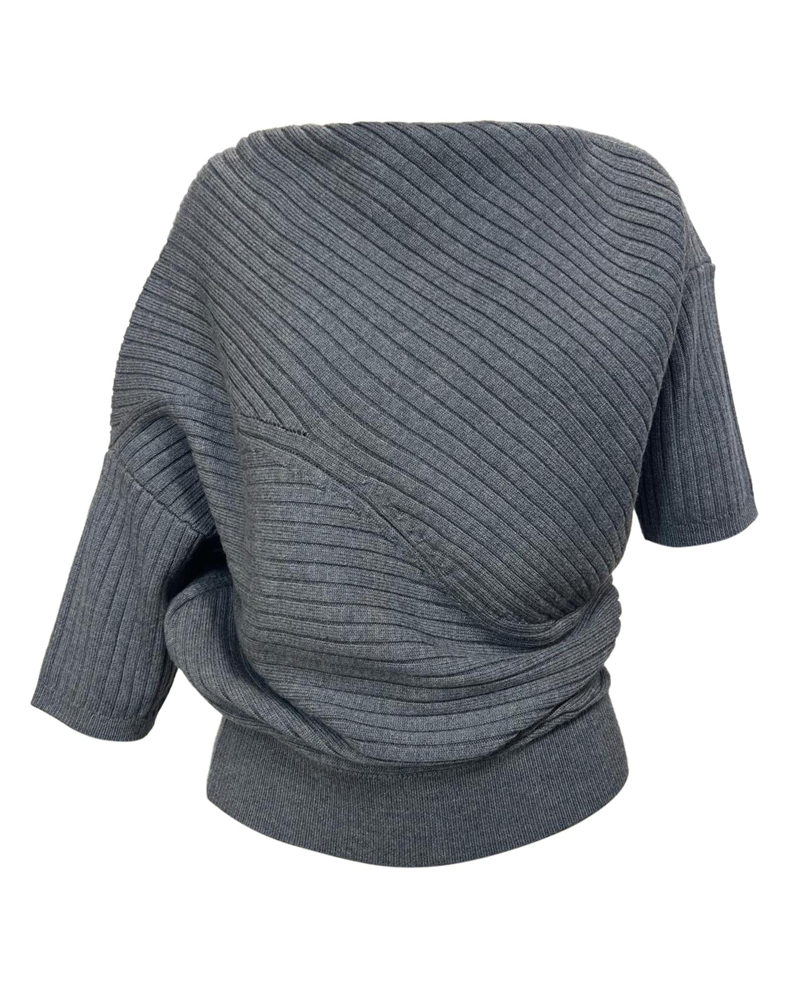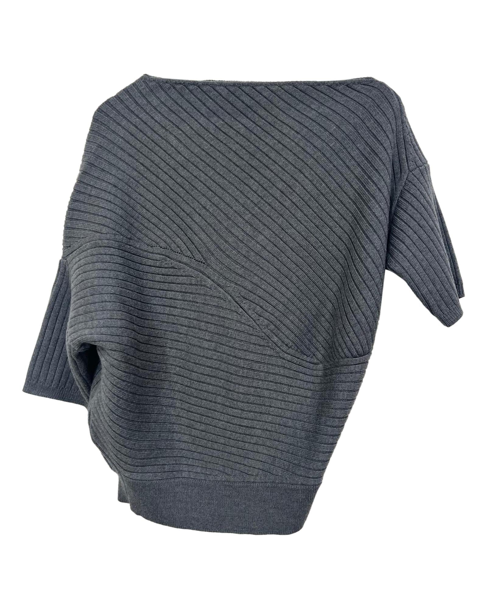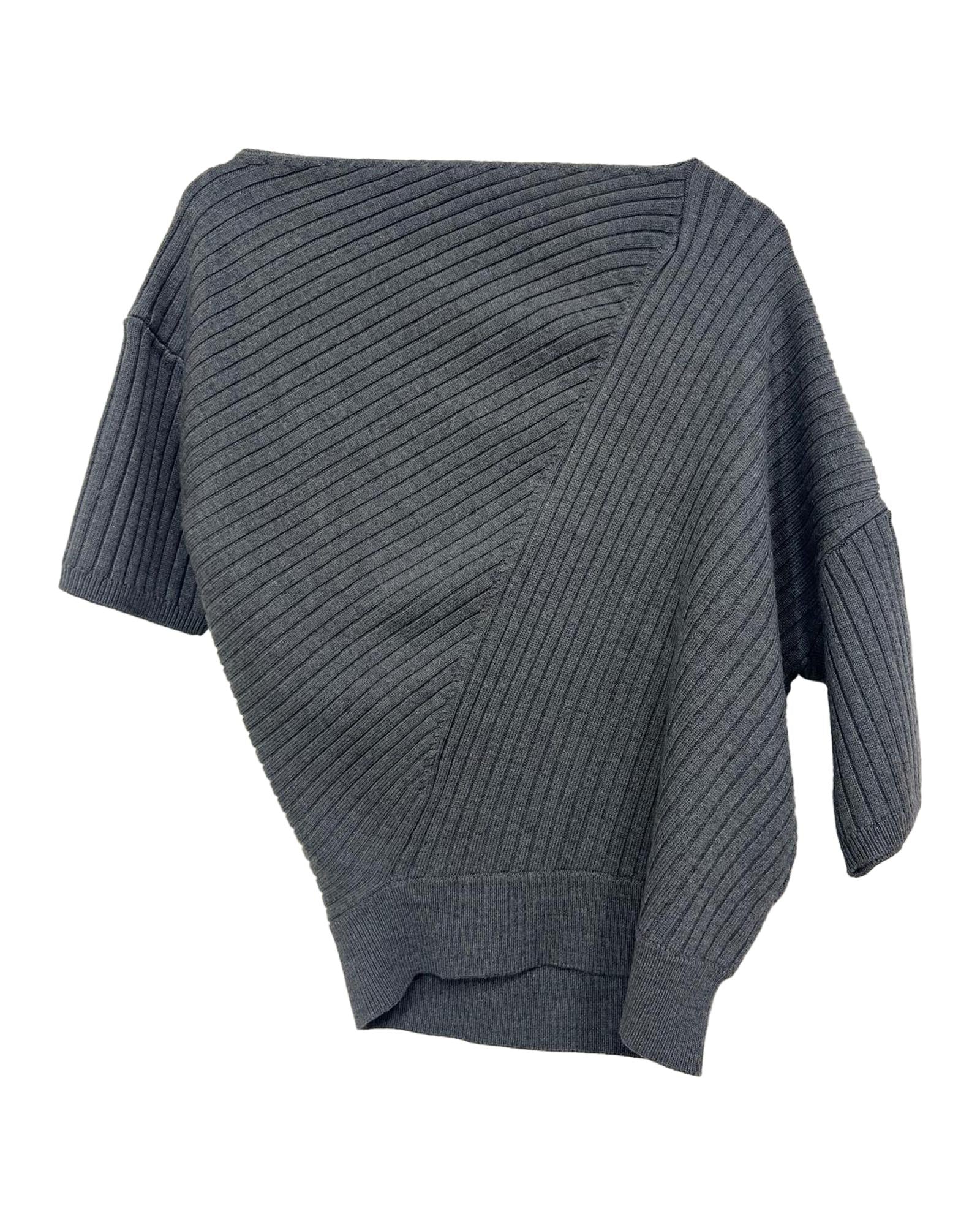 • JW Anderson Ribbed Asymmetric Sweater in Grey Merino Wool