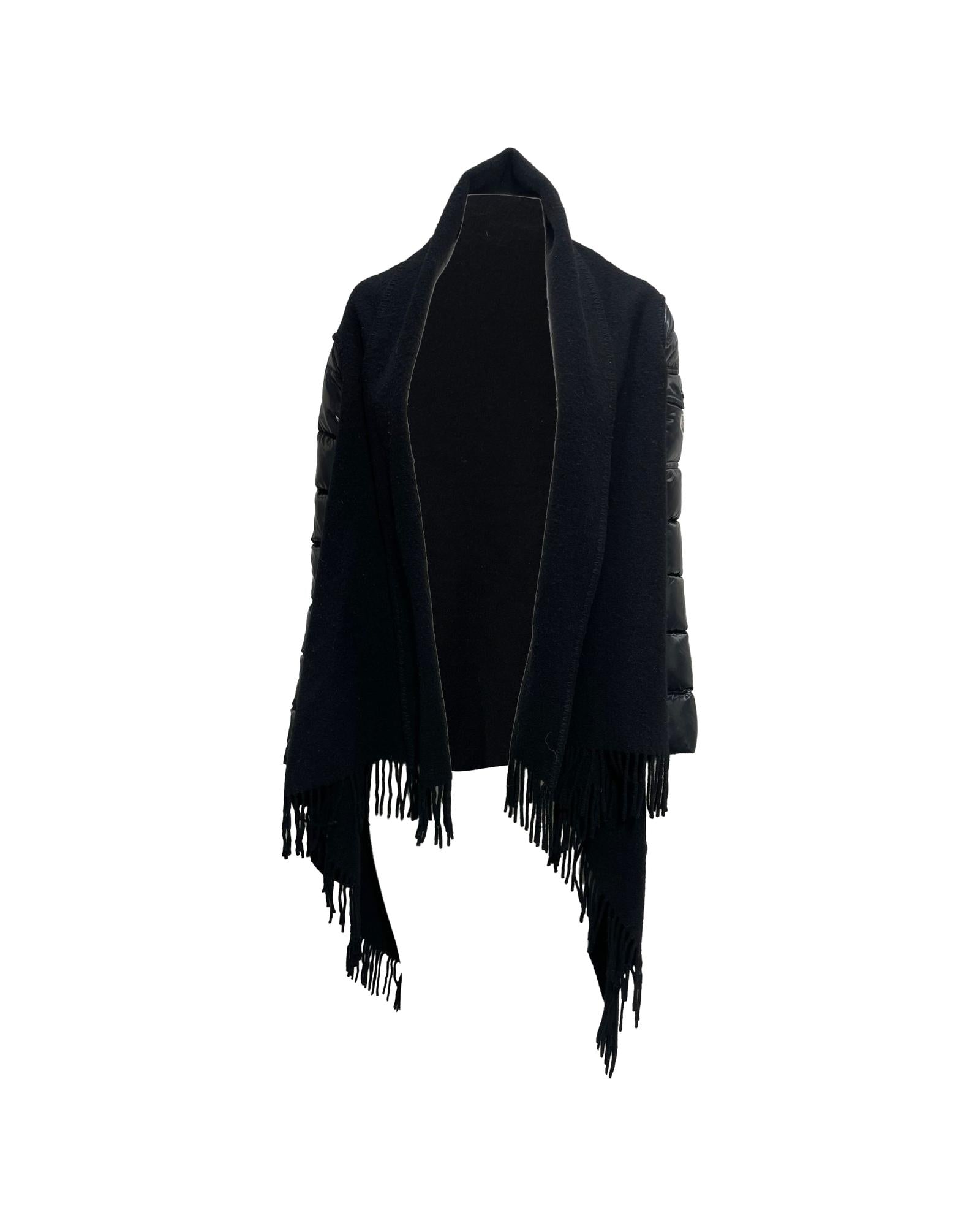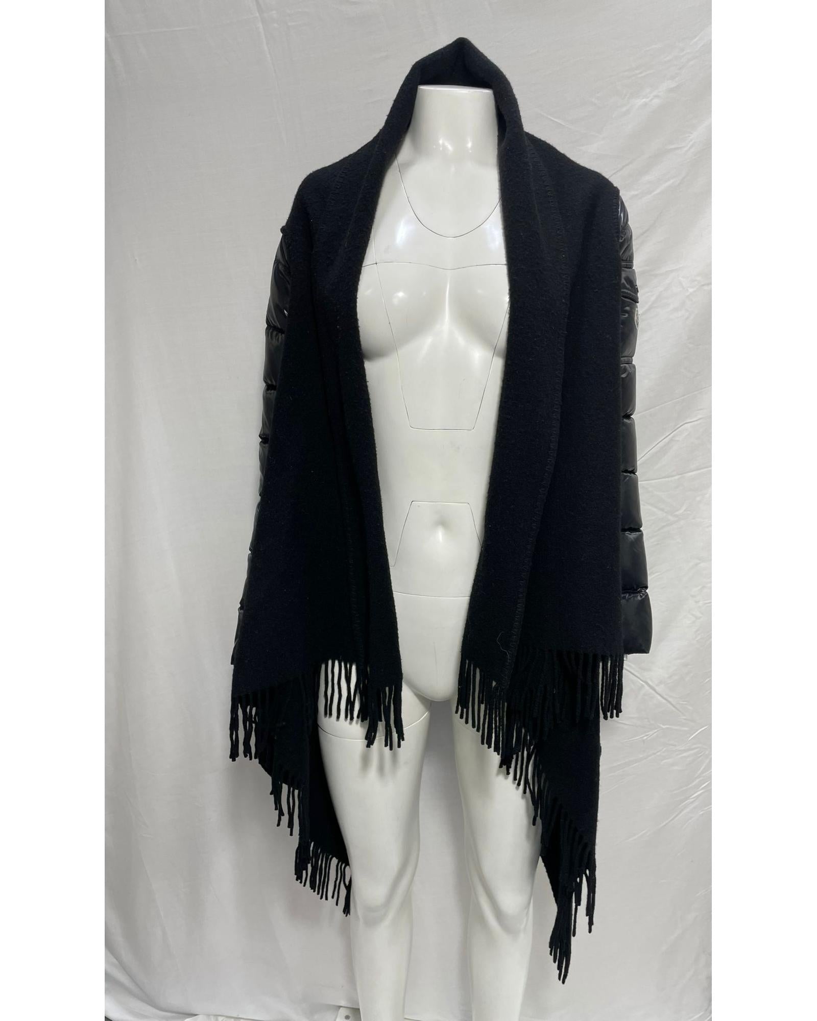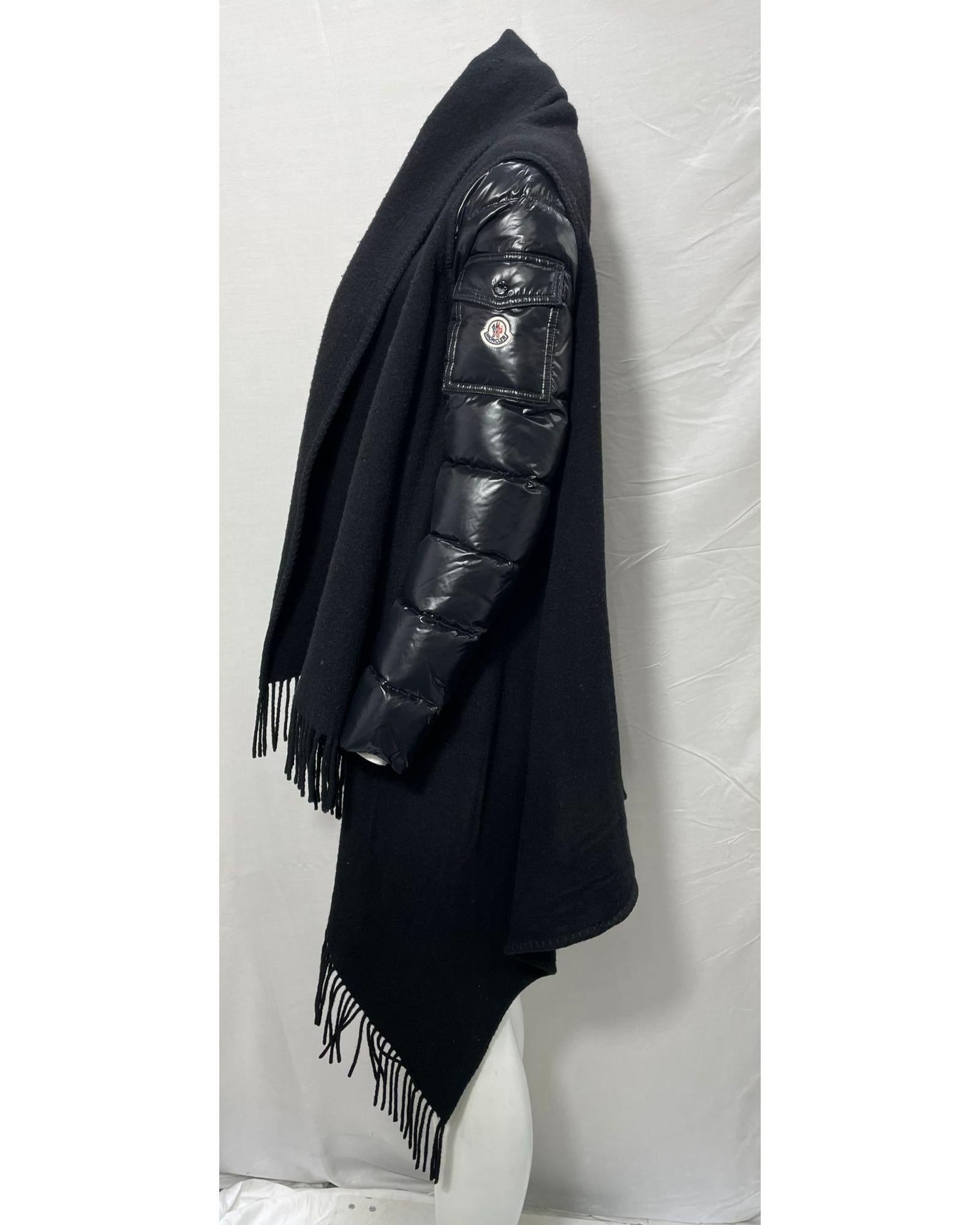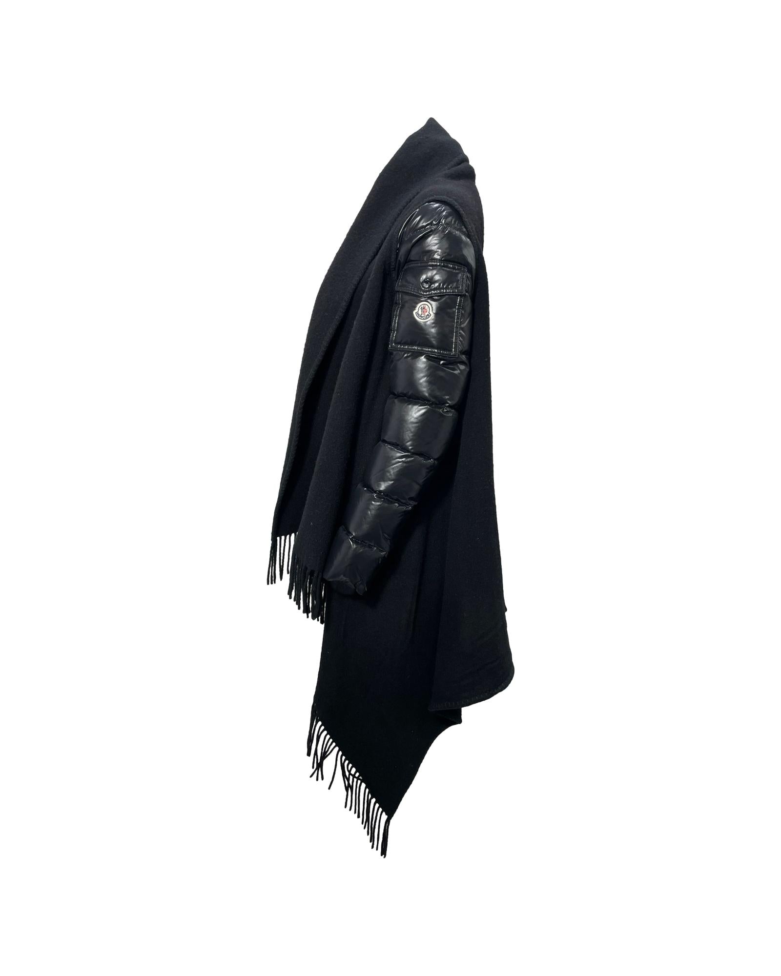 • Moncler Mantella Down Puffer Sleeve Cape Coat In Black Virgin Wool