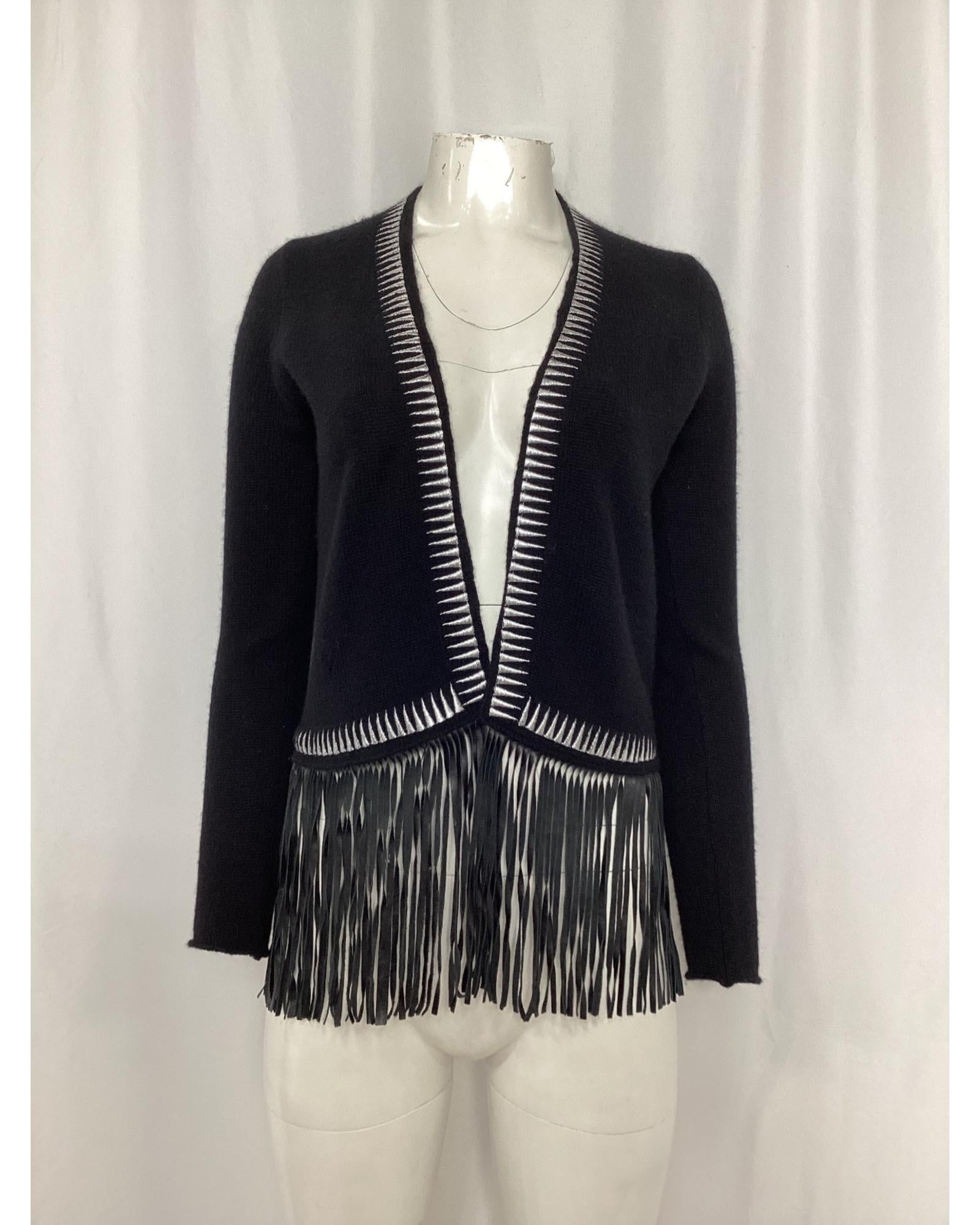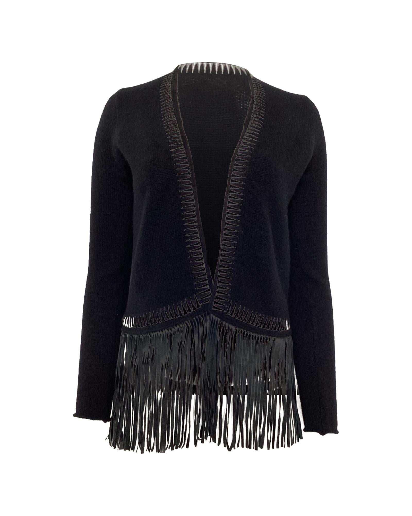 • Zadig & Voltaire Marla Fringed Open Cardigan in Black Cashmere