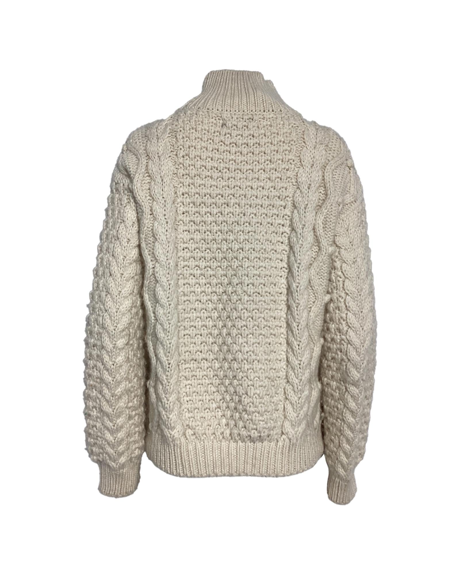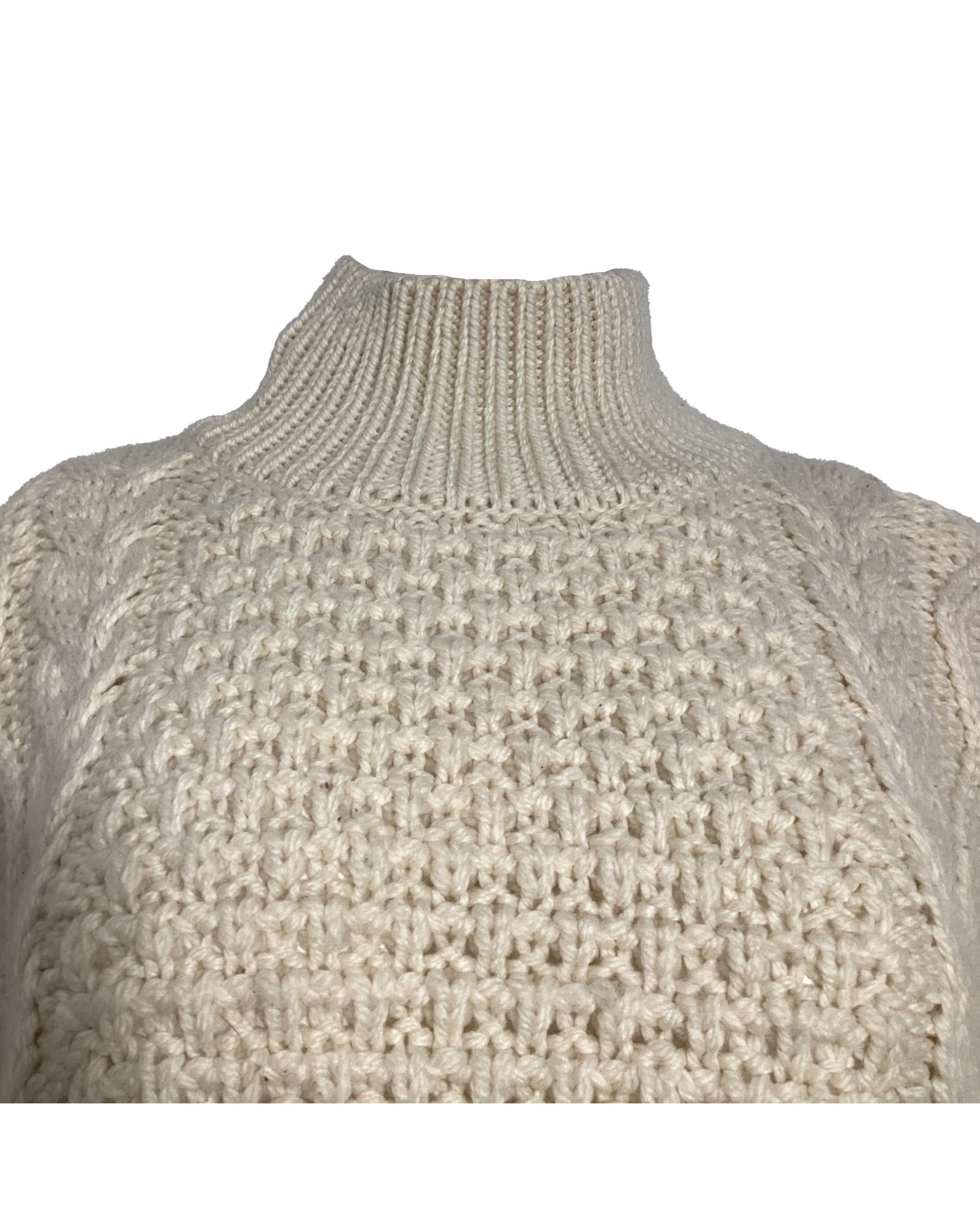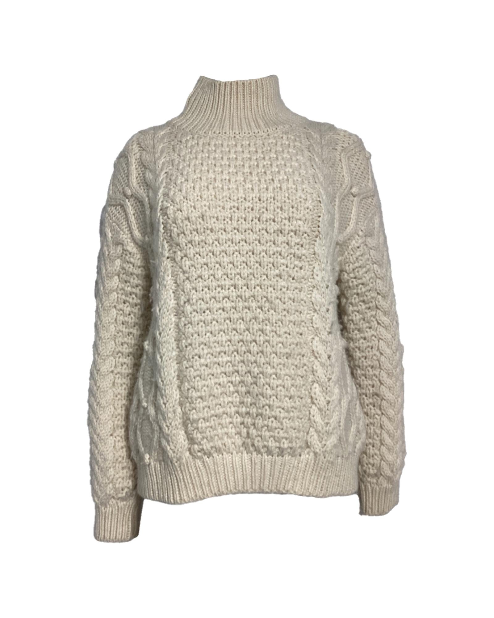• Nili Lotan Hawthorne Cable Knit Turtleneck Sweater in Cream Wool
