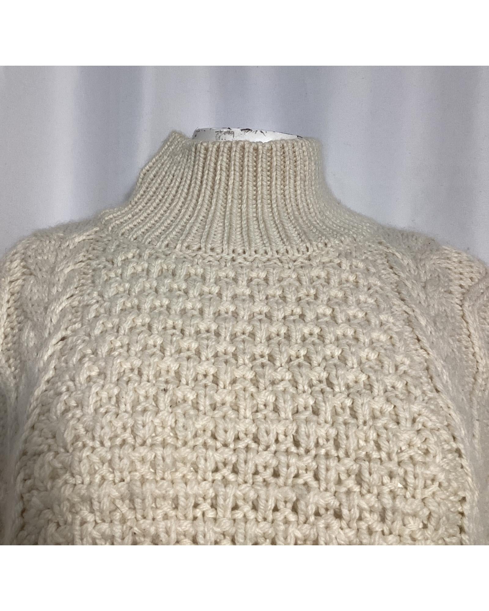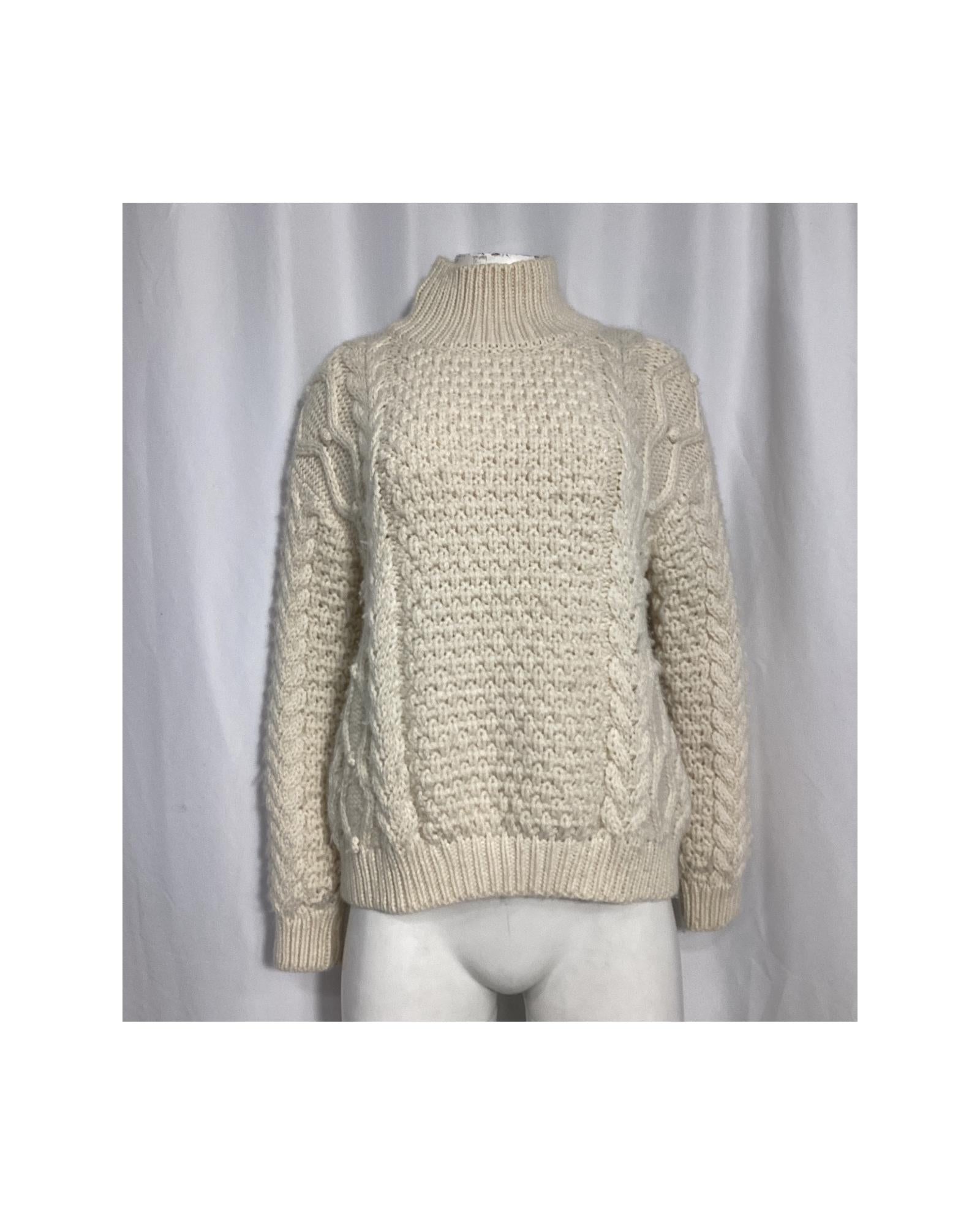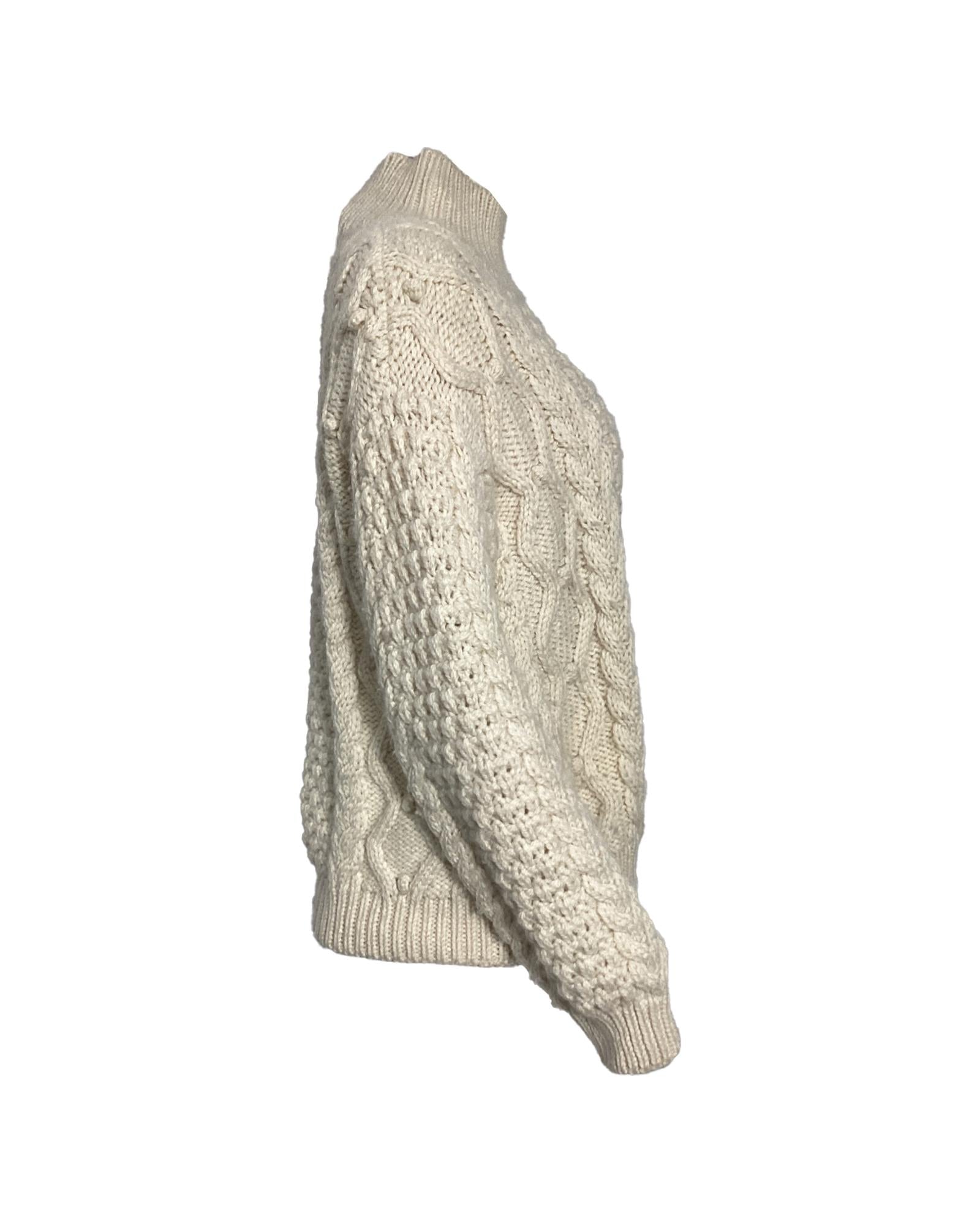 • Nili Lotan Hawthorne Cable Knit Turtleneck Sweater in Cream Wool