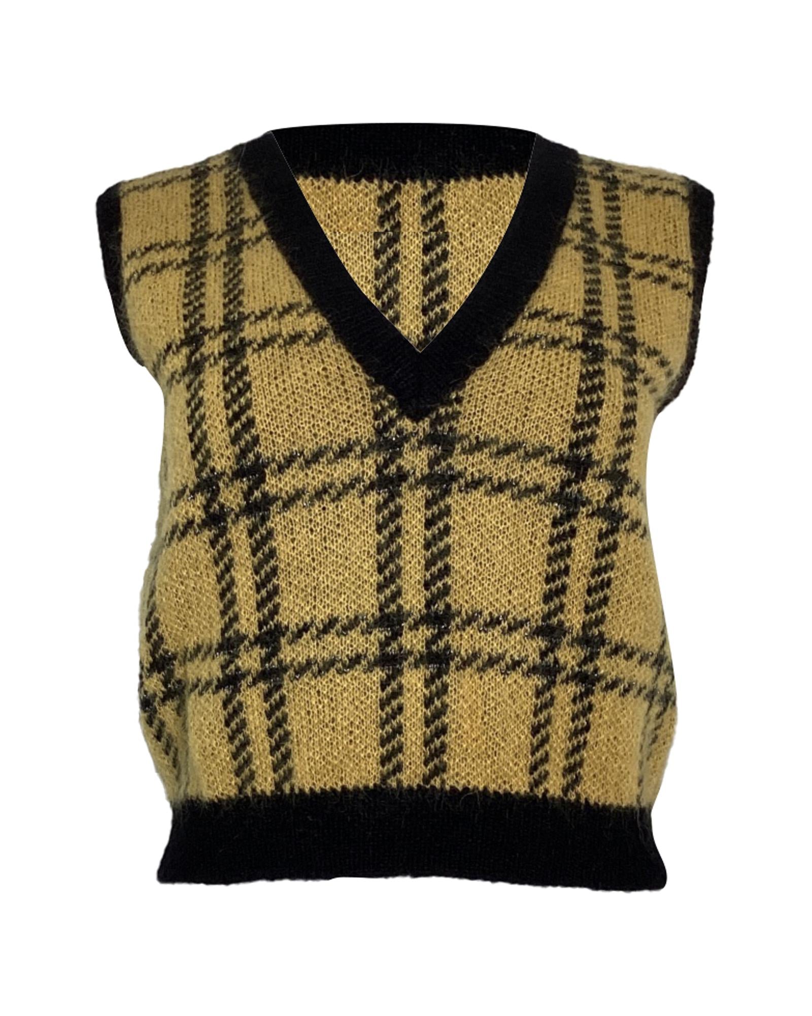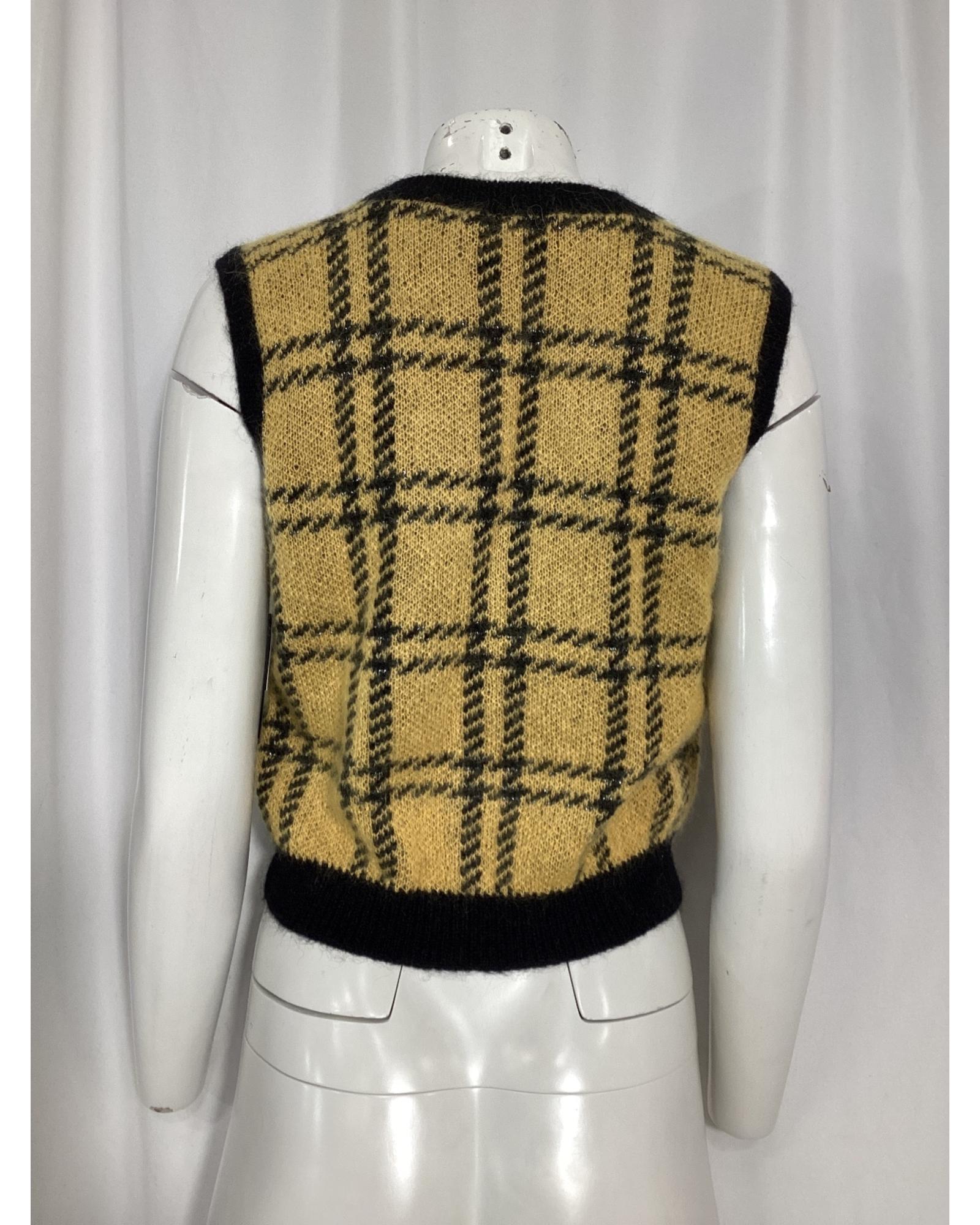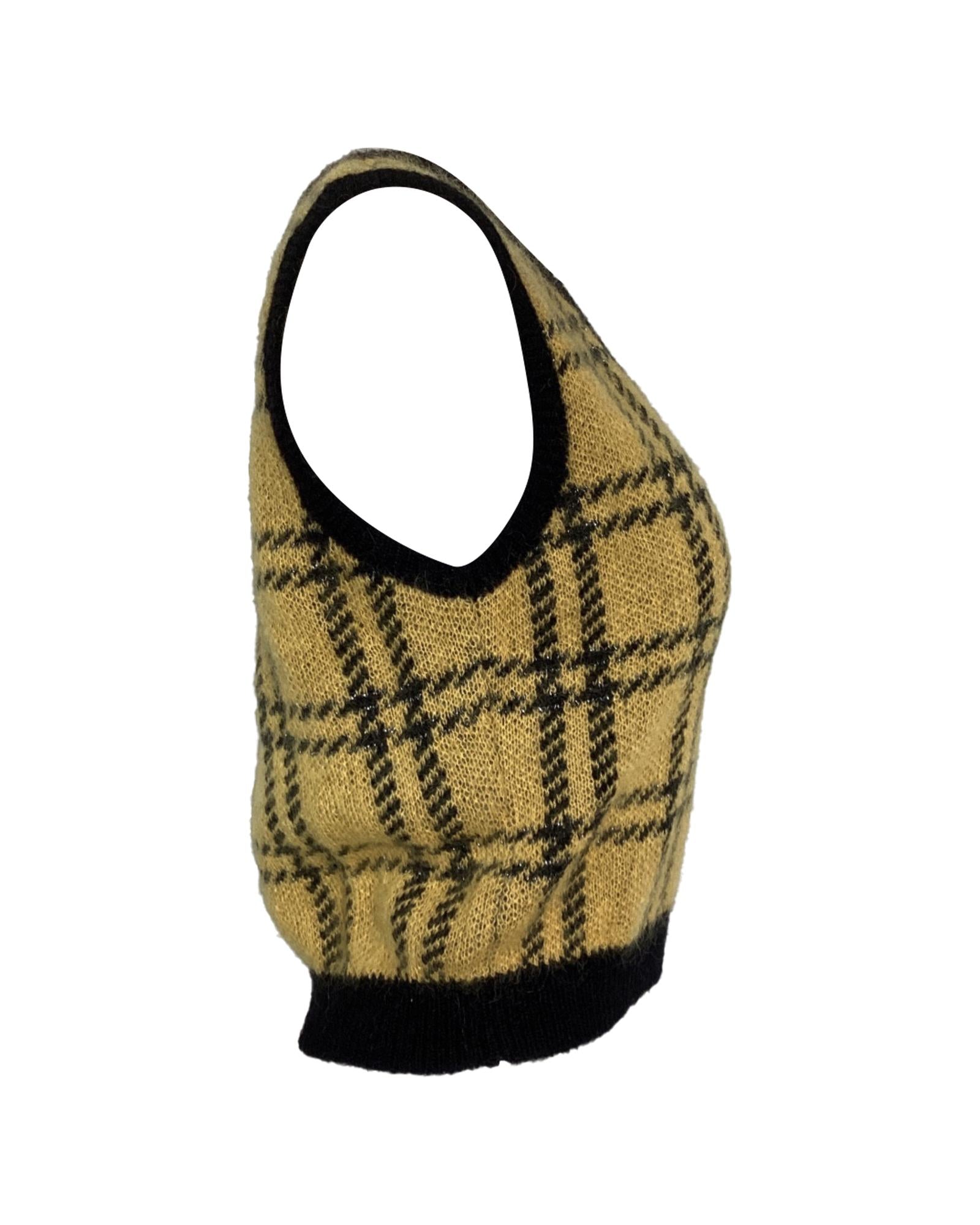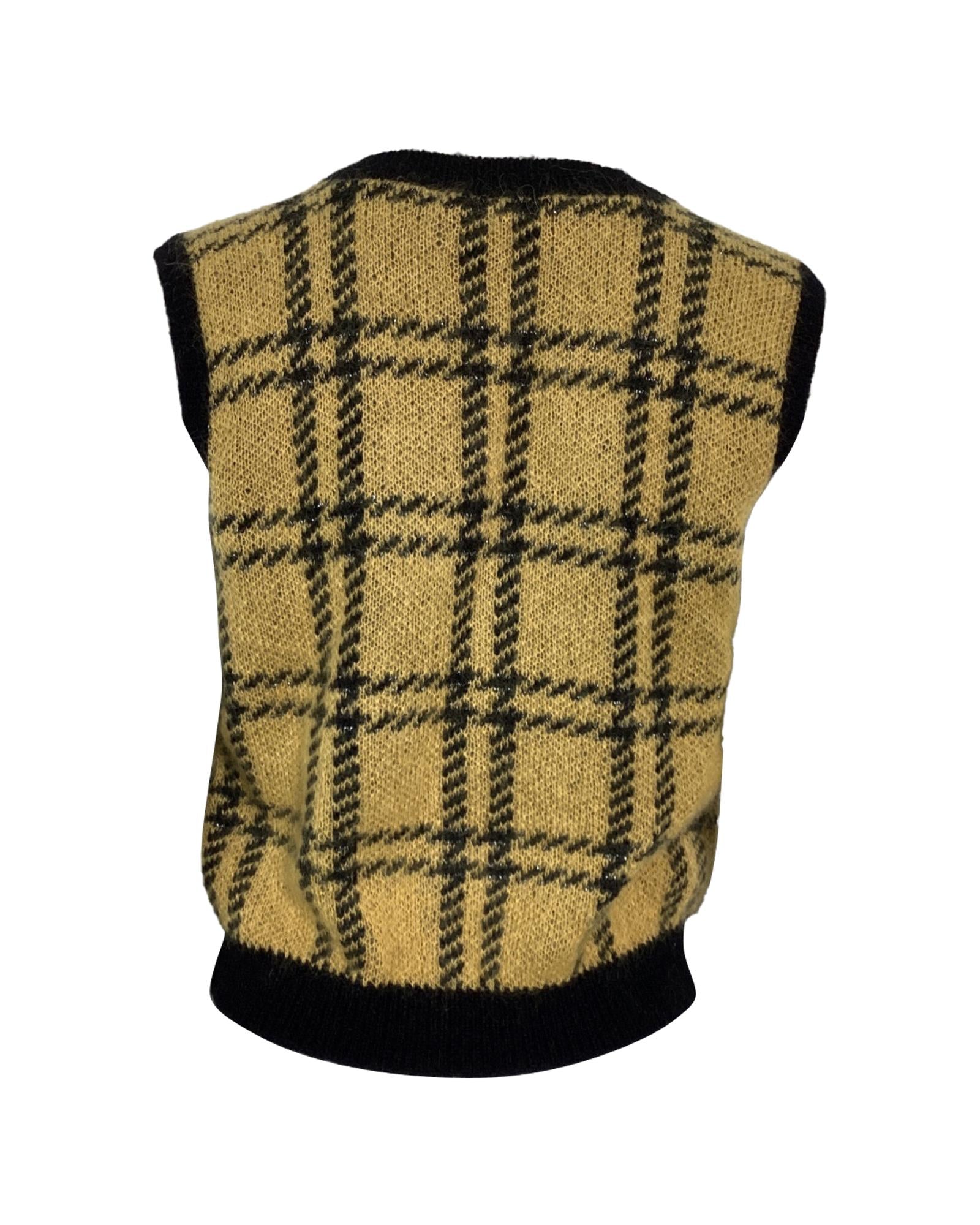 • Alessandra Rich Tartan Knit Waistcoat in yellow mohair