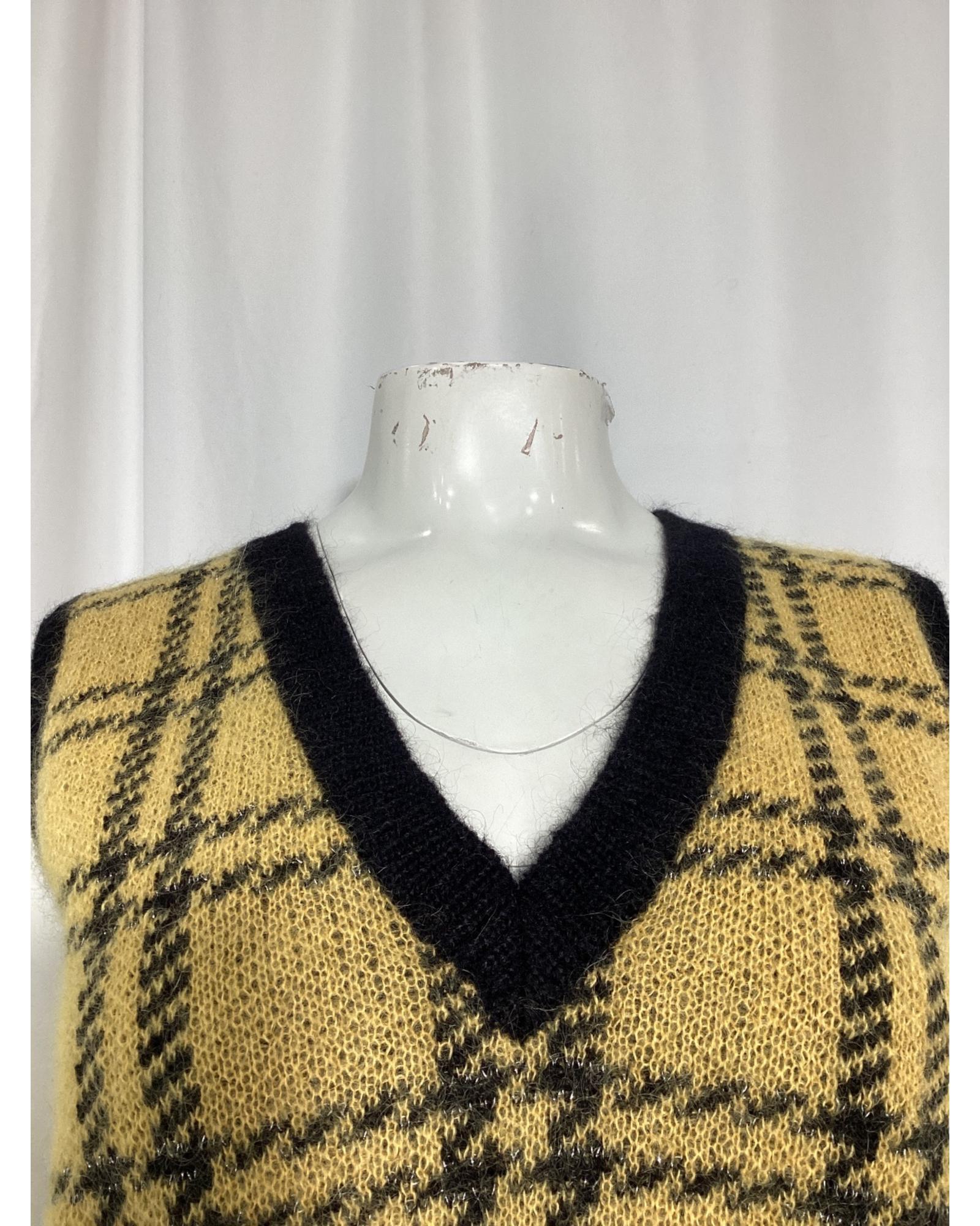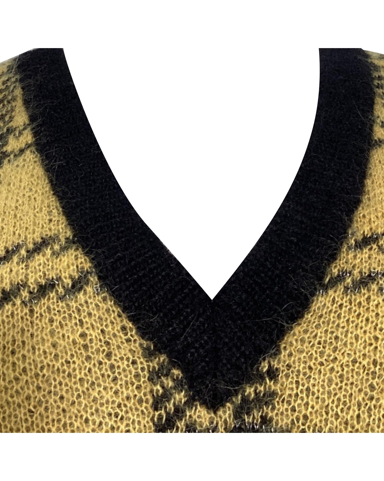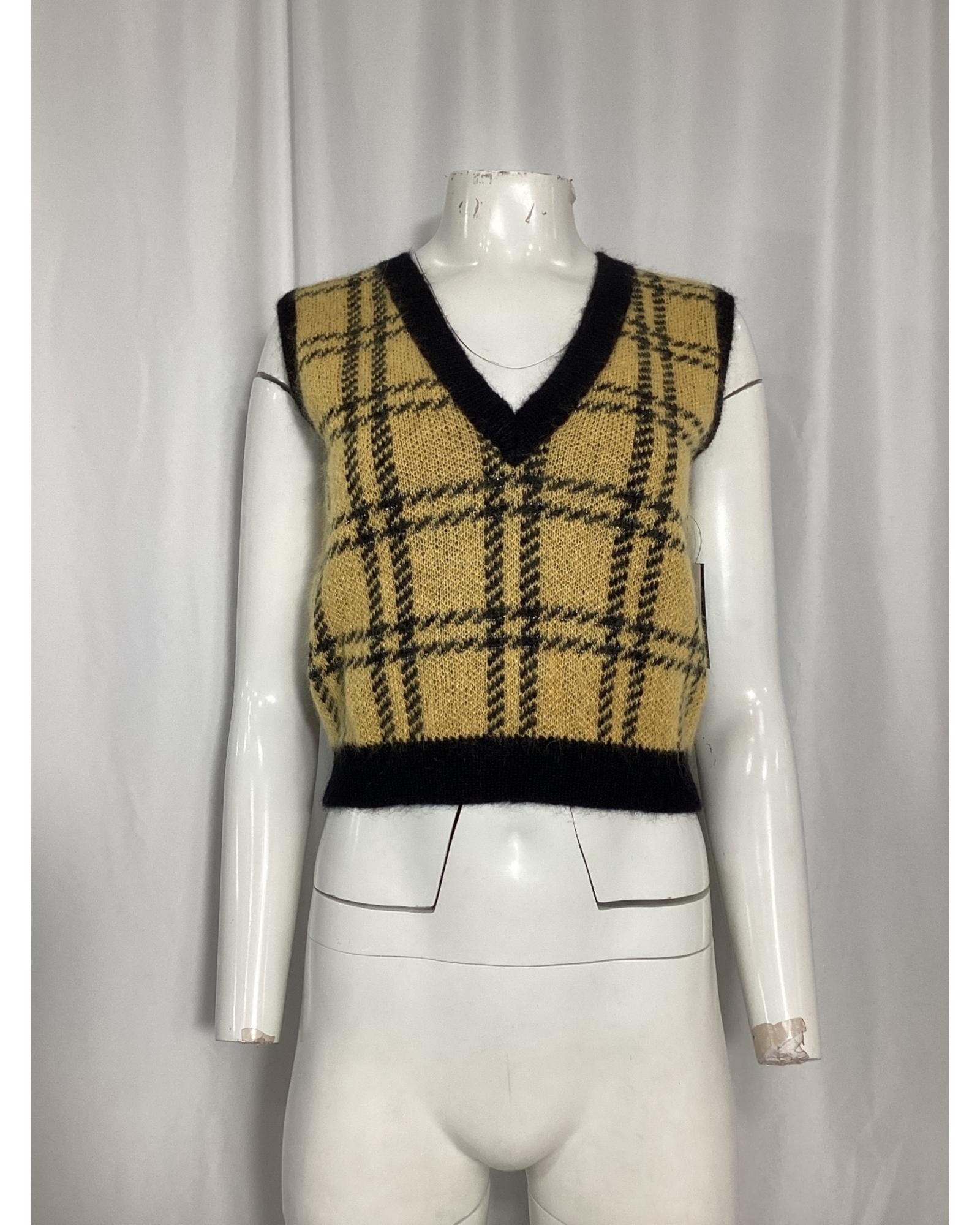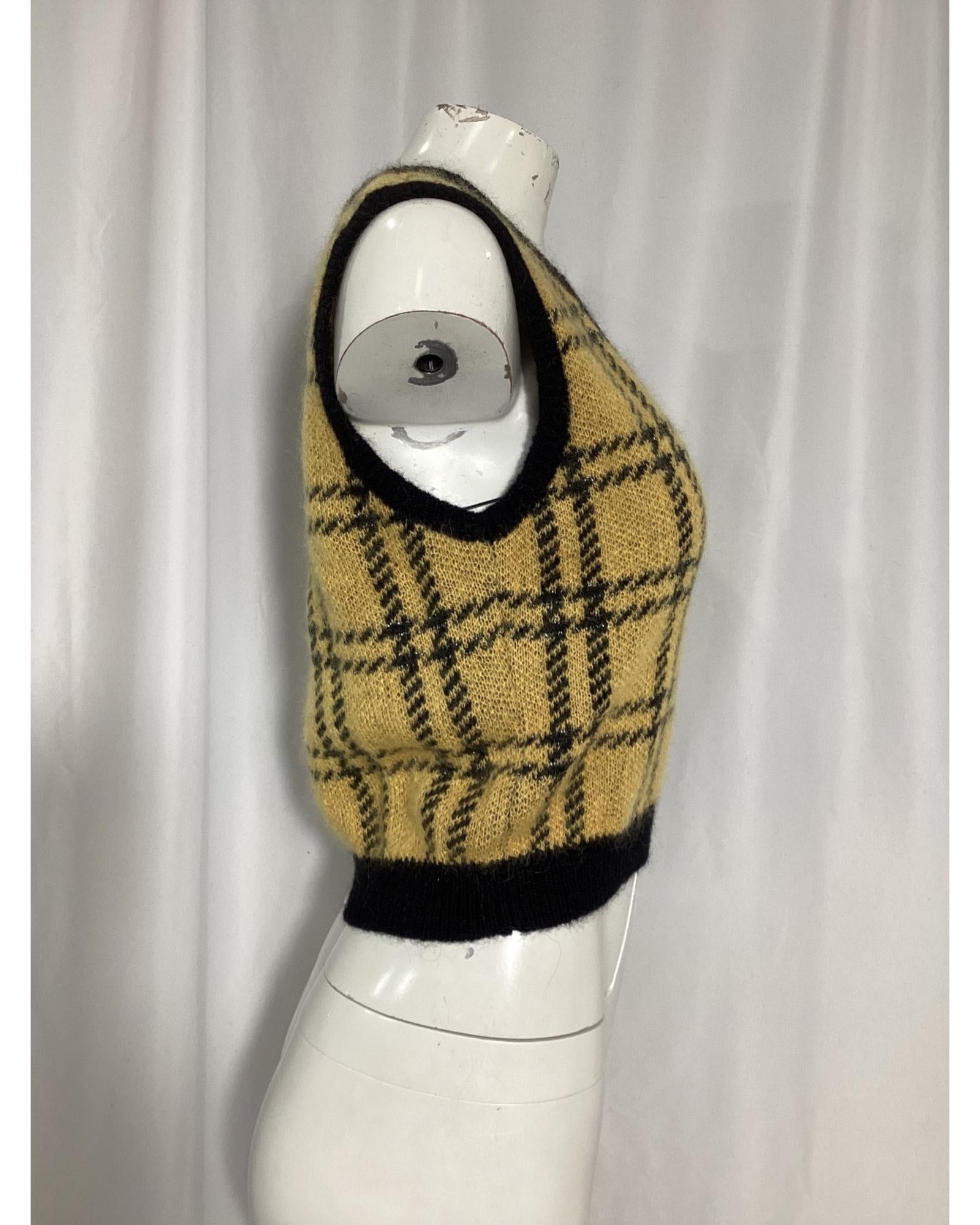 • Alessandra Rich Tartan Knit Waistcoat in yellow mohair