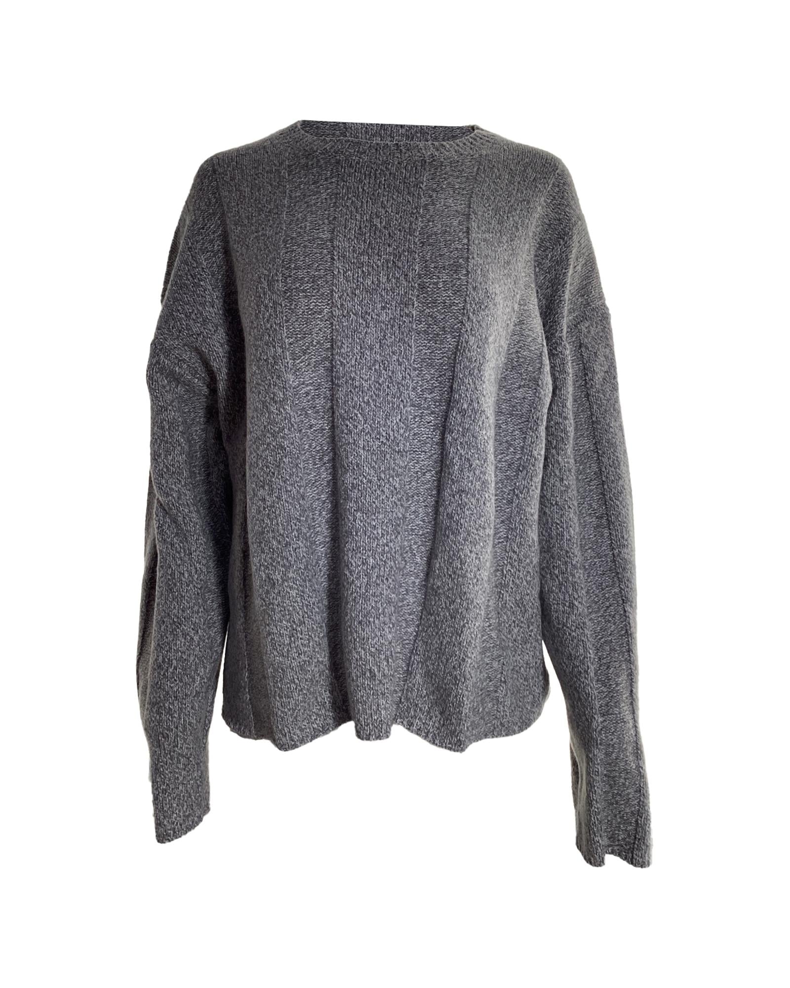 • Theory Knitted Crewneck Sweater in Grey Wool