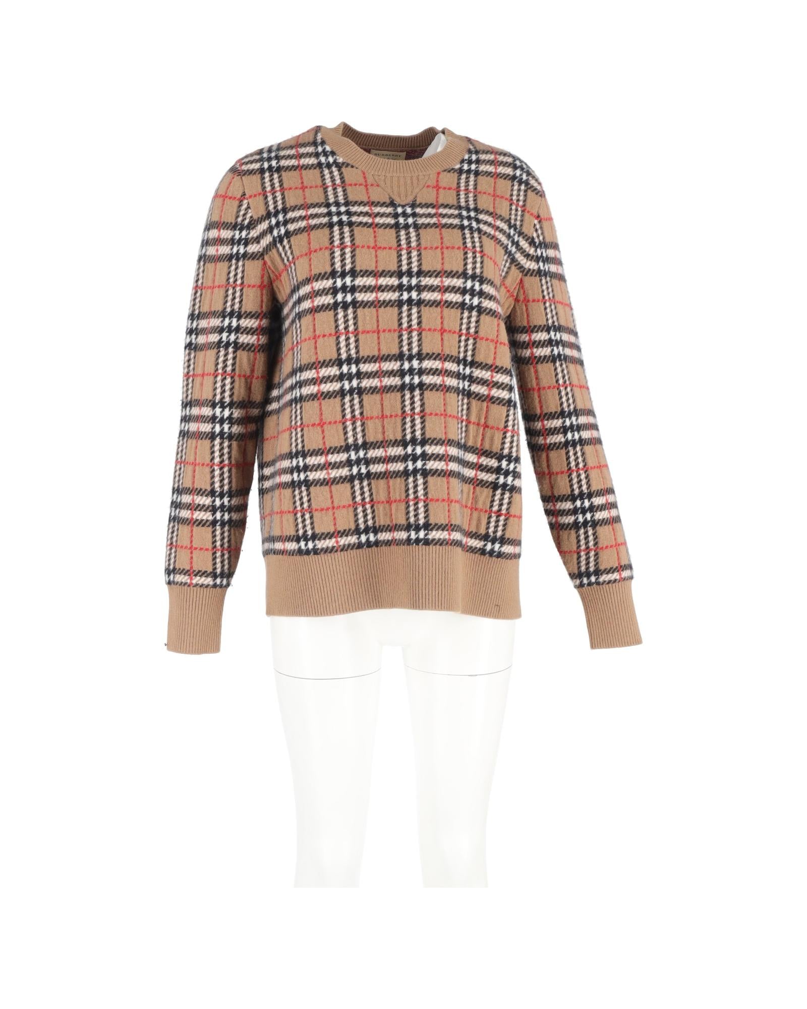 - Burberry Knitted Checkered Sweater in Brown Wool