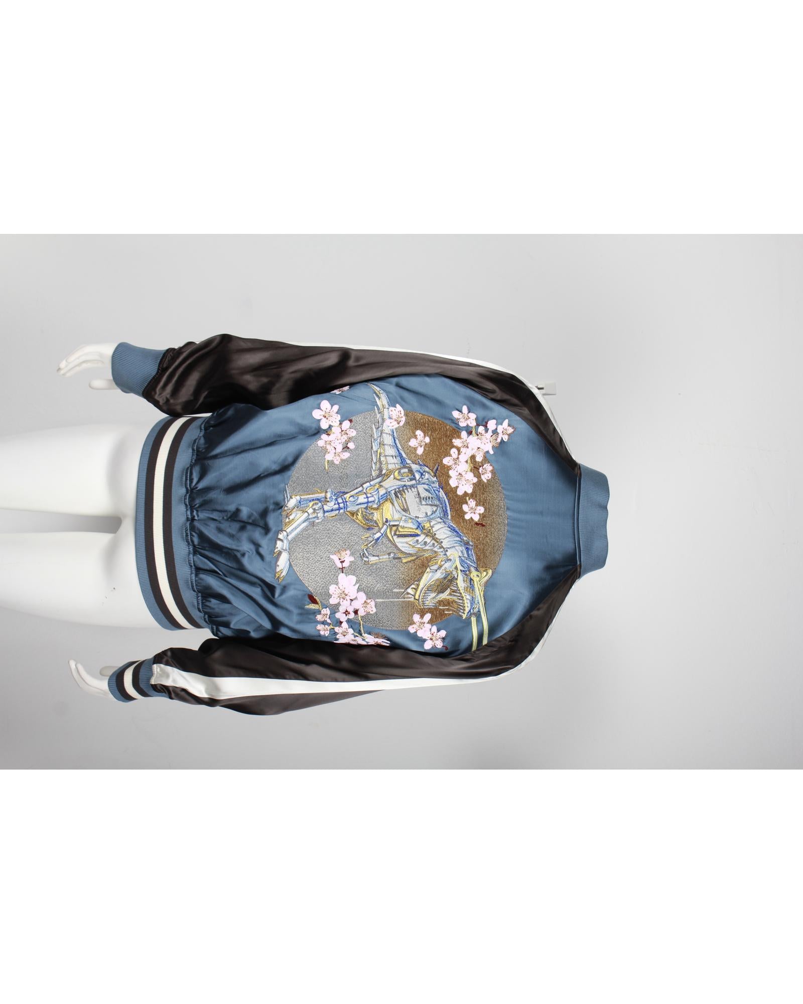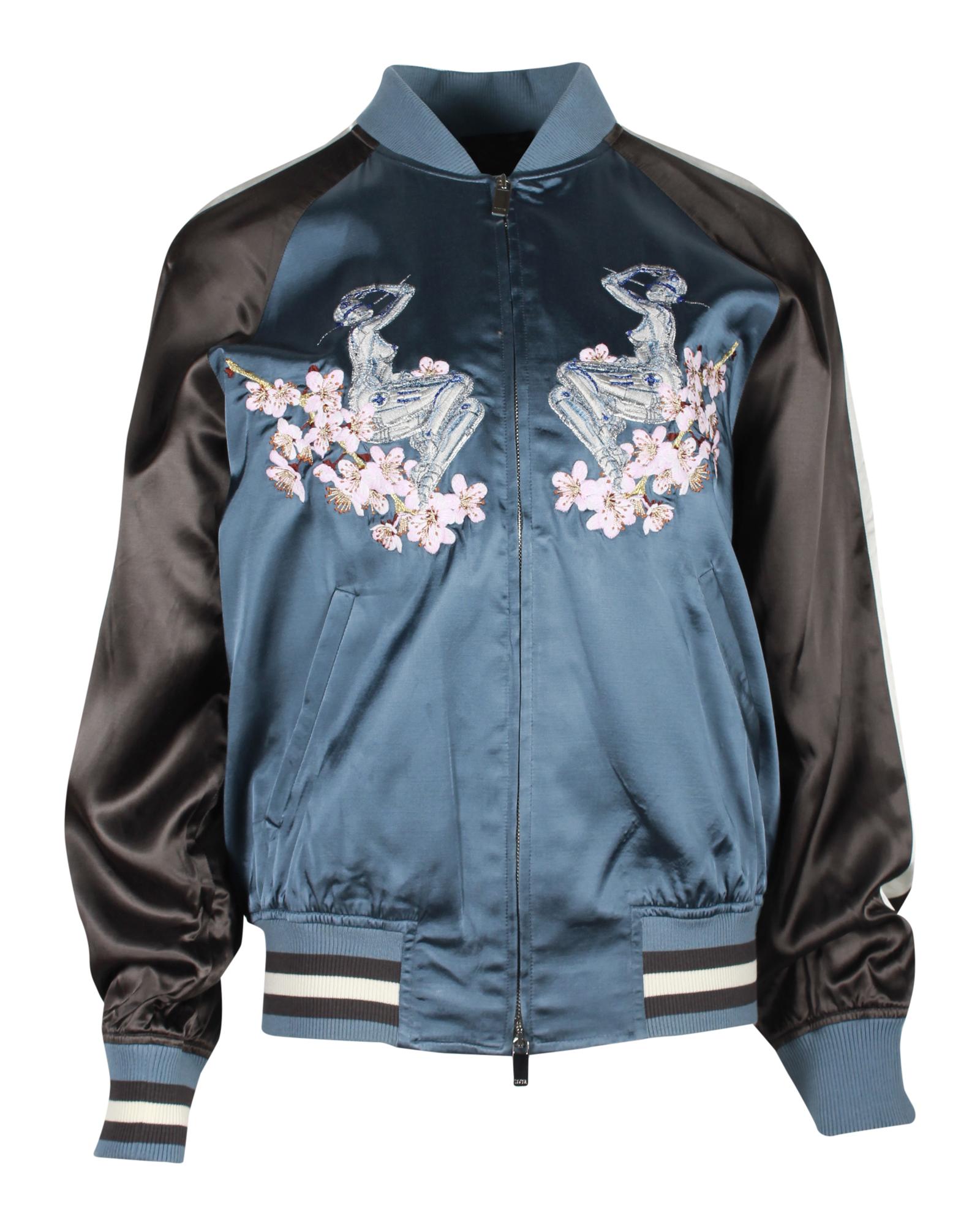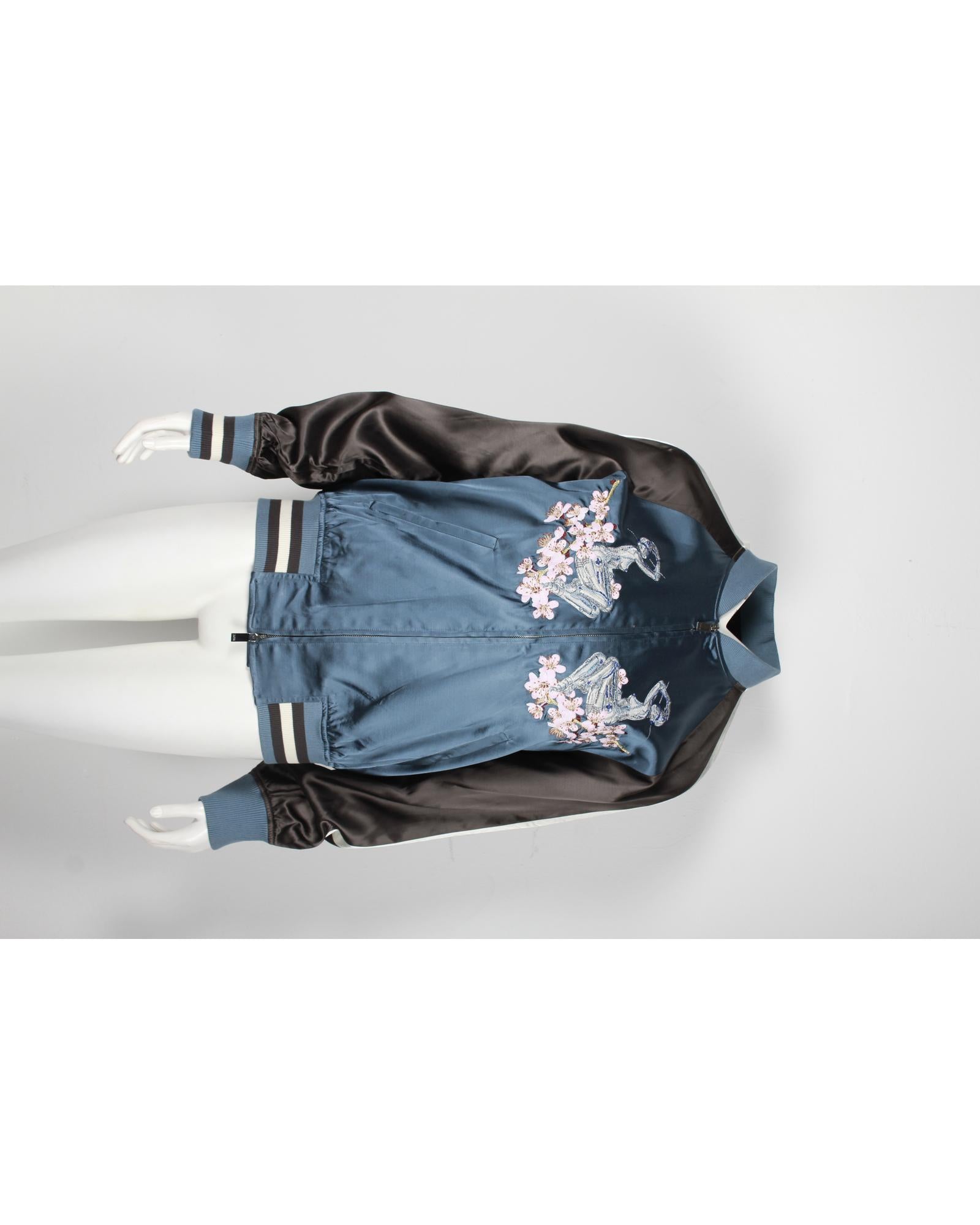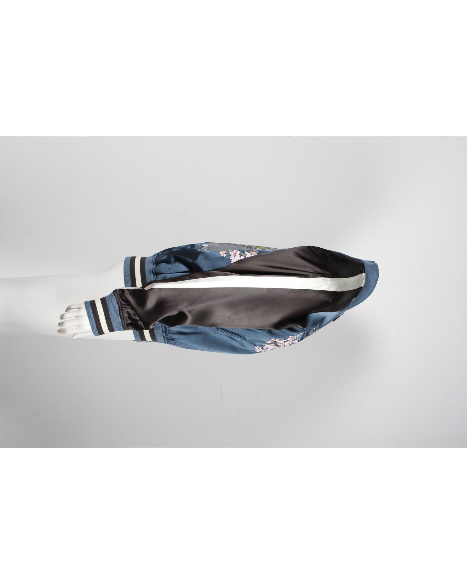 • Dior x Sorayama Embroidered Souvenir Bomber Jacket in Blue Satin