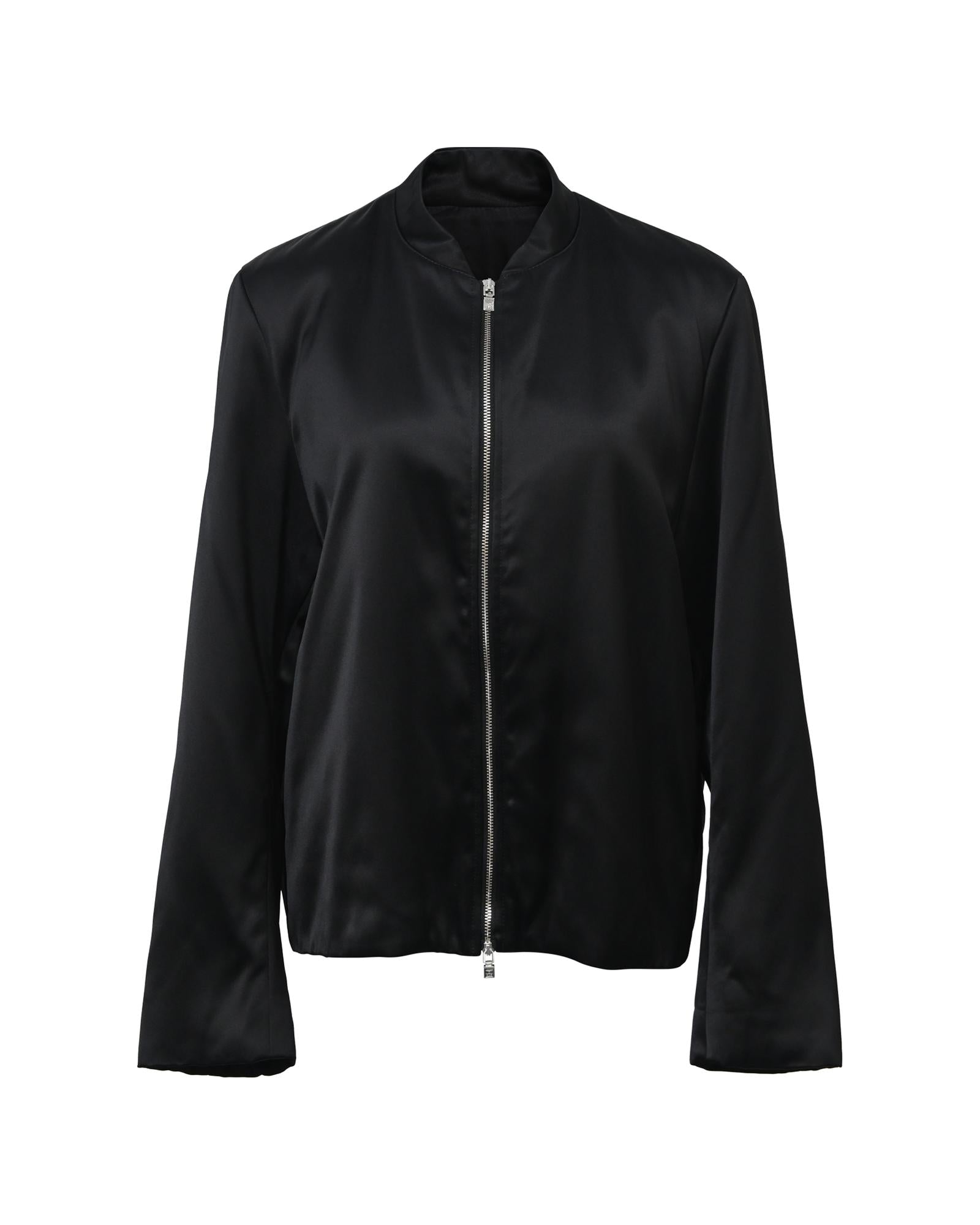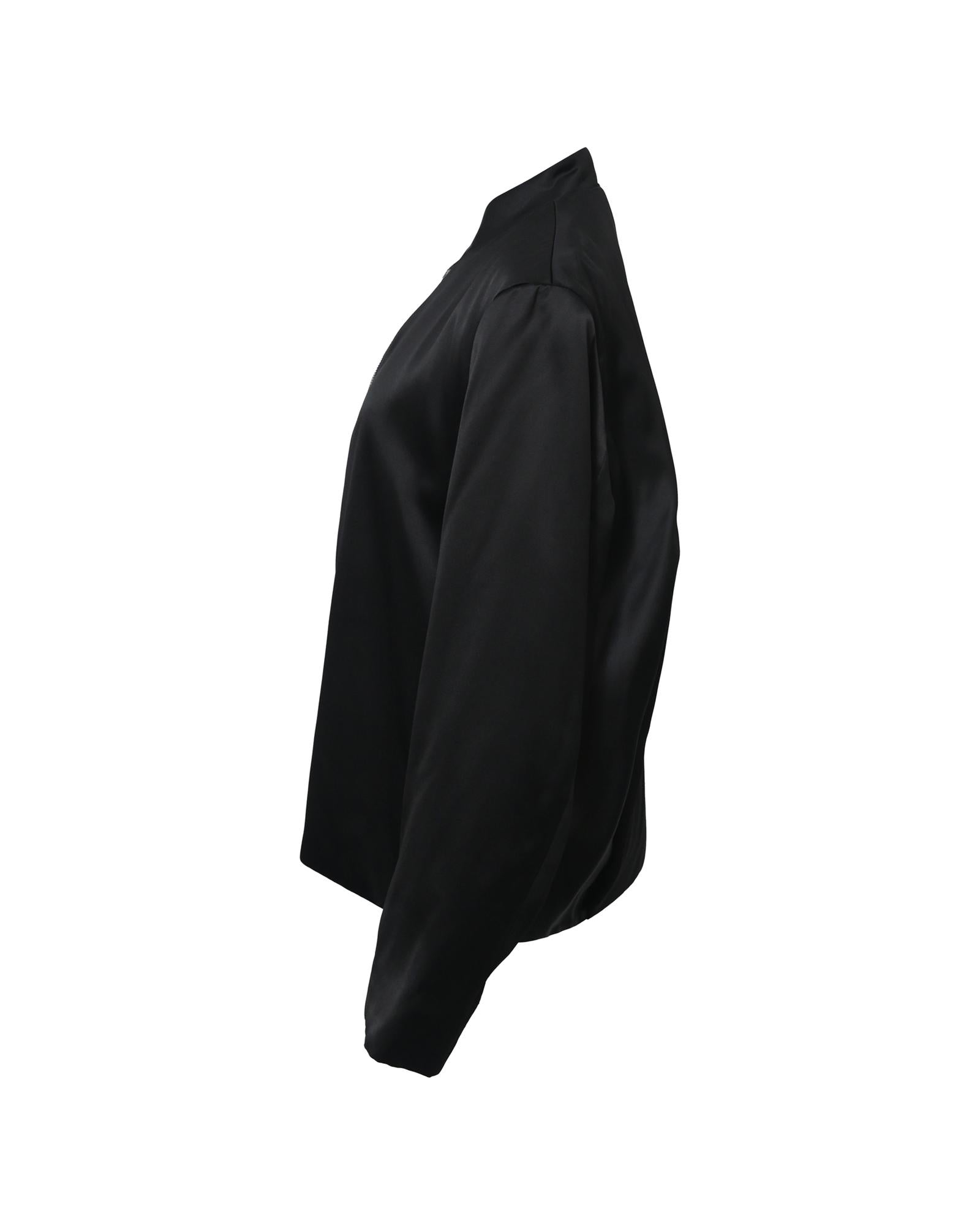 - Toteme Loose Sleeve Zippered Bomber Jacket in Black Viscose
