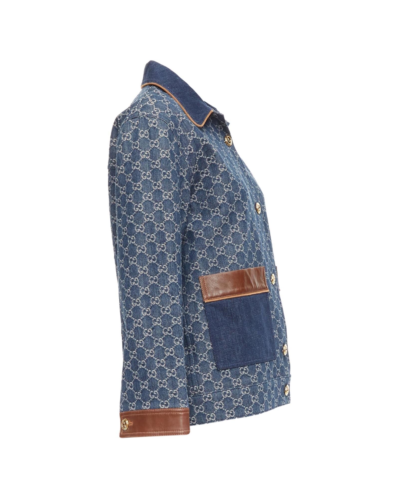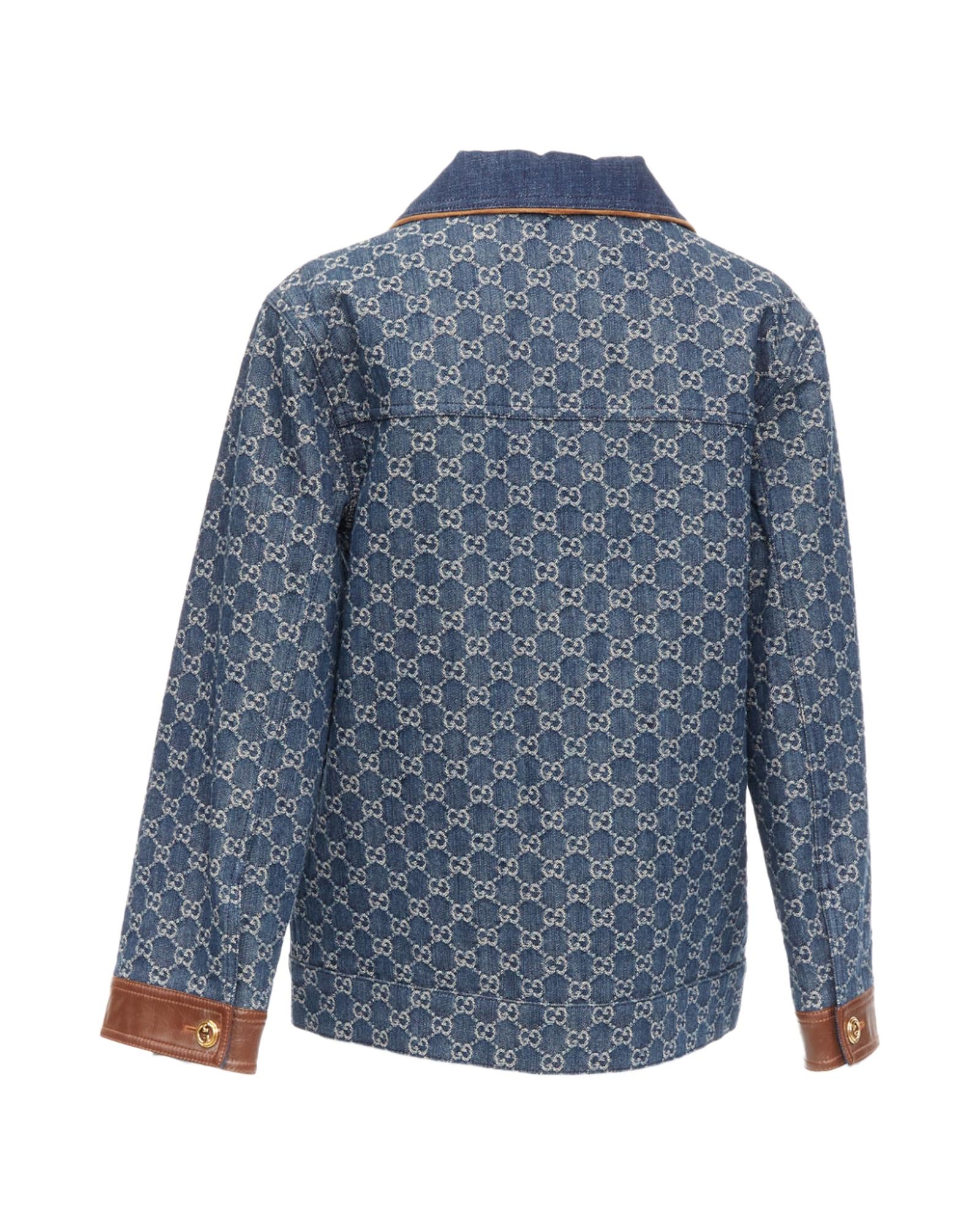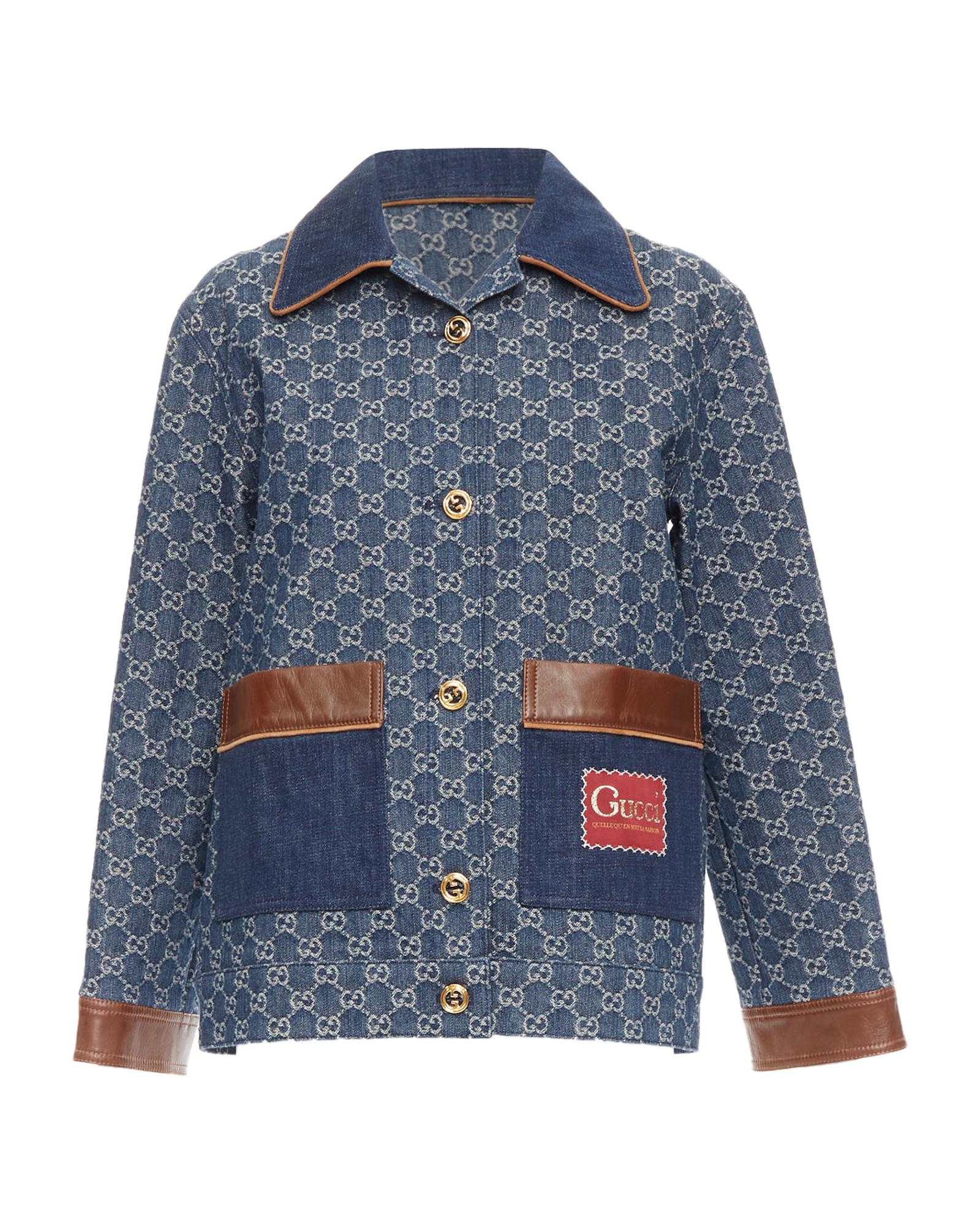 Pre-owned Patterned Denim Jacket with Button Closure and Accented Trim