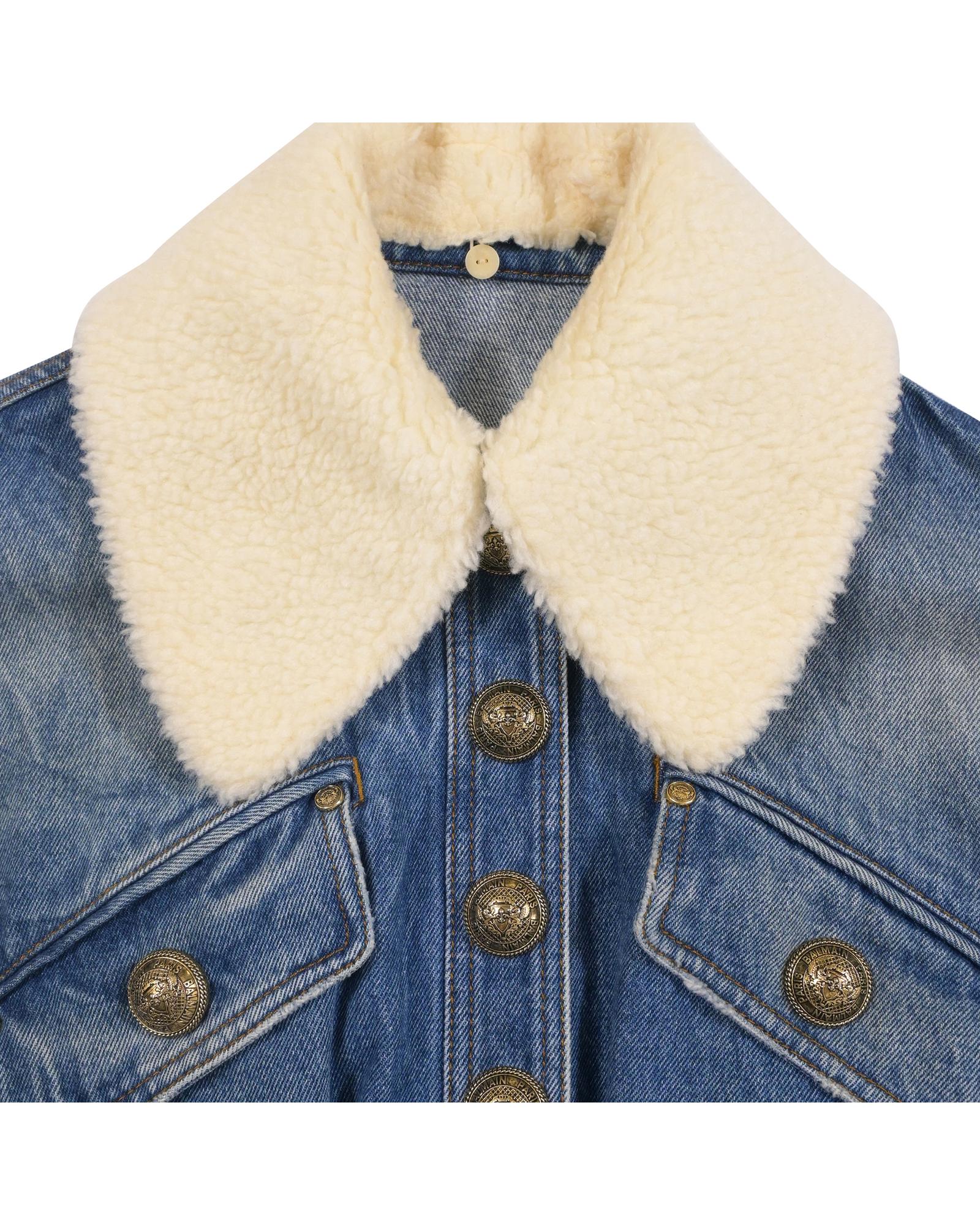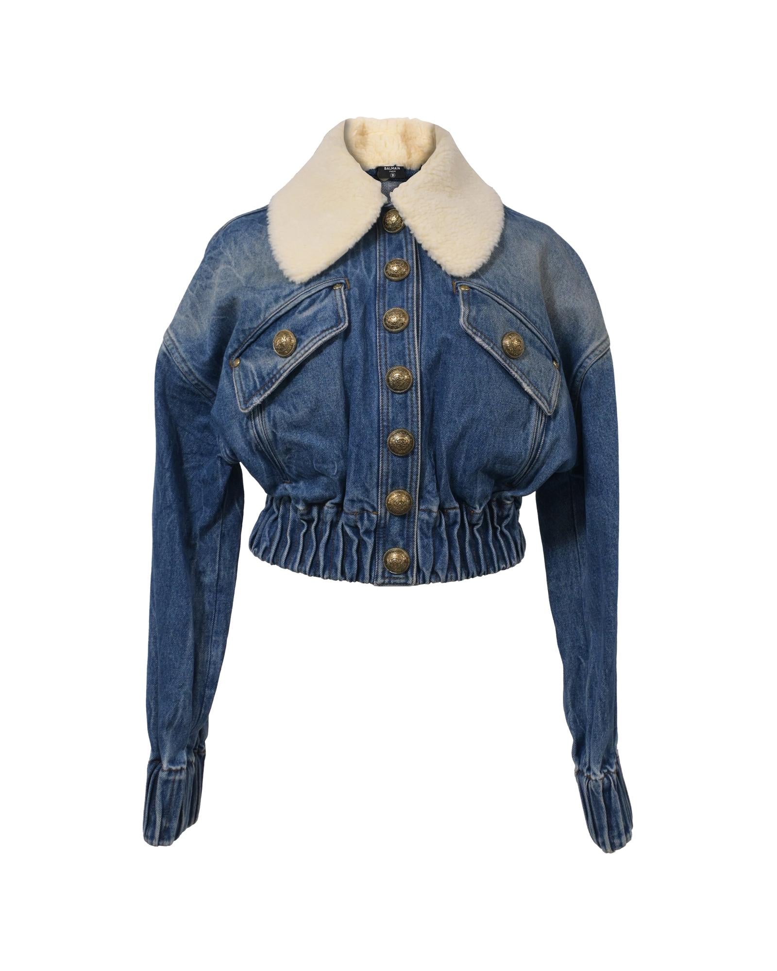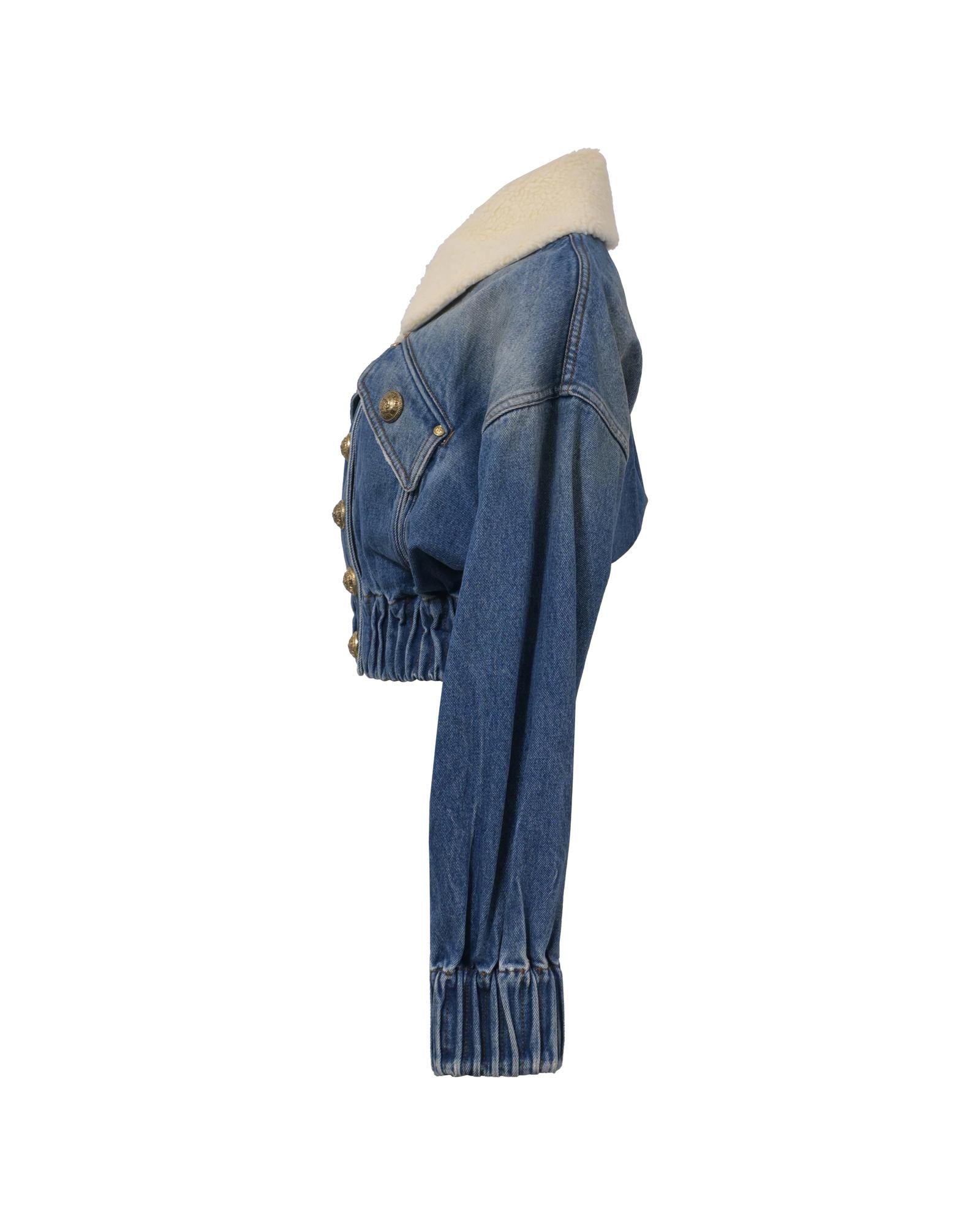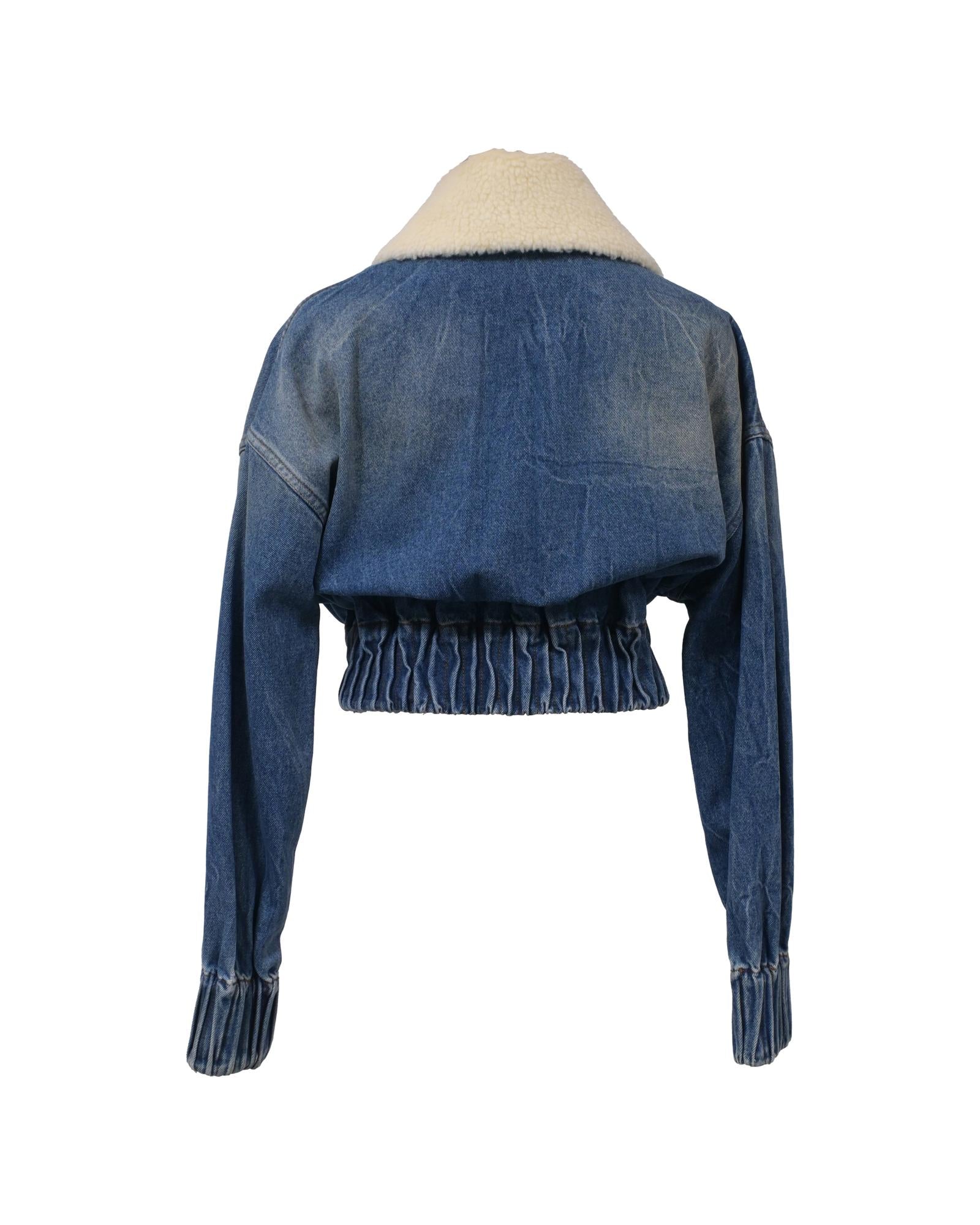 Pre-owned Cropped Denim Jacket with Sherpa Collar